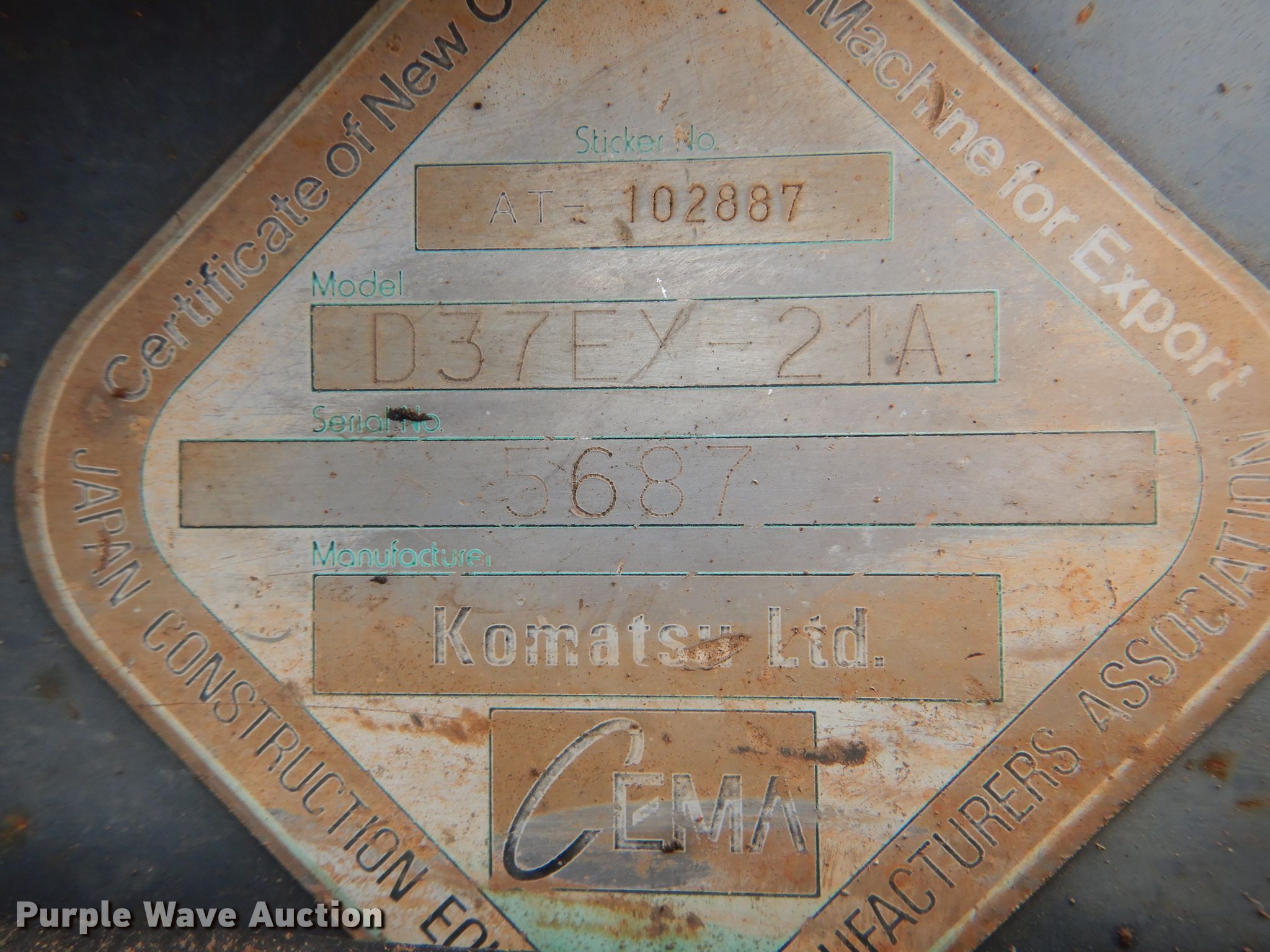Purple Wave is selling a used Crawler Dozer in Oklahoma. This item is a 2005 Komatsu D37EX dozer with the following: 4,219 hours on meter, Serial: 5687, Unit #: 30-17