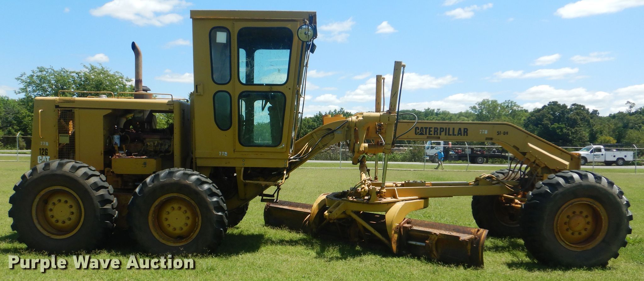 Purple Wave is selling a used Motor Grader in Oklahoma. This item is a 1980 Caterpillar 12G motor grader with the following: 1,307 hours on meter, Serial: 61M7336, Unit #: 51-04