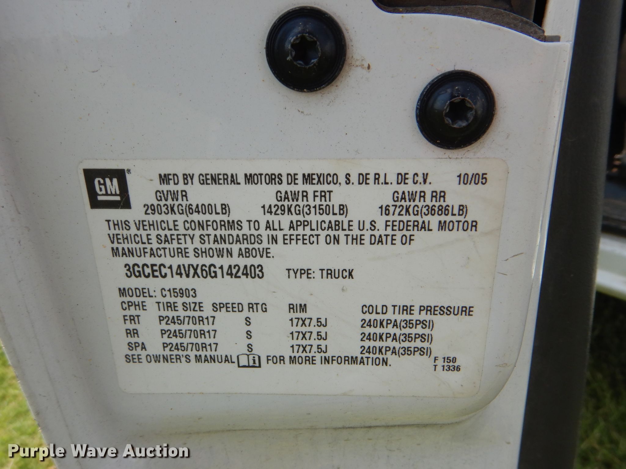 2006 Chevrolet Silverado 1500 pickup truck. 208,193 miles on odometer, Unit #: 10-91. Engine Displacement: 4.8L V8 OHV 16V, Cylinders: 8, Fuel type: Gas. Transmission Automatic. Interior AC, Heat, Cruise control. Tires Size: LT245/70R17. Notes Dash warning indicator: ABS. Oklahoma title. Title distribution may be delayed up to 14 days from verification of funds. 3GCEC14VX6G142403. Manhattan Road & Bridge - Open inspection Sept. 2. 5429 E. Hancock St. Muskogee, OK 74403