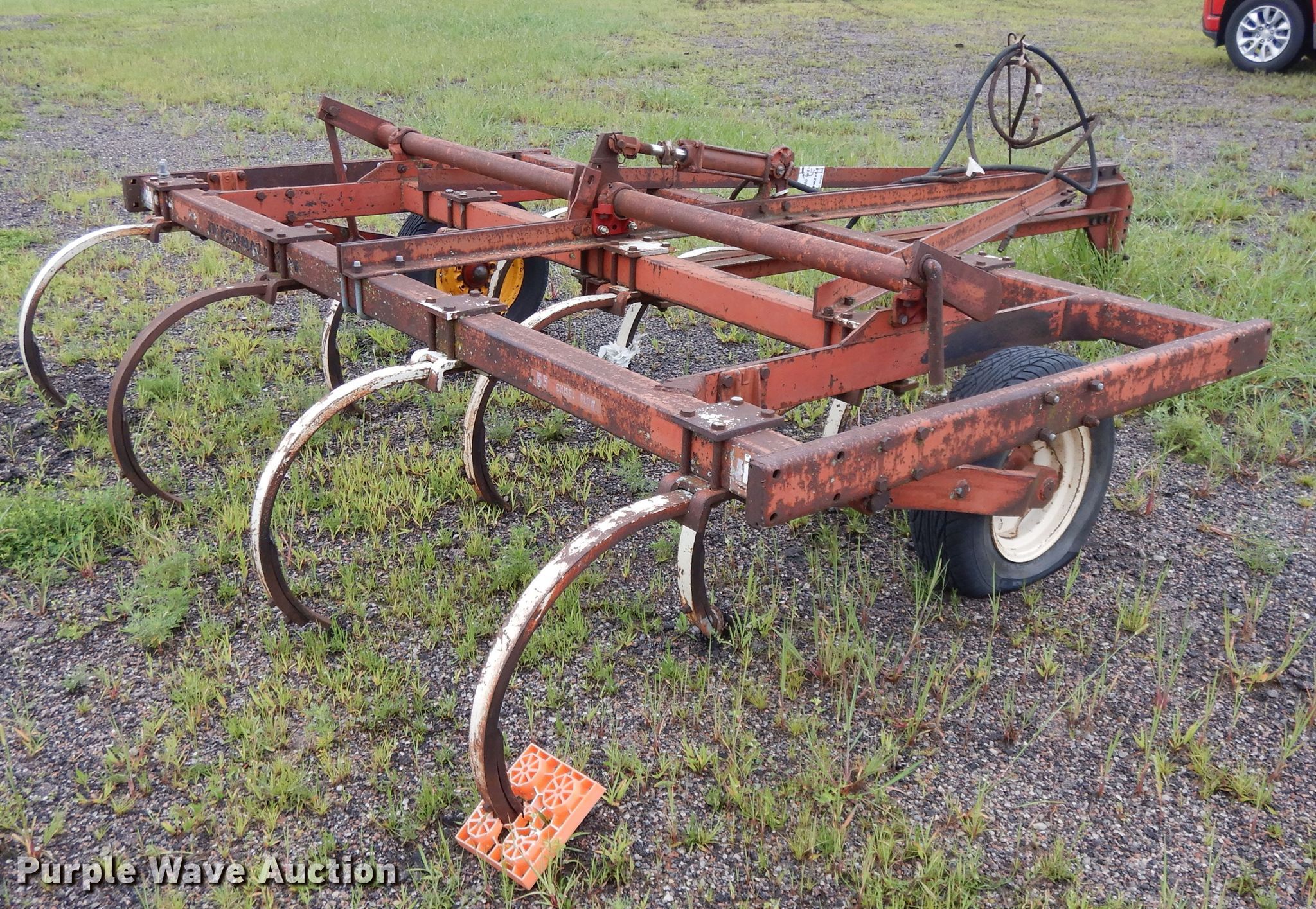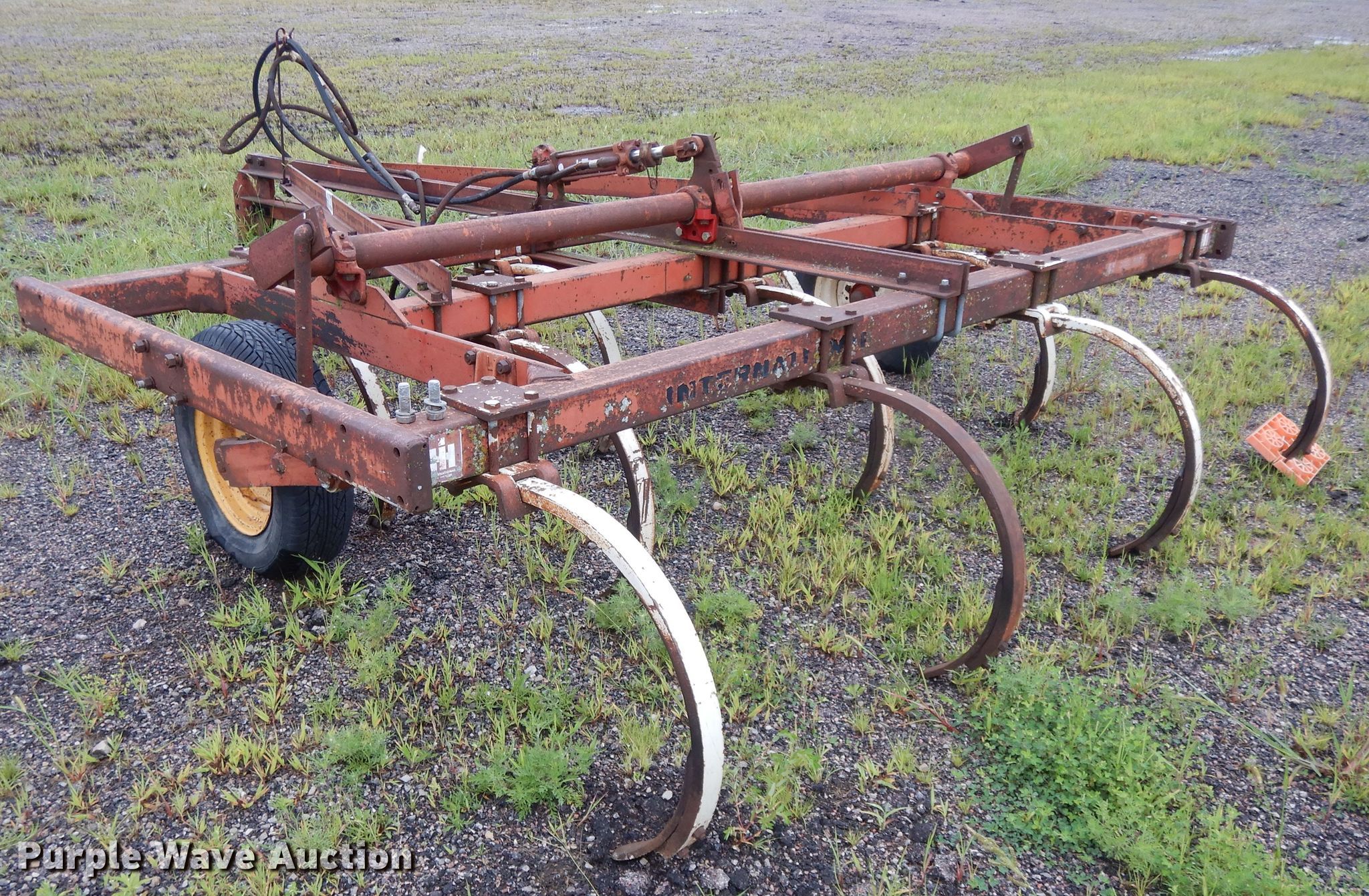 Purple Wave is selling a used Chisel in Kansas. This item is a International 55 chisel with the following: 10'5"W, (10) 2"W sweeps, Hydraulic lift, 205/70R14 tires