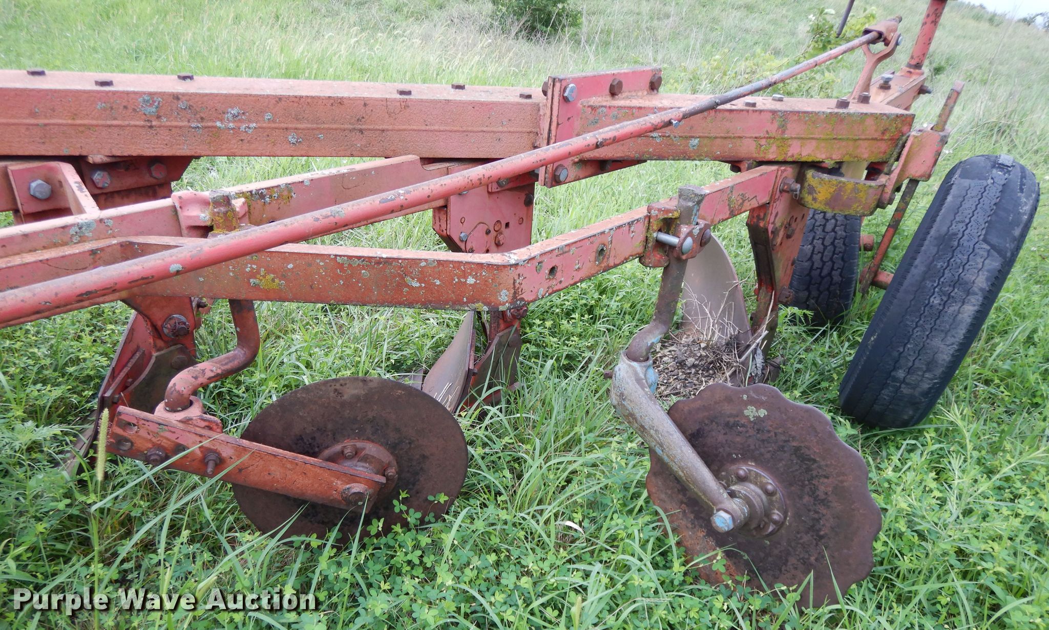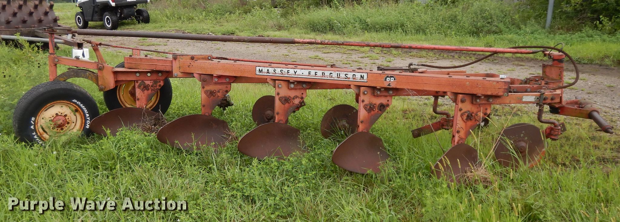 Purple Wave is selling a used Plow in Kansas. This item is a Massey-Ferguson 88 five bottom plow with the following: 36"W, 235/75R15 tires