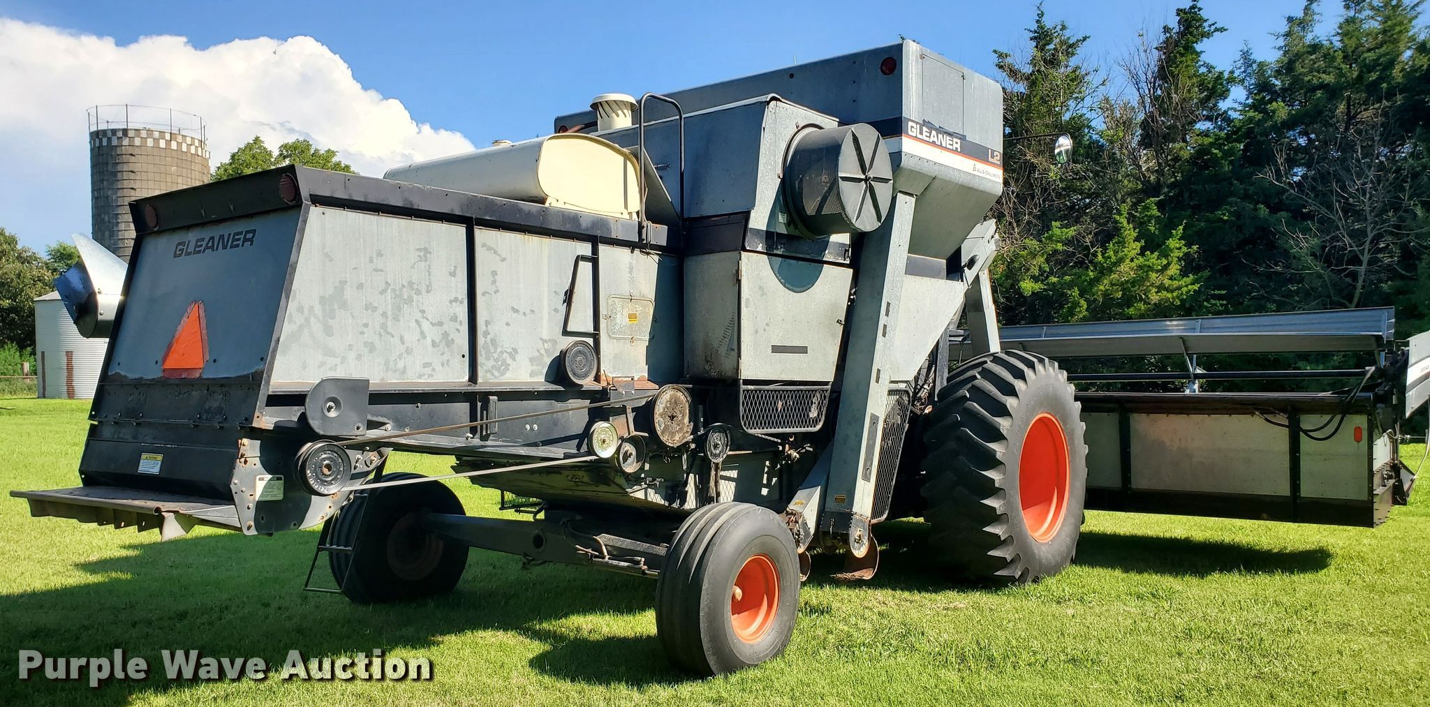 Purple Wave is selling a used Combine in Kansas. This item is a 1981 Gleaner L2 Corn Plus combine with the following: 2,409 engine hours on meter, 159 separator hours on meter, Allis Chalmers six cylinder diesel engine, Hydrostatic transmission, 4F-4R gears, Feederhouse, Variable speed, AC and heat, Straw chopper, 13'L unloading auger, Allis Chalmers rigid head, 24'W, Bat reel, Hydraulic reel height control, Milo guards, Steel skid plates, Single driveline, Serial LM2461872G8585, 23.1-24 front tires, 14L-16.1 rear tires, Serial L-K24231H-GHE331