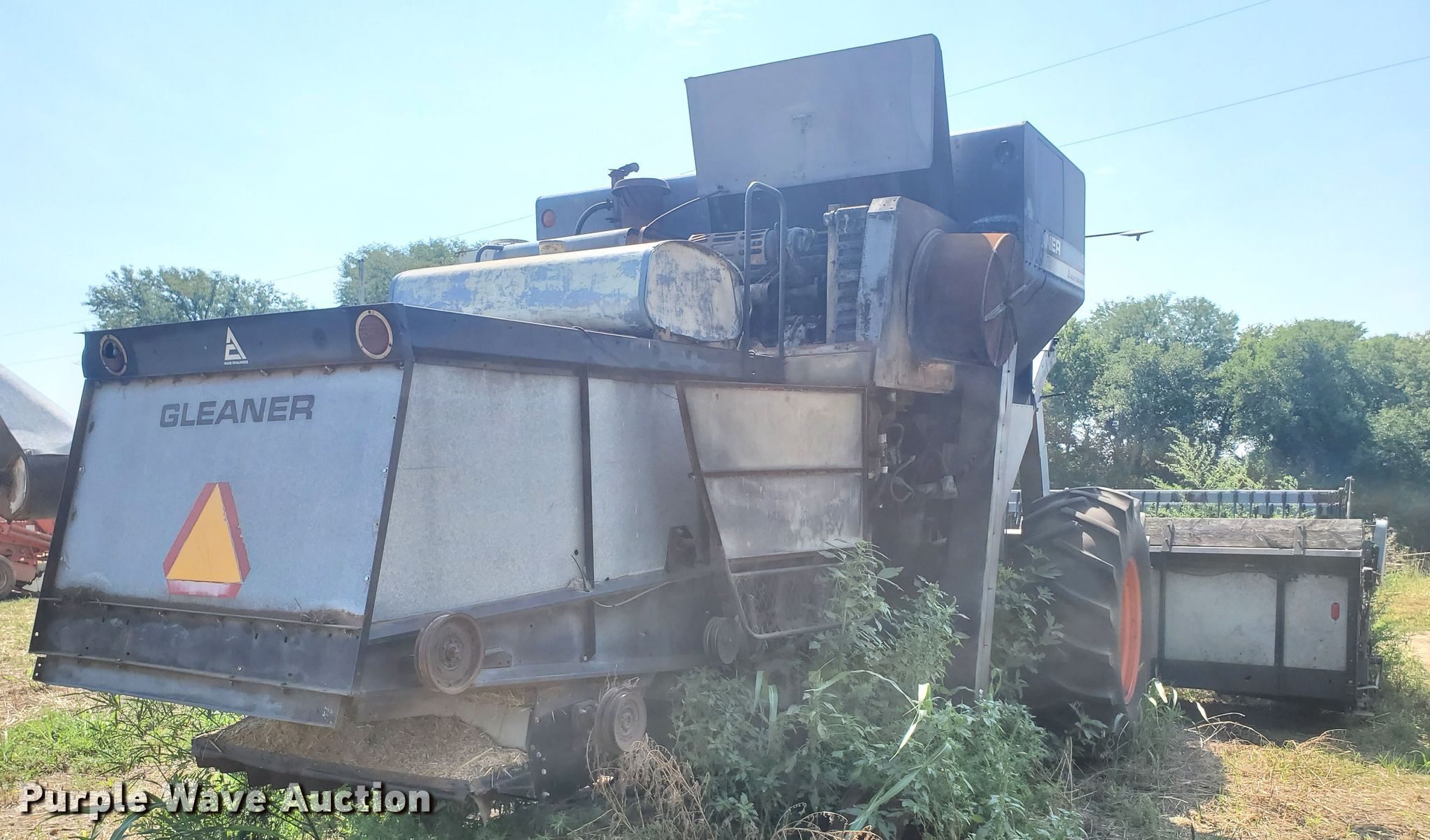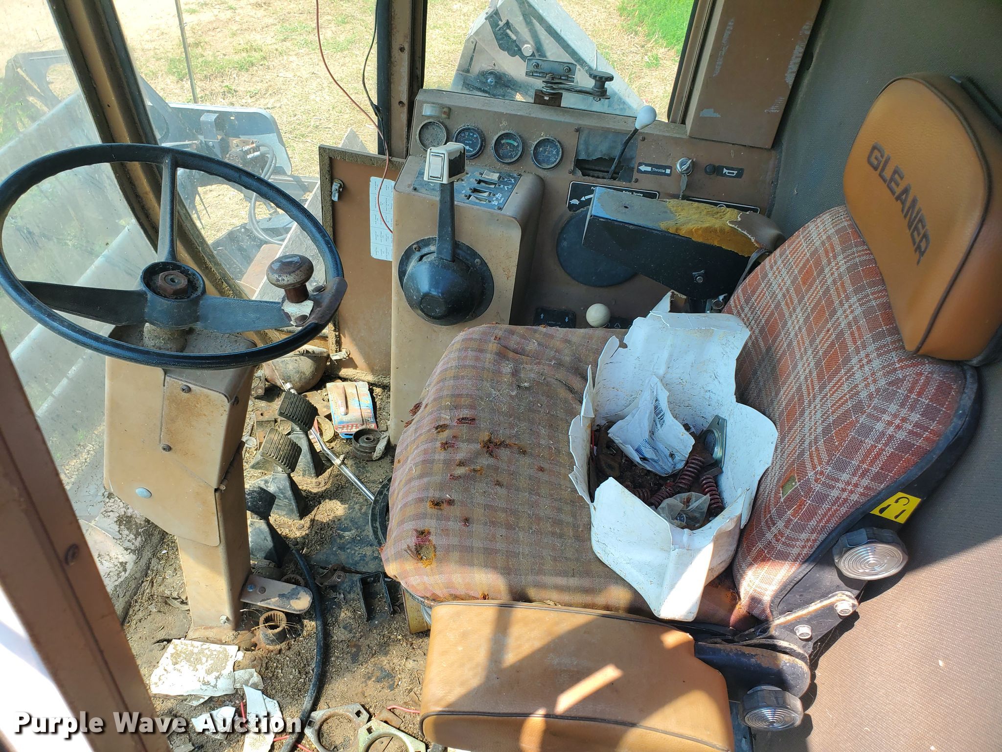 Purple Wave is selling a used Combine in Kansas. This item is a Gleaner L2 Corn Plus combine with the following: 3,625 engine hours on meter, 2,472 separator hours on meter, Deutz-Allis diesel engine, Hydrostatic transmission, 4F-4R gears, Feederhouse, Variable speed, AC and heat, Straw chopper, 13'L unloading auger, Deutz-Allis Green Stripe flex head, 20'W, Finger reel, Hydraulic reel height control, Steel skid plates, Single driveline, Serial LM-2069988F8989, 23.1-34 front tires, 14L-16.1 rear tires, Fire damage, Non-operational unit, Serial L-G22428H