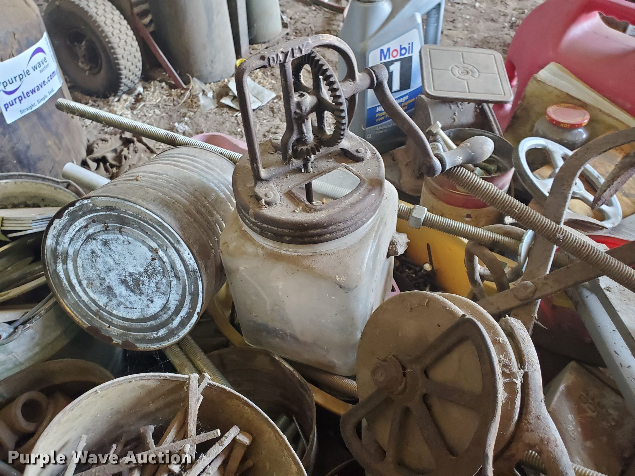 Purple Wave is selling a used Tools in Kansas. This item is a Tools with the following: Oxygen/acetylene torch, Lincoln Idealarc arc welder, (2) Columbia bench vises, Square bales tools, Butter churn, Ice tongs and more