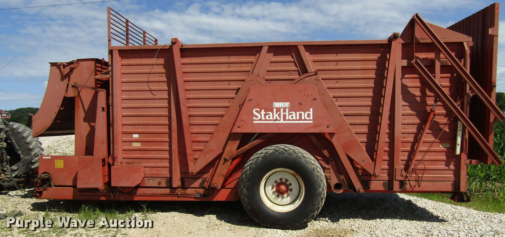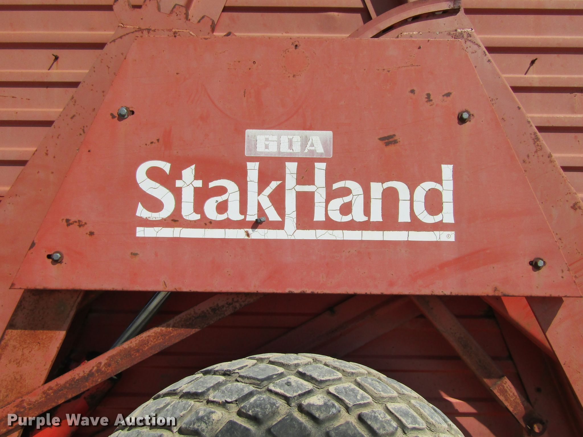 Purple Wave is selling a used Hay Handling in Iowa. This item is a Hesston StakHand 60A bale stacker with the following: 20'L x 8'H, 18.4x26 tires, PTO issues