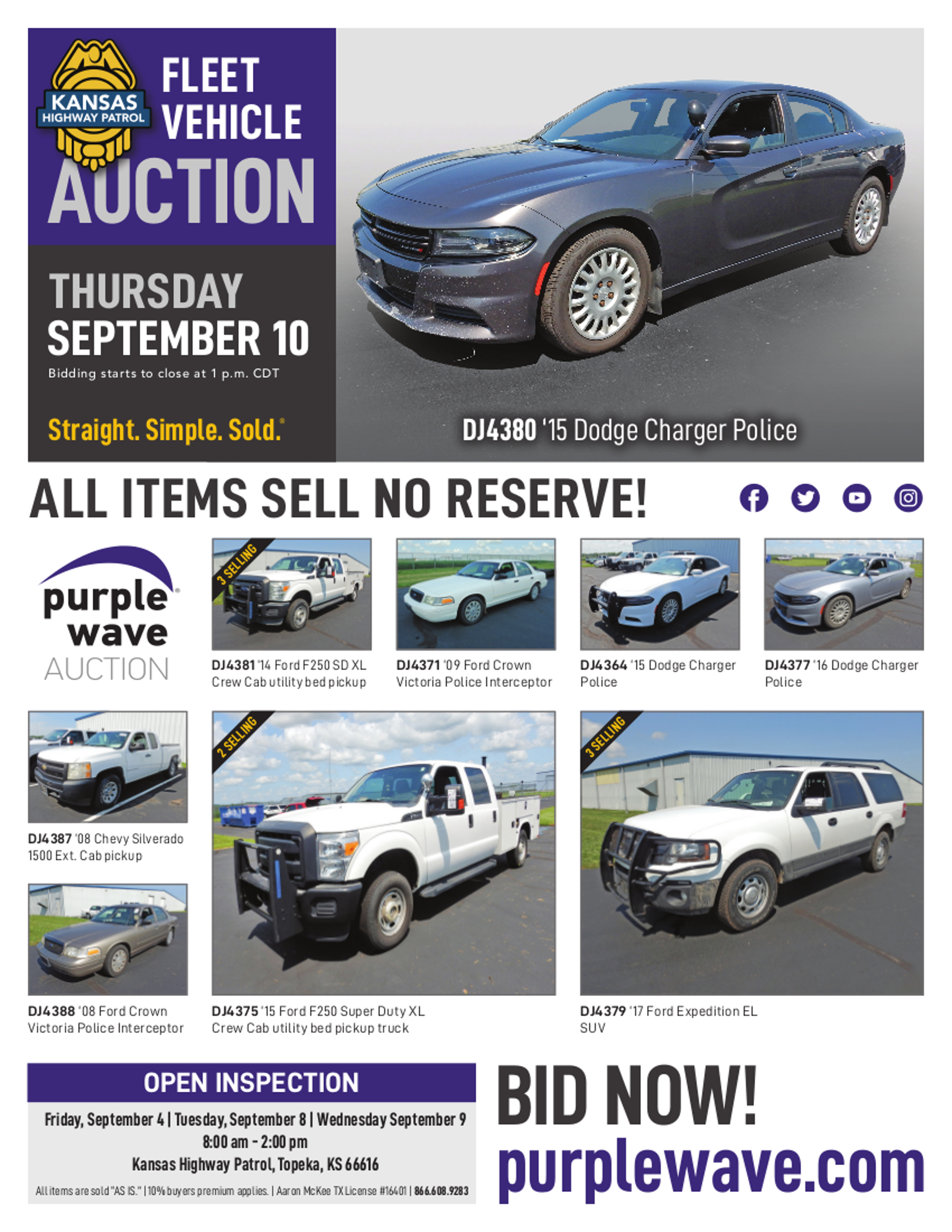 SOLD! September 10 Kansas Highway Patrol Fleet Vehicle Auction