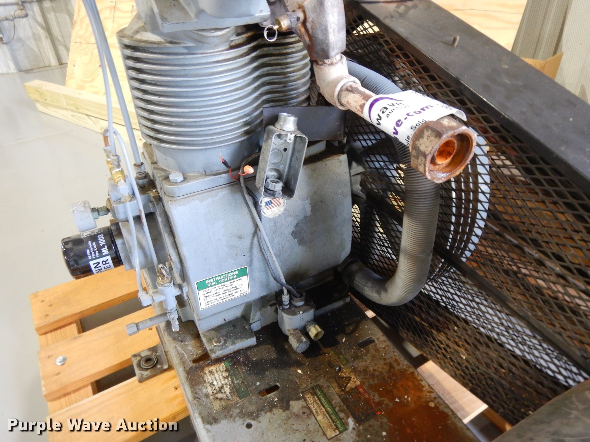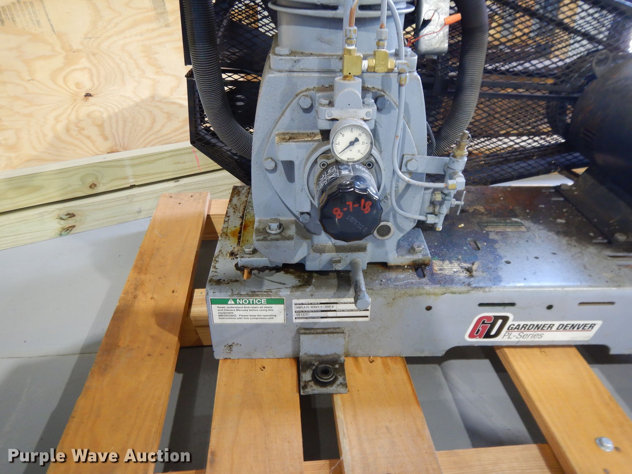 Purple Wave is selling a used Air Compressor in Kansas. This item is a Gardner Denver CBBPLA PL Series 3 air compressor with the following: Serial: D013297