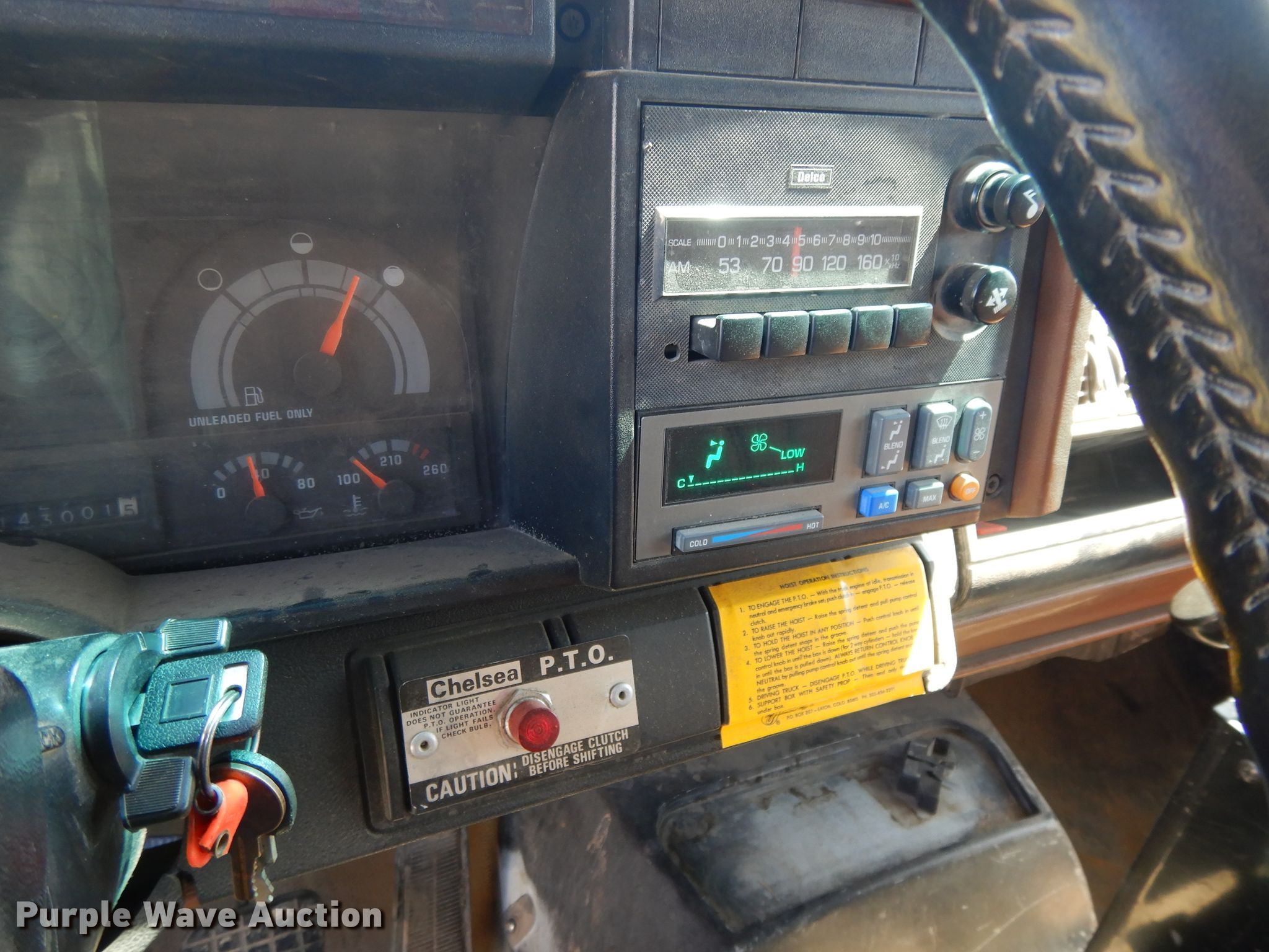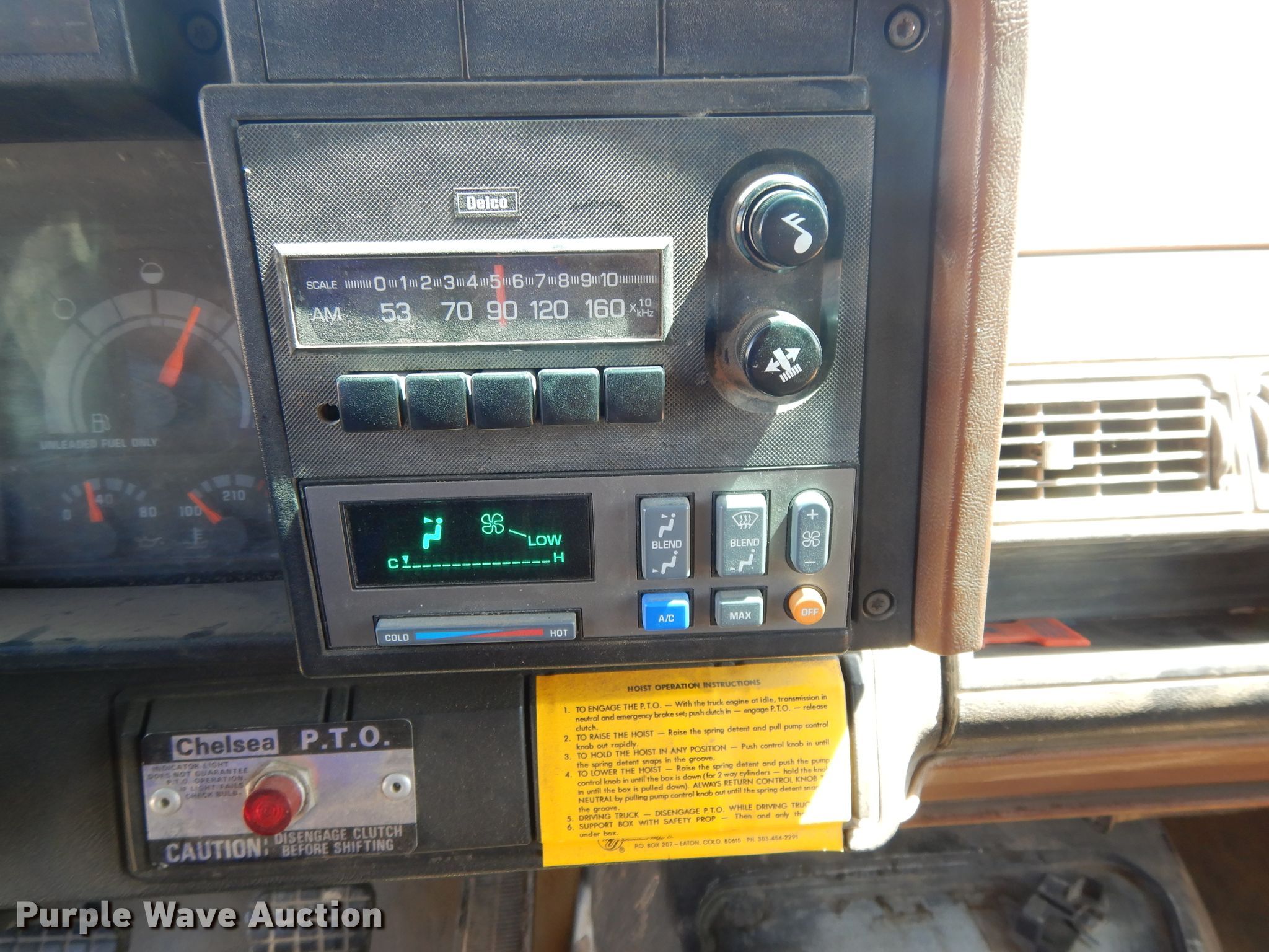 1991 Chevrolet Kodiak C7500 dump truck. 143,001 miles on odometer, Approx. 146,001 total miles. Engine Displacement: 6.0L, Cylinders: 8, Fuel type: Gas. Transmission Manual, Speed: 10. Chassis Axles: Single, Suspension: Spring, Brakes: Hydraulic, PTO, GVWR: 23,300 lbs FAWR: 8,600 lbs, RAWR: 14,200 lbs, Wheelbase: 176". Interior Heat. Operational Dump bed Mabar DB123005, 12' L x 96" W, Side height: 30", Side board height: 12", Bed type: Steel, Ram: Single , End gate: Manual. Tires Front: 295/75R22.5, Rear: 9.00R20. View repairs. Kansas title. 1GBG7H1P7MJ101643. City of Belleville. Belleville, KS 66935