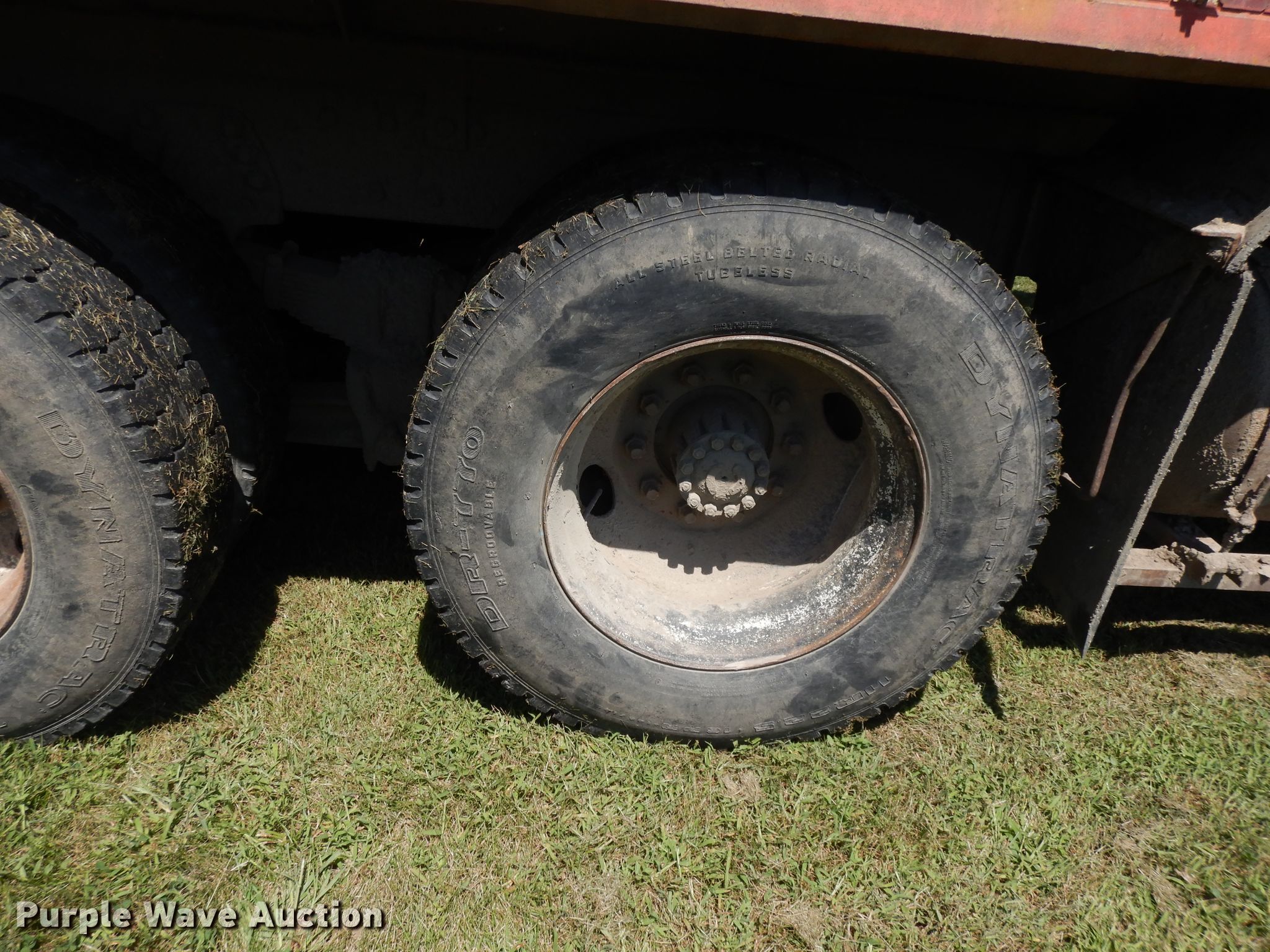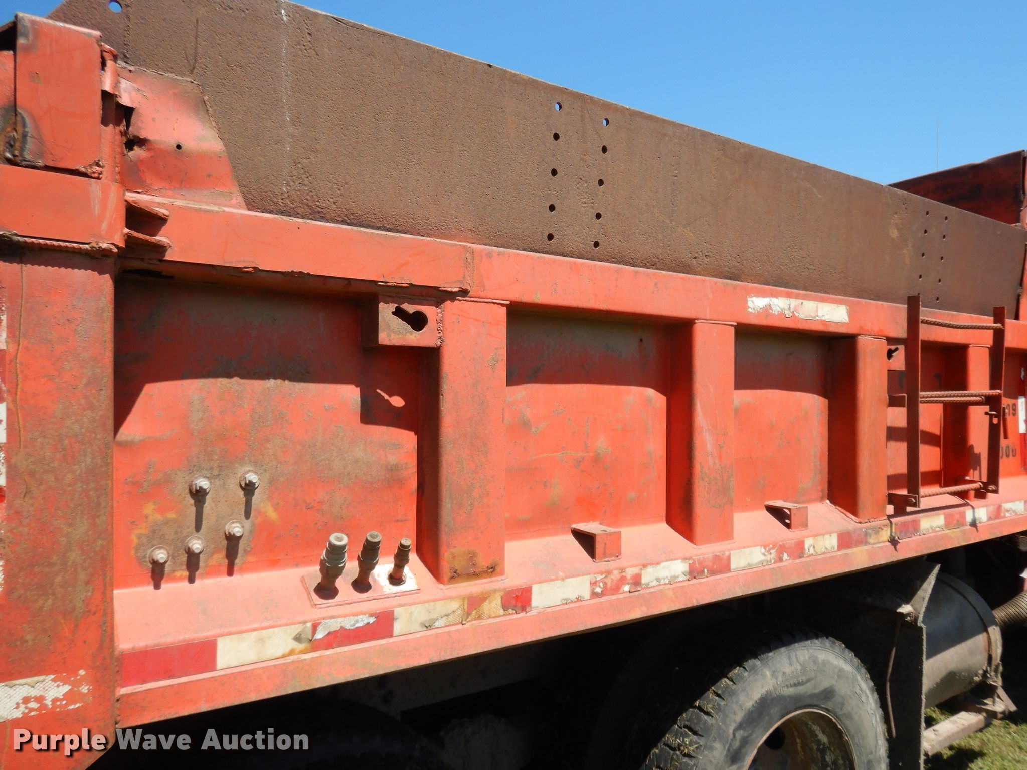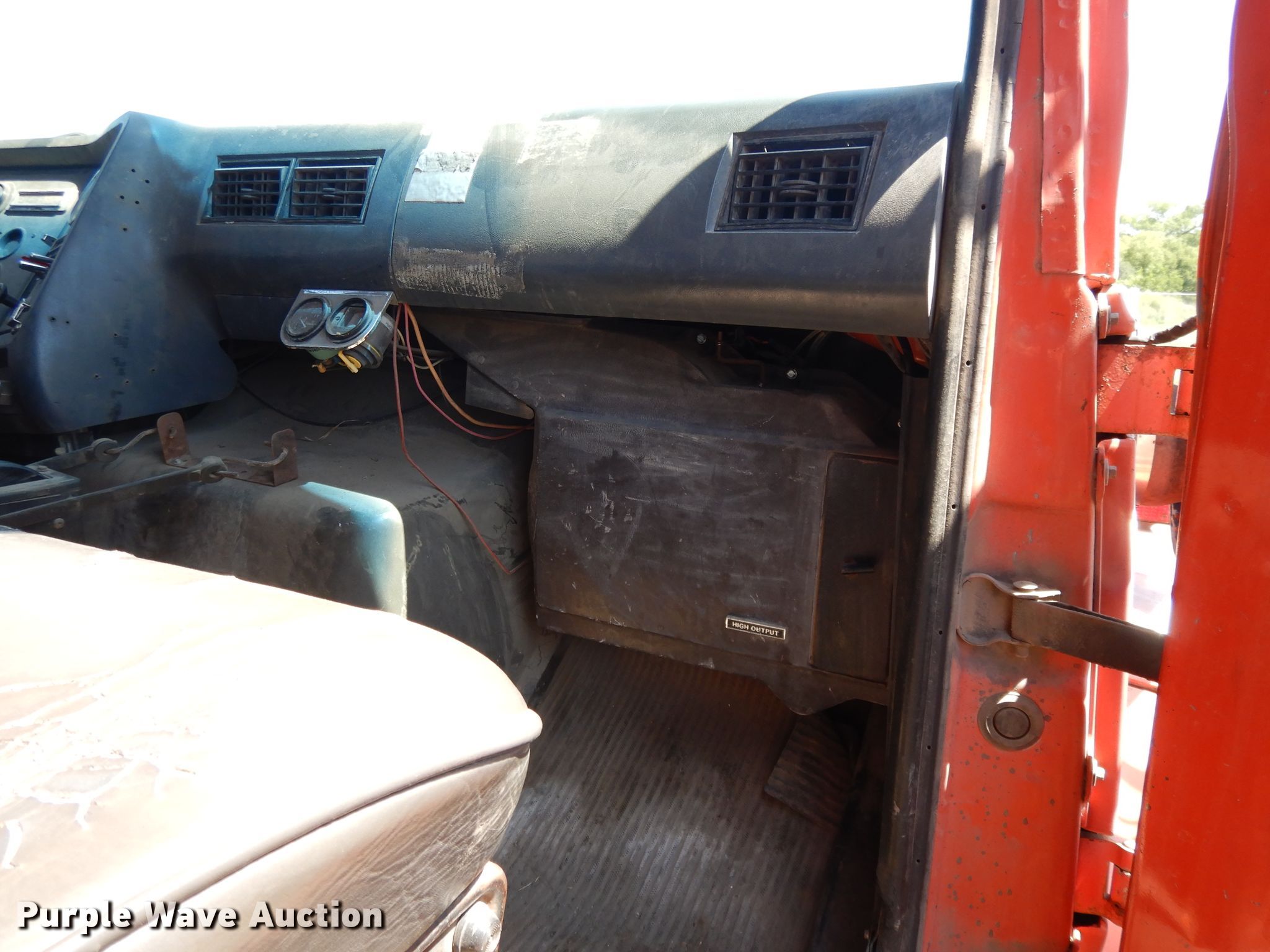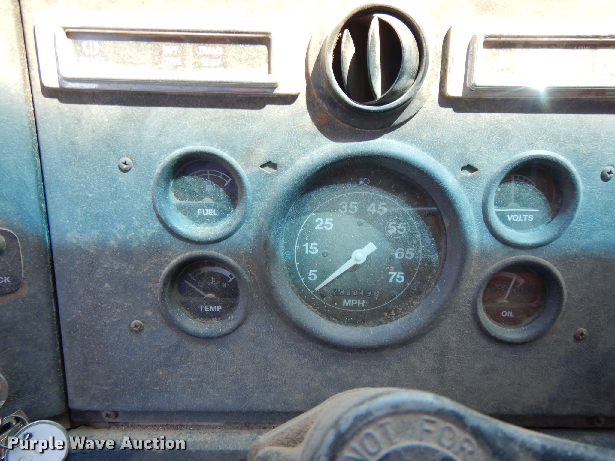 1989 Ford L8000 dump truck. 280,049 miles on odometer, Engine hours: 6,589. Engine Displacement: 7.8L, Cylinders: 6, Fuel type: Diesel. Transmission Automatic. Chassis Axles: Tandem, Differential lock: Inter-axle, Suspension: Walking beam, Brakes: Air, PTO, GVWR: 46,000 lbs, Wheelbase: 174". Interior Heat. Operational Dump bed 12' L x 99" W, Side height: 28", Side board height: 15", Ram: Single , End gate: Manual, Plow Width: 11'. Tires Size: 11R22.5. Notes Windshield chipped or cracked, Walking beam bushing issues, Possible brake issues, Water in oil. Kansas title. 1FDYW82A4KVA23854. City of Belleville. Belleville, KS 66935