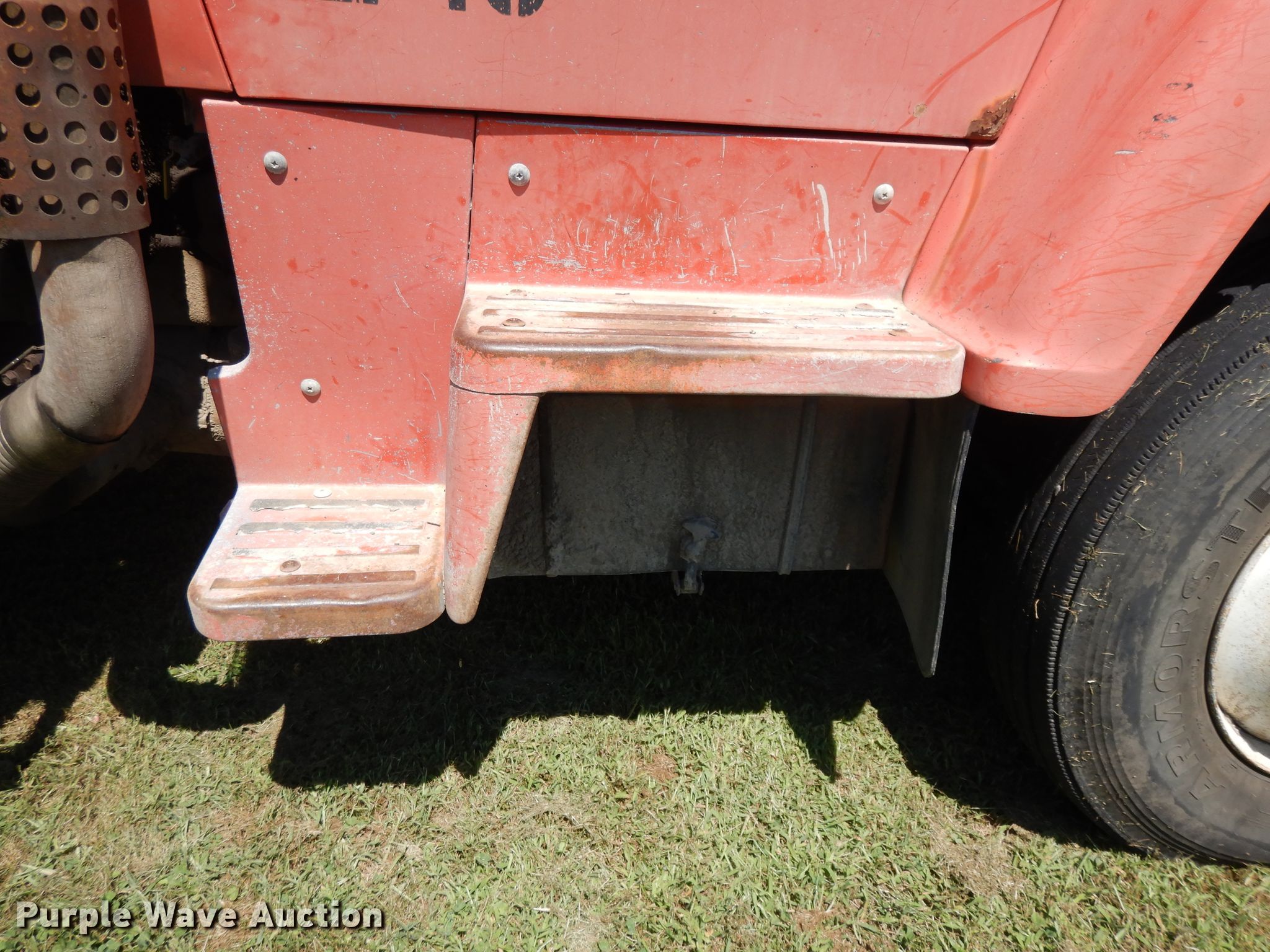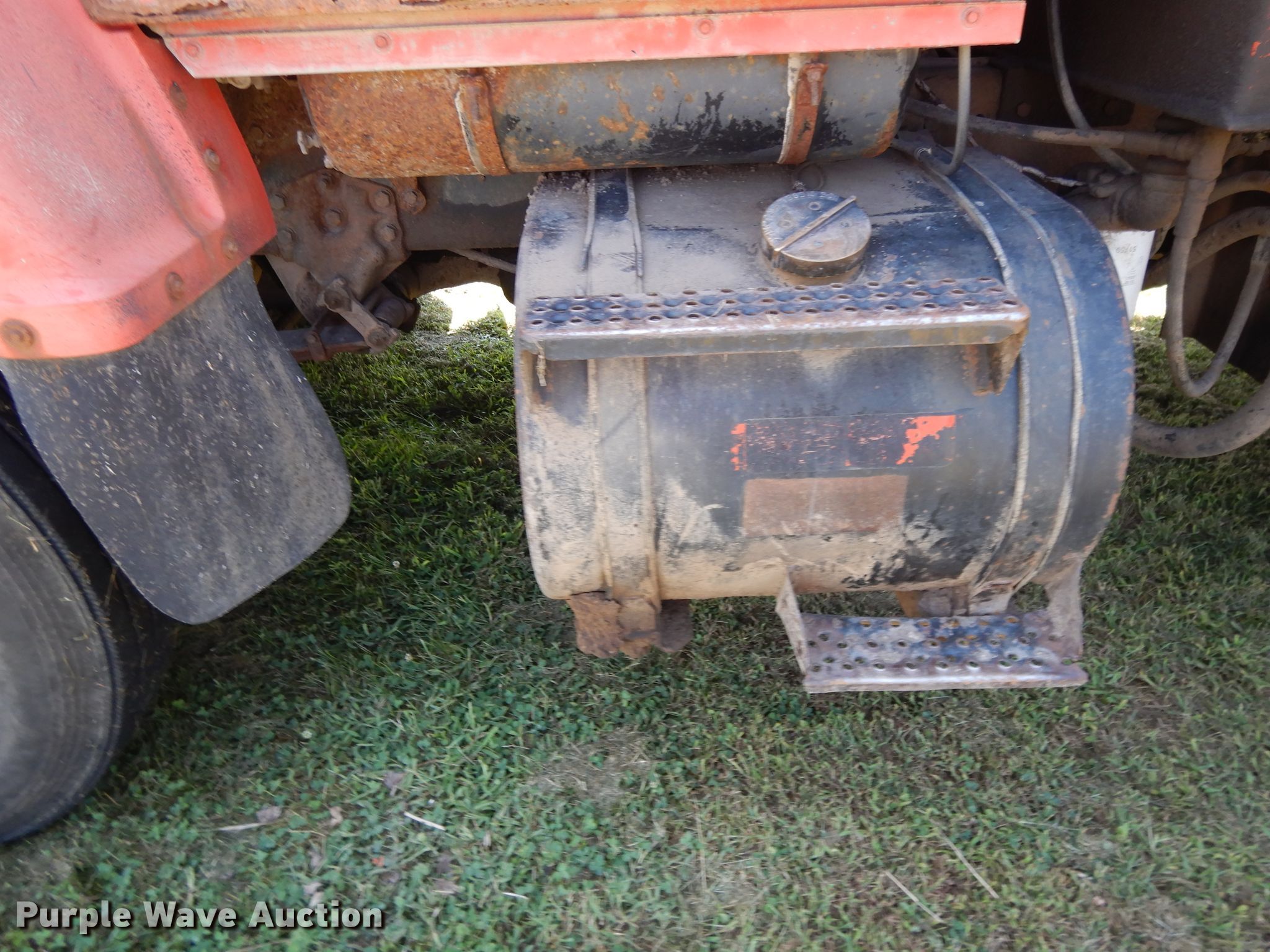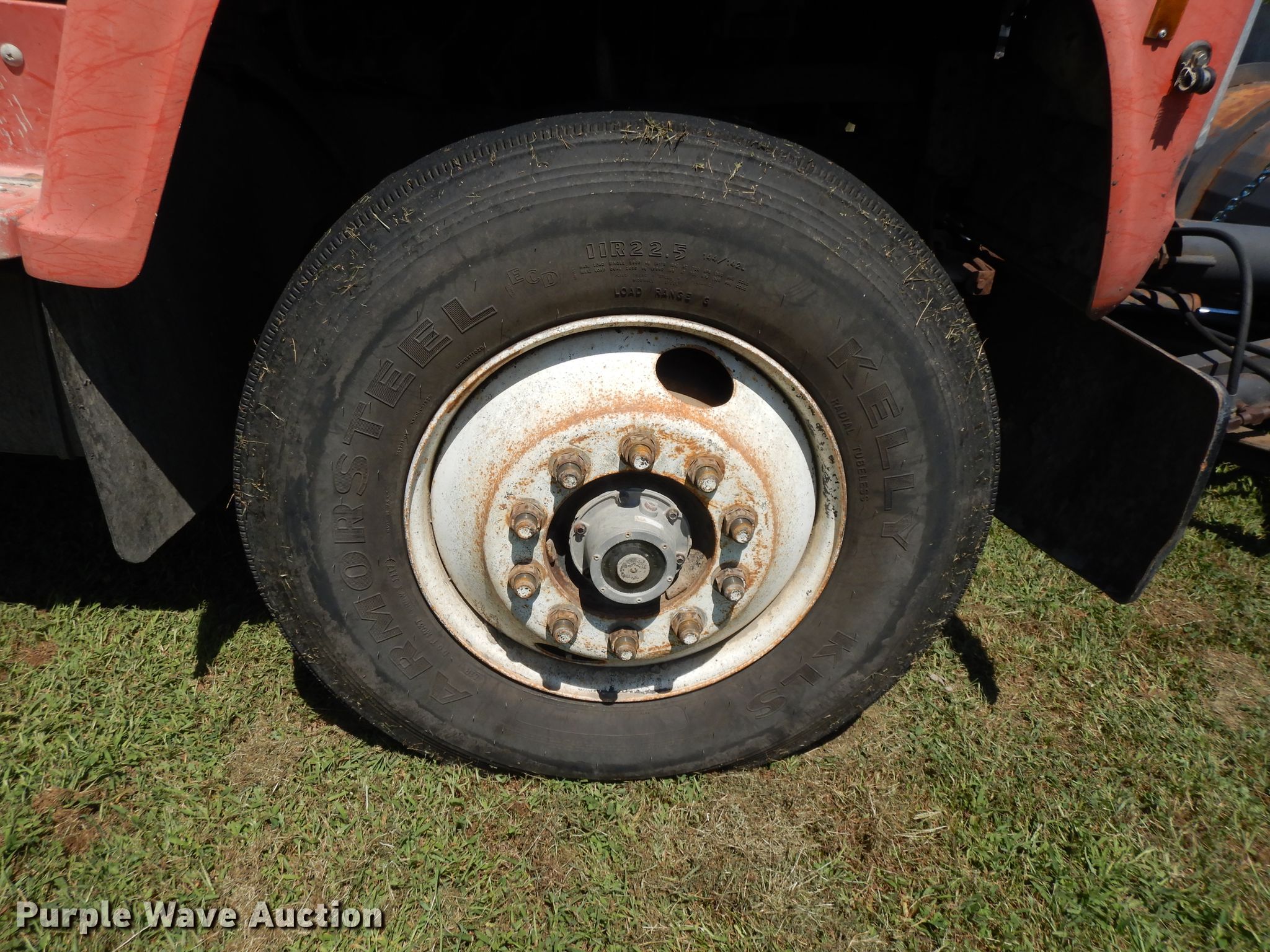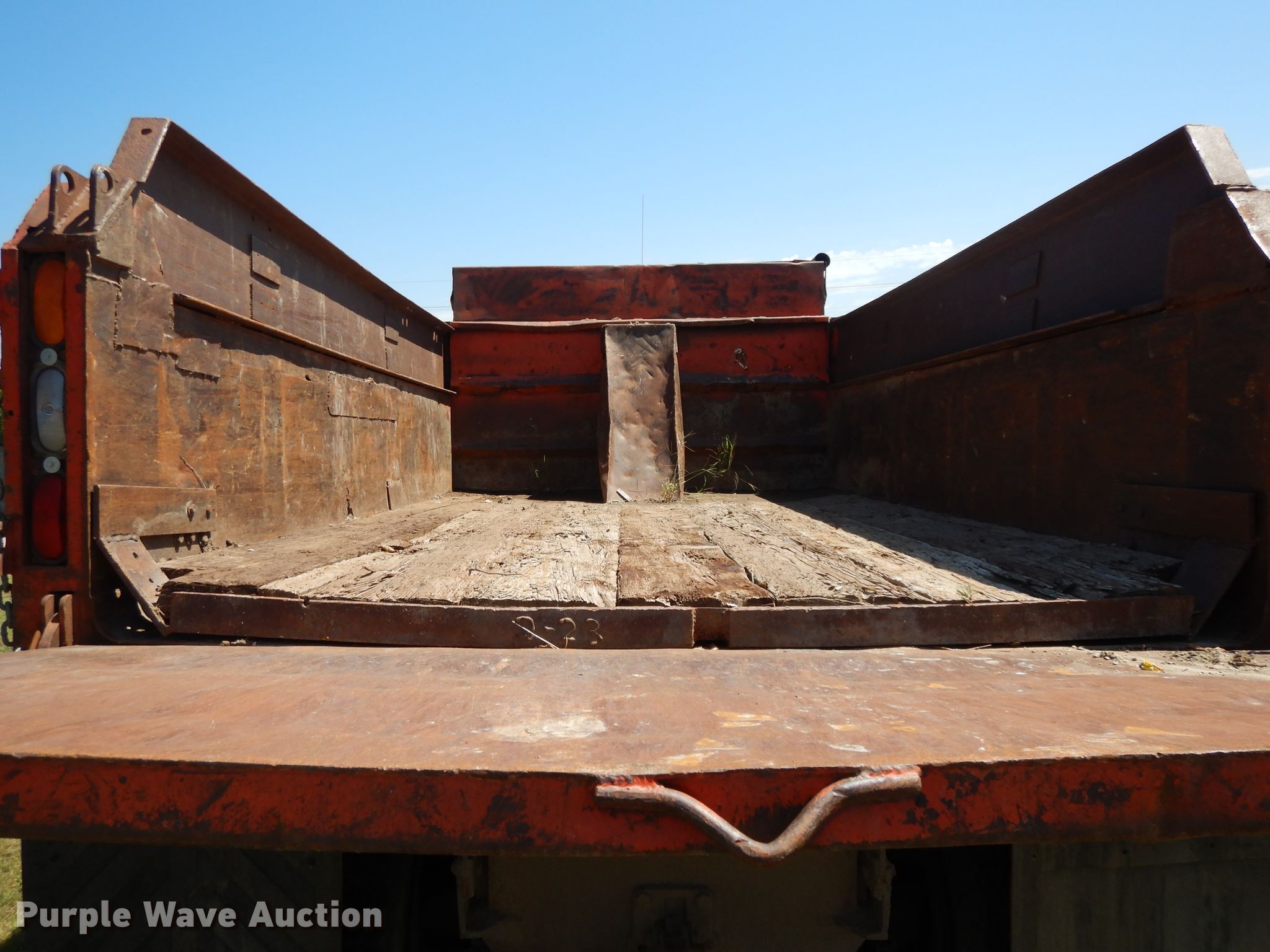 1989 Ford L8000 dump truck. 280,049 miles on odometer, Engine hours: 6,589. Engine Displacement: 7.8L, Cylinders: 6, Fuel type: Diesel. Transmission Automatic. Chassis Axles: Tandem, Differential lock: Inter-axle, Suspension: Walking beam, Brakes: Air, PTO, GVWR: 46,000 lbs, Wheelbase: 174". Interior Heat. Operational Dump bed 12' L x 99" W, Side height: 28", Side board height: 15", Ram: Single , End gate: Manual, Plow Width: 11'. Tires Size: 11R22.5. Notes Windshield chipped or cracked, Walking beam bushing issues, Possible brake issues, Water in oil. Kansas title. 1FDYW82A4KVA23854. City of Belleville. Belleville, KS 66935