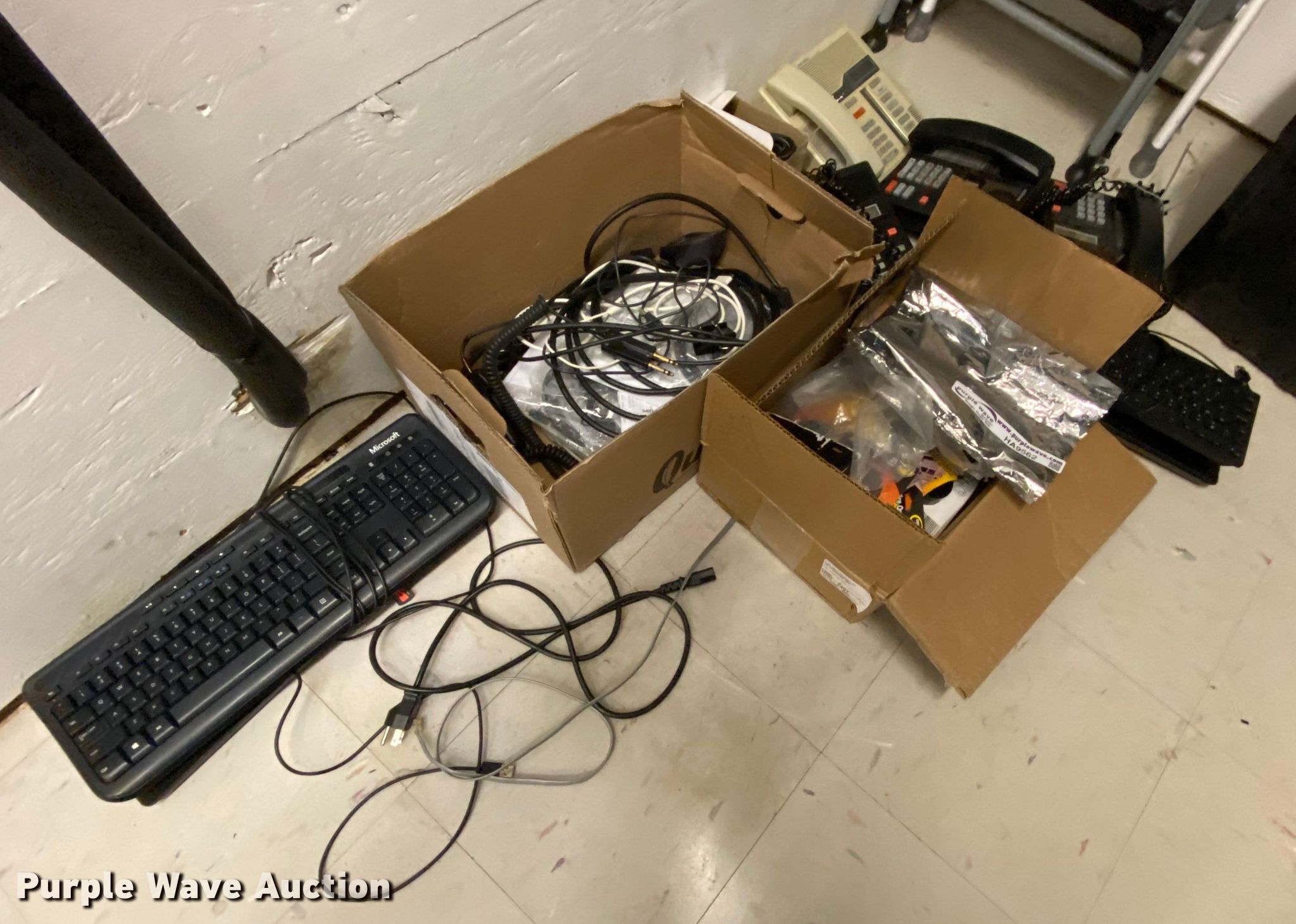 Purple Wave is selling a used Office Supplies and Equip. in Missouri. This item is a Office supplies and equipment with the following: Approx. 5 keyboards, Approx. 4 telephones, Spectracon clock face, CPU power cords, Desk plugs, Assorted inferface cords, XFX R7800 series graphics card, Unknown operating conditions
