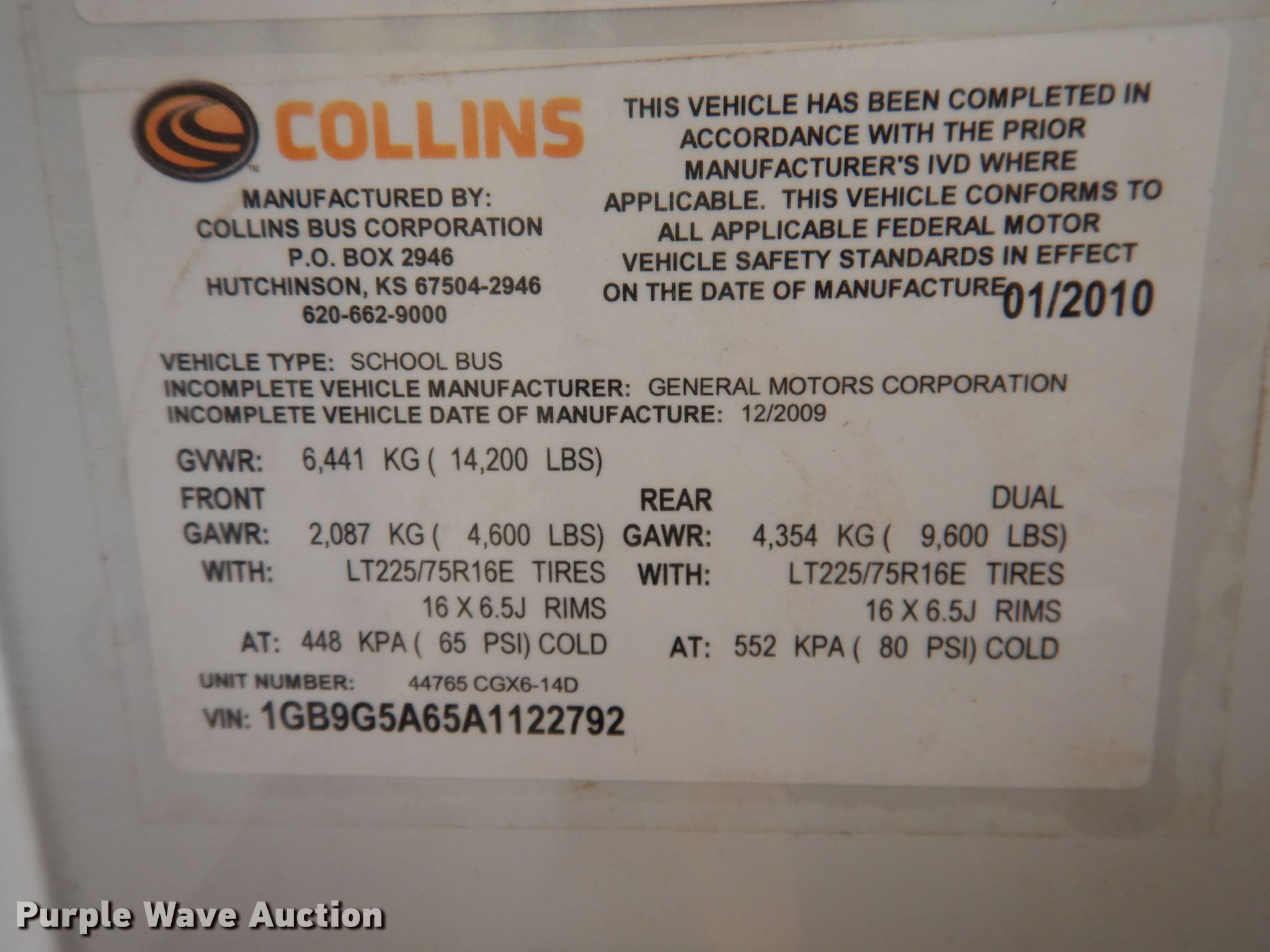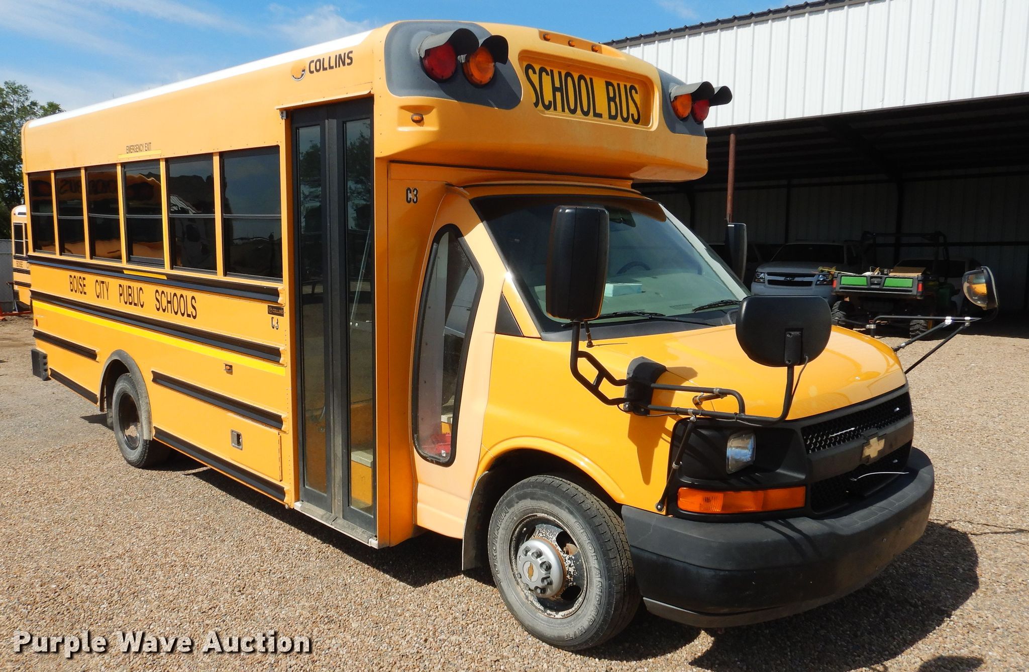Purple Wave is selling a used Bus in Oklahoma. This item is a 2010 Chevrolet Express G4500 CT4 Collins school bus with the following: 120,176 miles on odometer