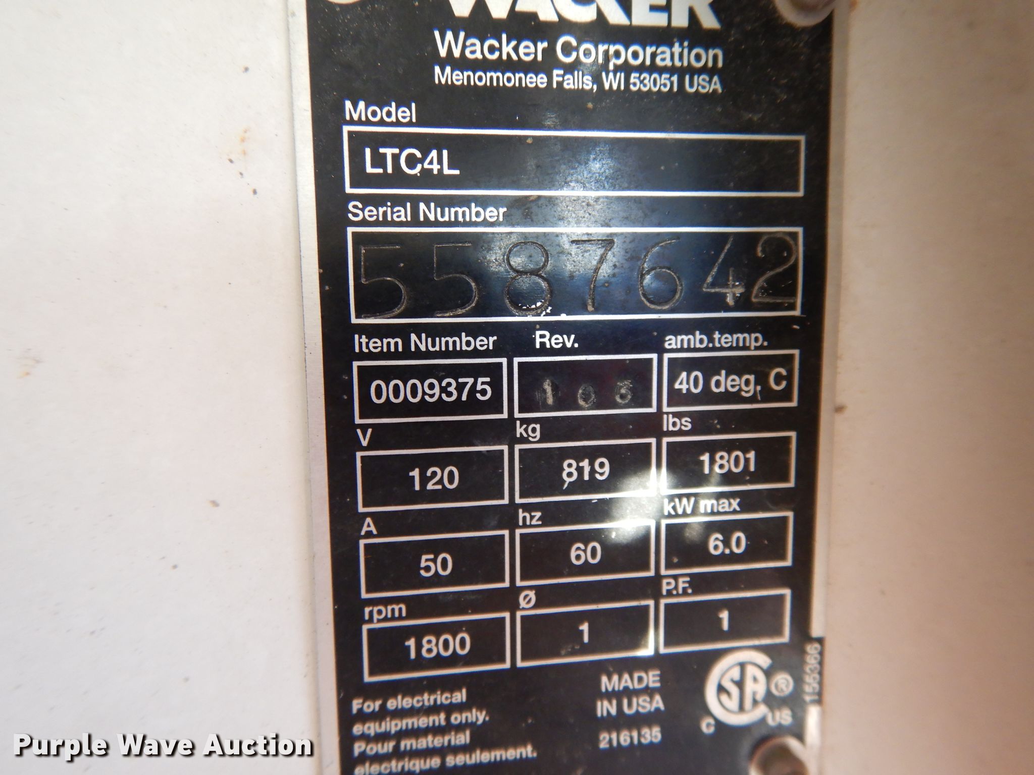 Purple Wave is selling a used Light Plant in Missouri. This item is a Wacker LTC4 light plant with the following: 6,665 hours on meter, Serial: 5587642