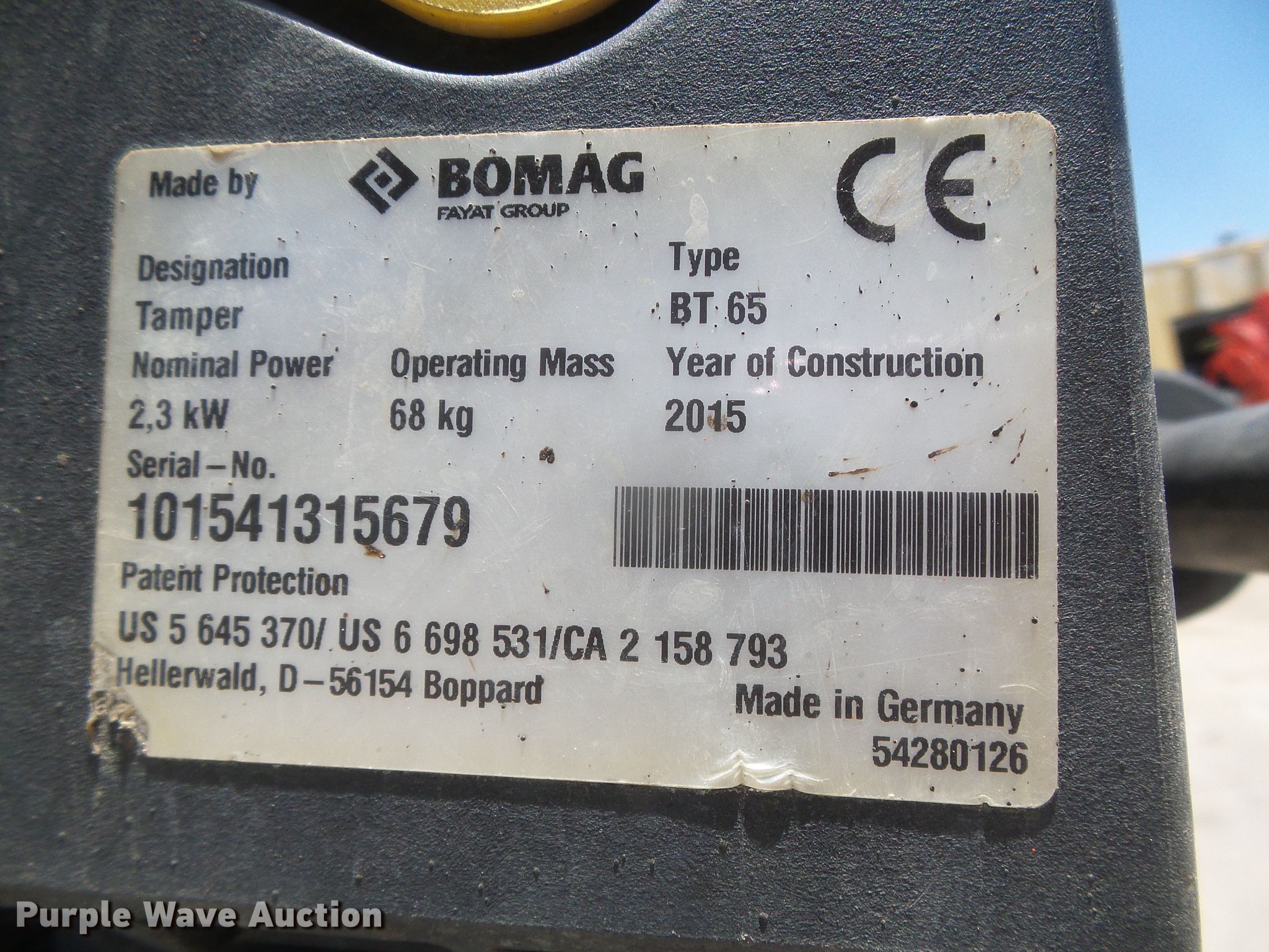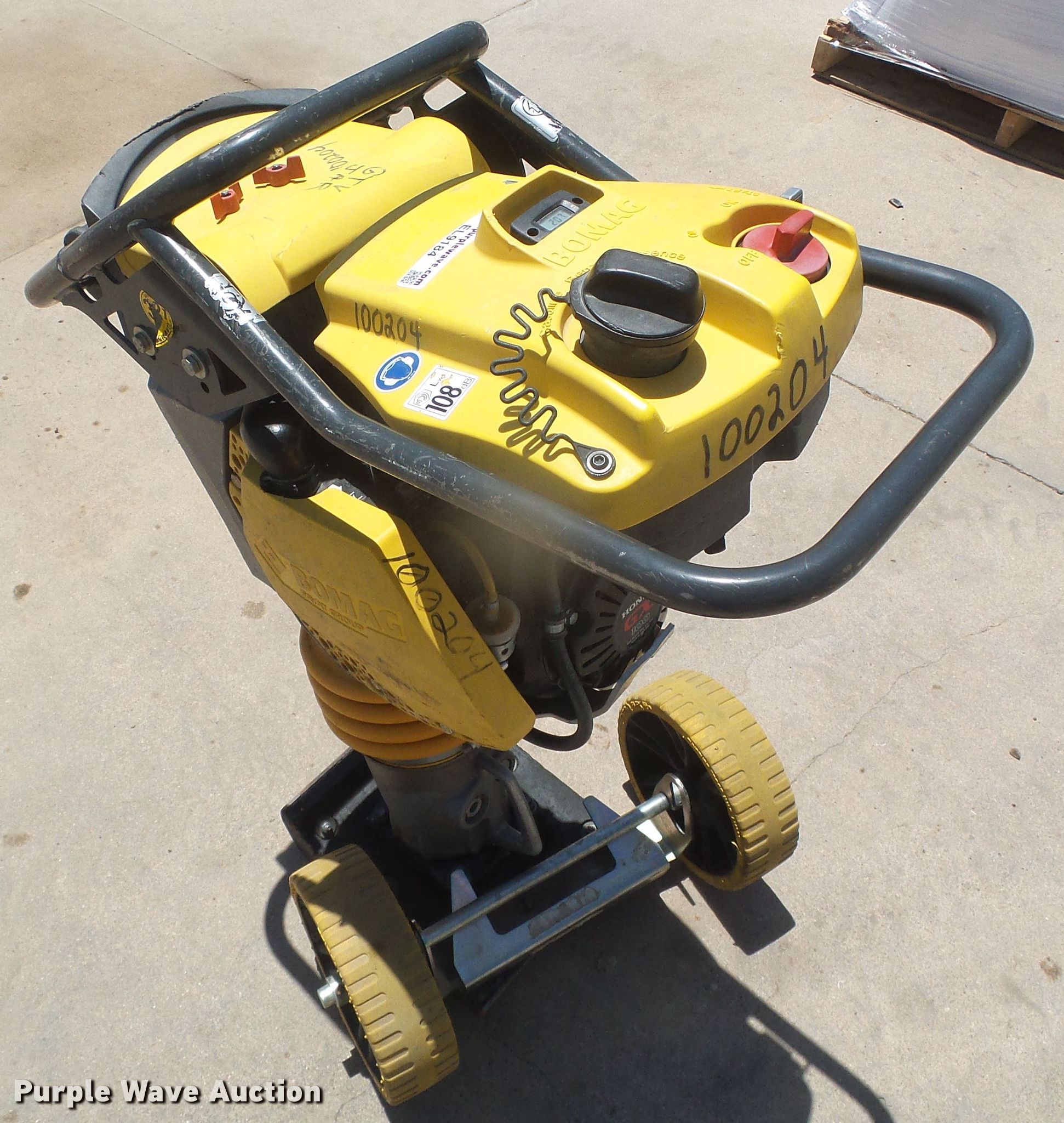 Purple Wave is selling a used Walk Behind Compactor in Kansas. This item is a 2015 Bomag BT65 compactor with the following: 207 hours on meter, Honda GX100 gas engine, Dolly, Serial 101541315679