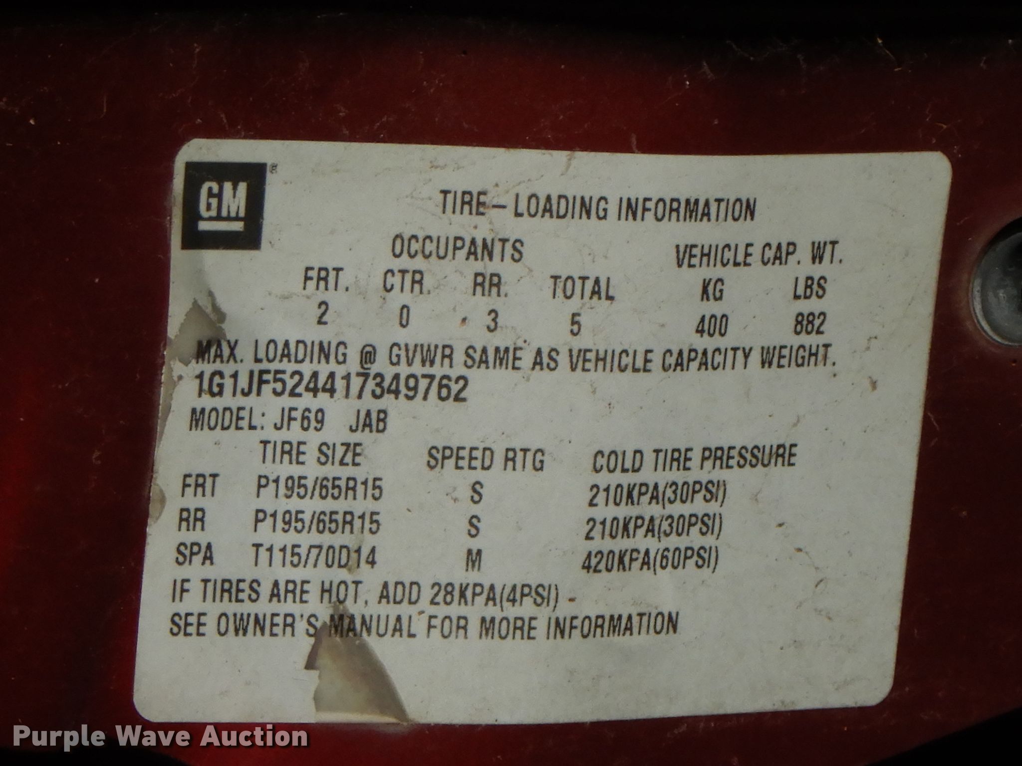 2001 Chevrolet Cavalier. Unknown miles on odometer. Engine Displacement: 2.2L L4 OHV 8V, Cylinders: 4, Fuel type: Gas. Transmission Automatic. Interior AC, Heat, Power windows, Power locks, Cruise control. Tires Size: 195/65R15. Notes Low compression , No battery , Unknown operating condition. Kansas title. Mileage has not been verified. Odometer discrepancy will be marked on the title. Title distribution may be delayed up to 14 days from verification of funds. 1G1JF524417349762. 7125 SE Quaker Rd. Riverton, KS 66770