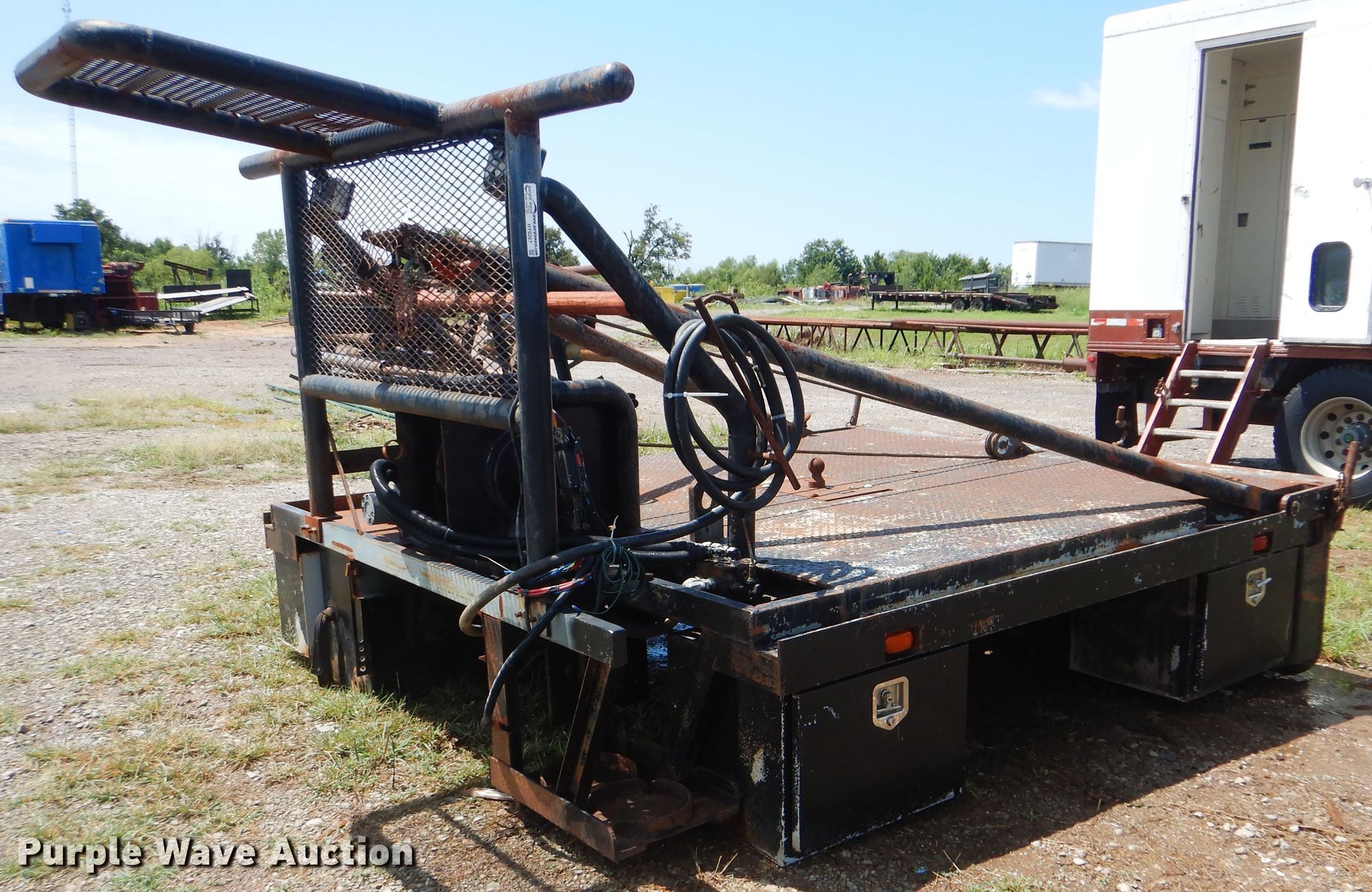 Purple Wave is selling a used Truck Part and Attach. in Oklahoma. This item is a Winch truck bed with the following: 9'8"L x 94"W, 92"W rolling tailboard, 9'L gin poles, Rufnek winch