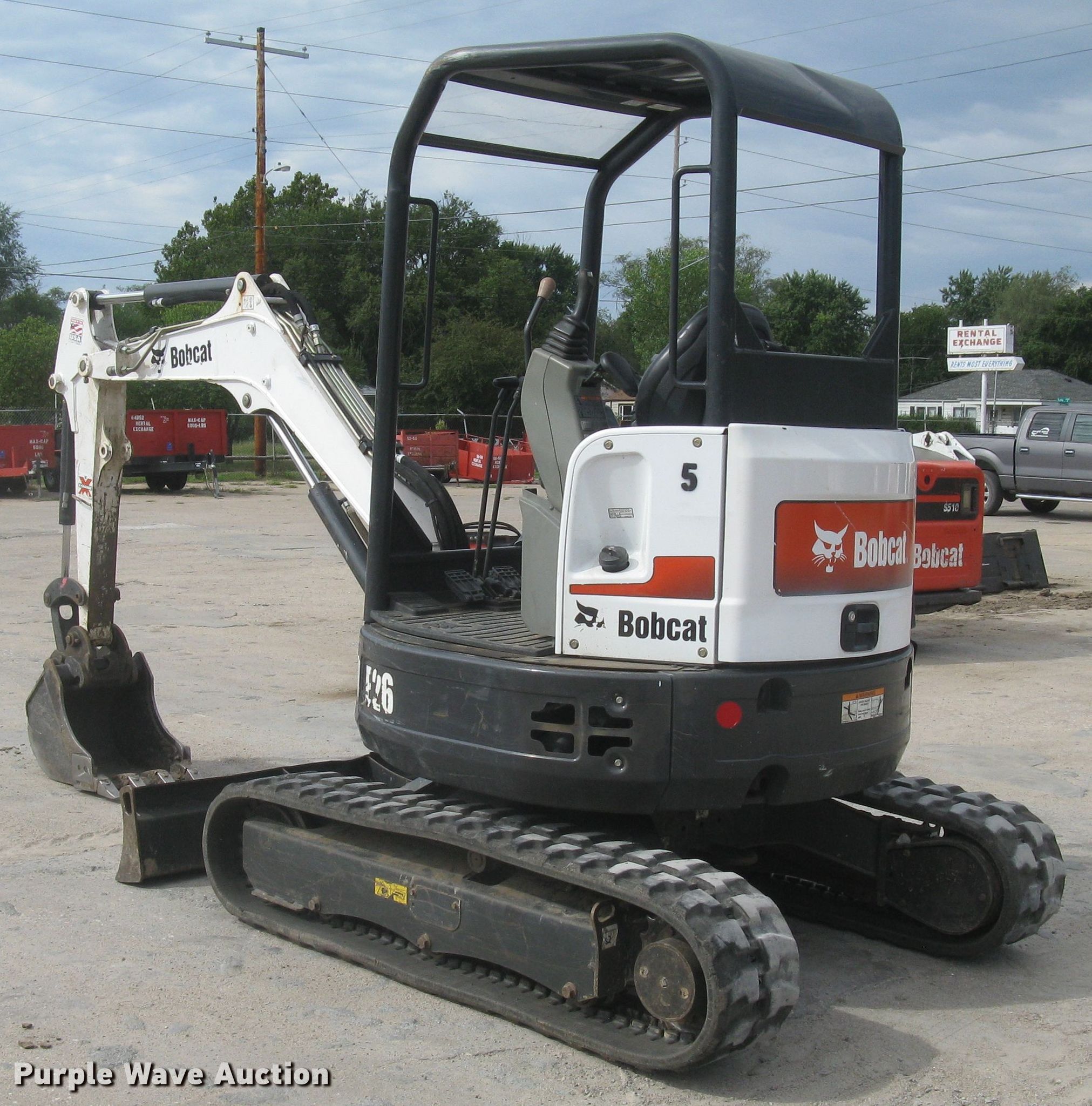 Purple Wave is selling a used Mini Excavator in Kansas. This item is a Bobcat E26 mini excavator with the following: 1,449 hours on meter, Serial: B3JE12451, Unit #: 5