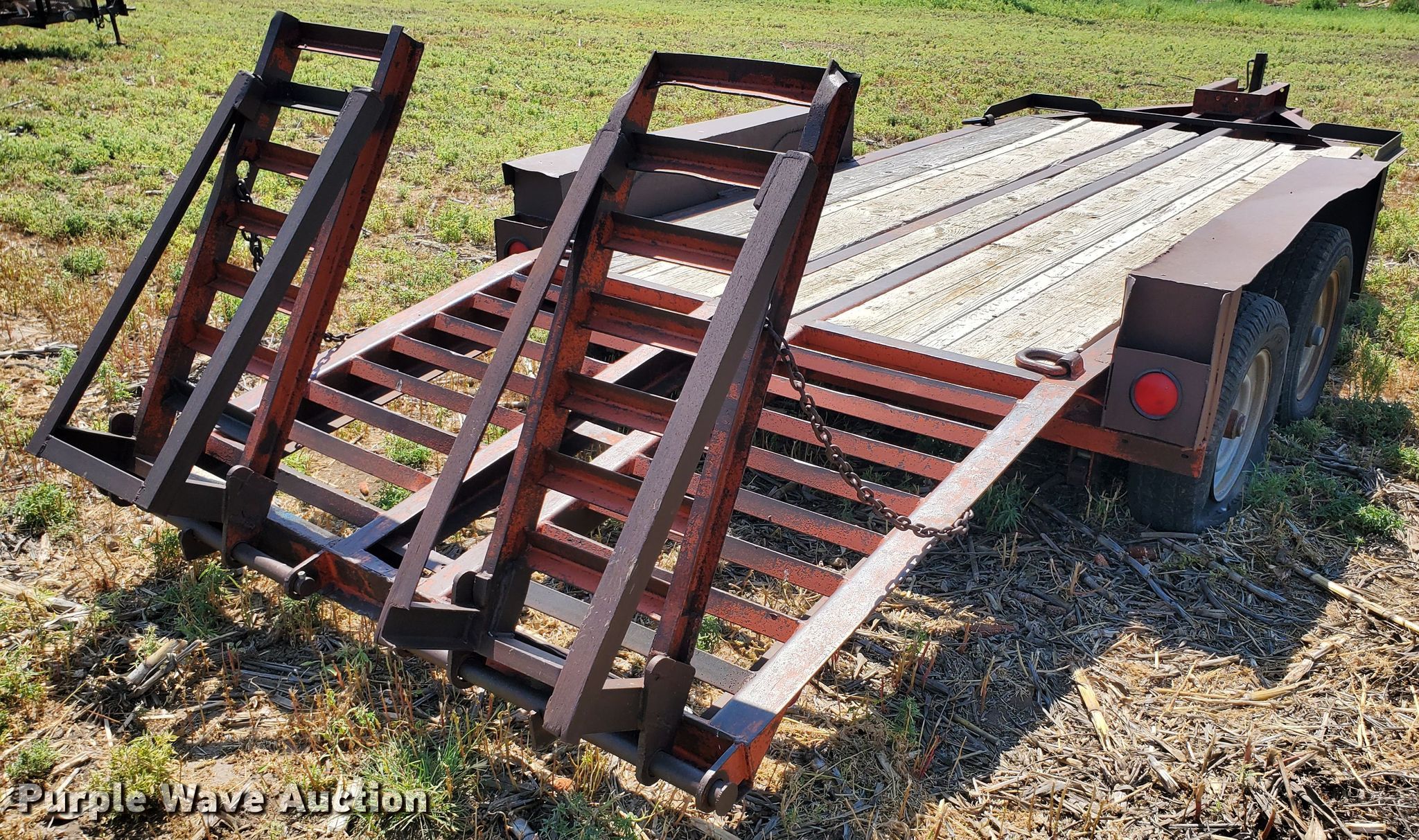 Purple Wave is selling a used Equip. Trailer in Kansas. This item is a 1977 Ditch Witch equipment trailer with the following: 20'L x 96"W overall, 12'L x 75"W wood deck, 4.5' tail length, 4'L ramps, Spring suspension, Tandem axle, Steel wheels, 225/75R16 tires