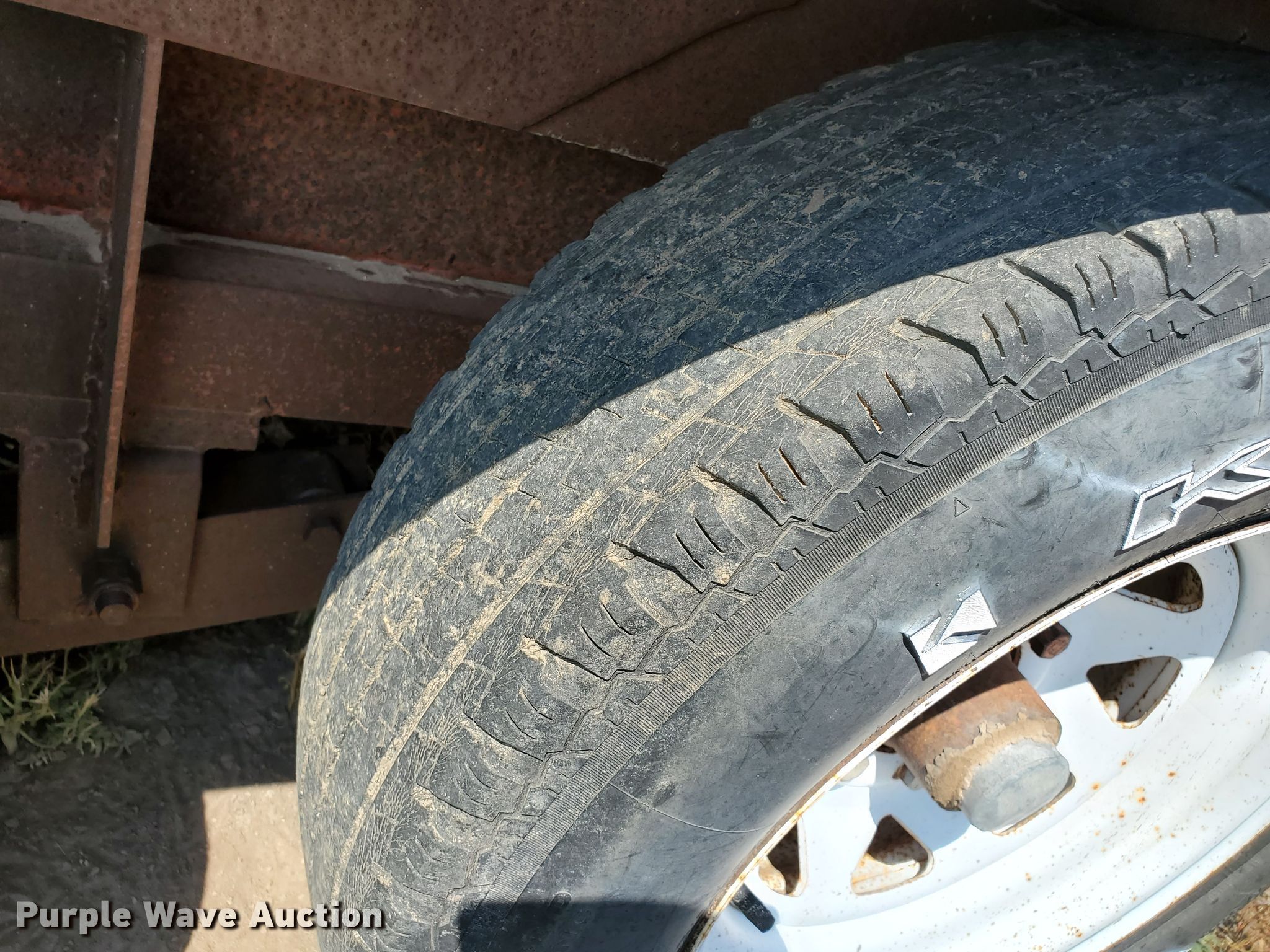 1977 Ditch Witch equipment trailer. 20'L x 96"W overall, 12'L x 75"W wood deck, 4.5' tail length, 4'L ramps, Spring suspension, Tandem axle, Steel wheels, 225/75R16 tires. Kansas title. 9066. Smyth Oil and Gas Services. 2398 W. Road 10. Ulysses, KS 67880