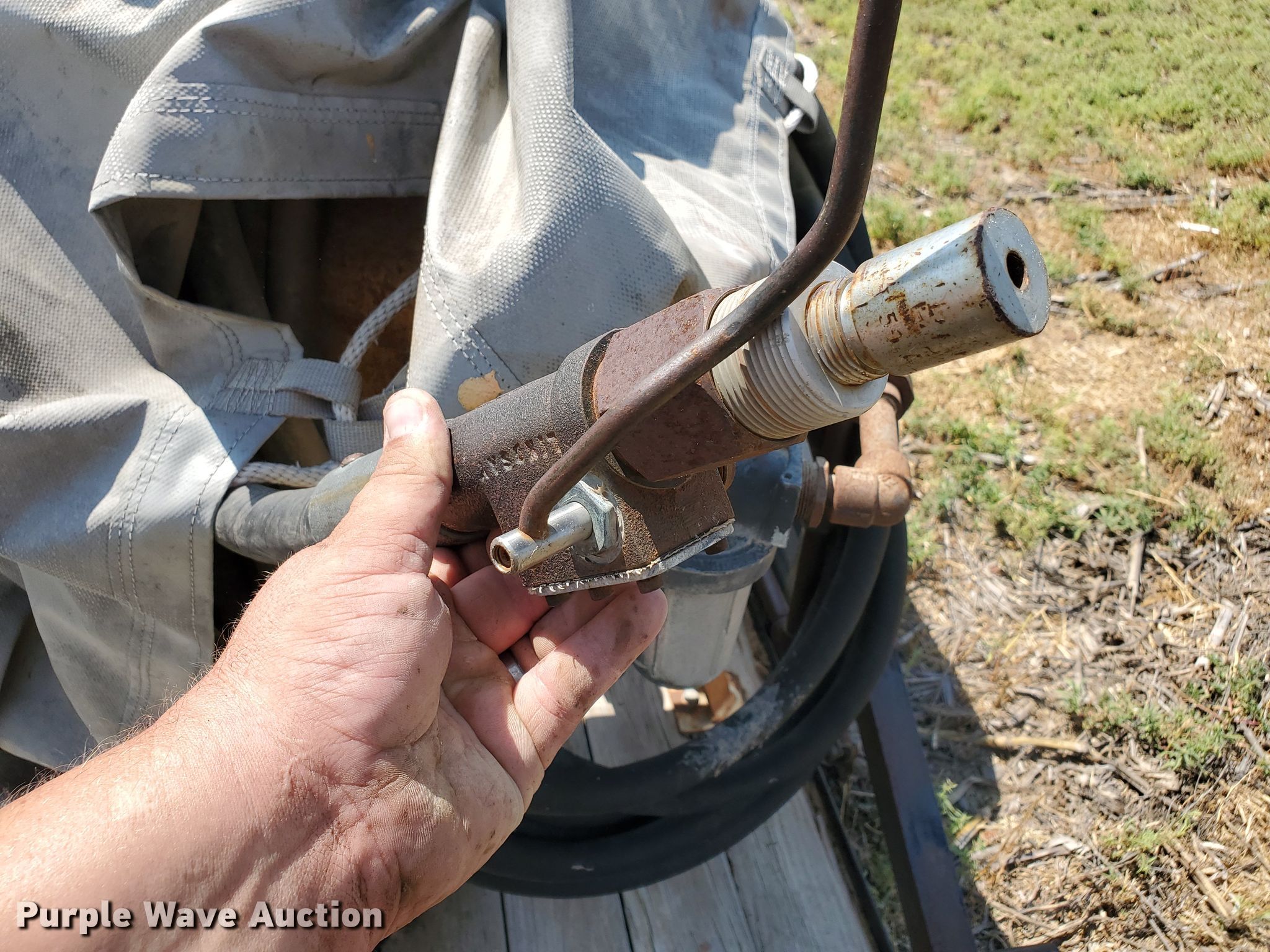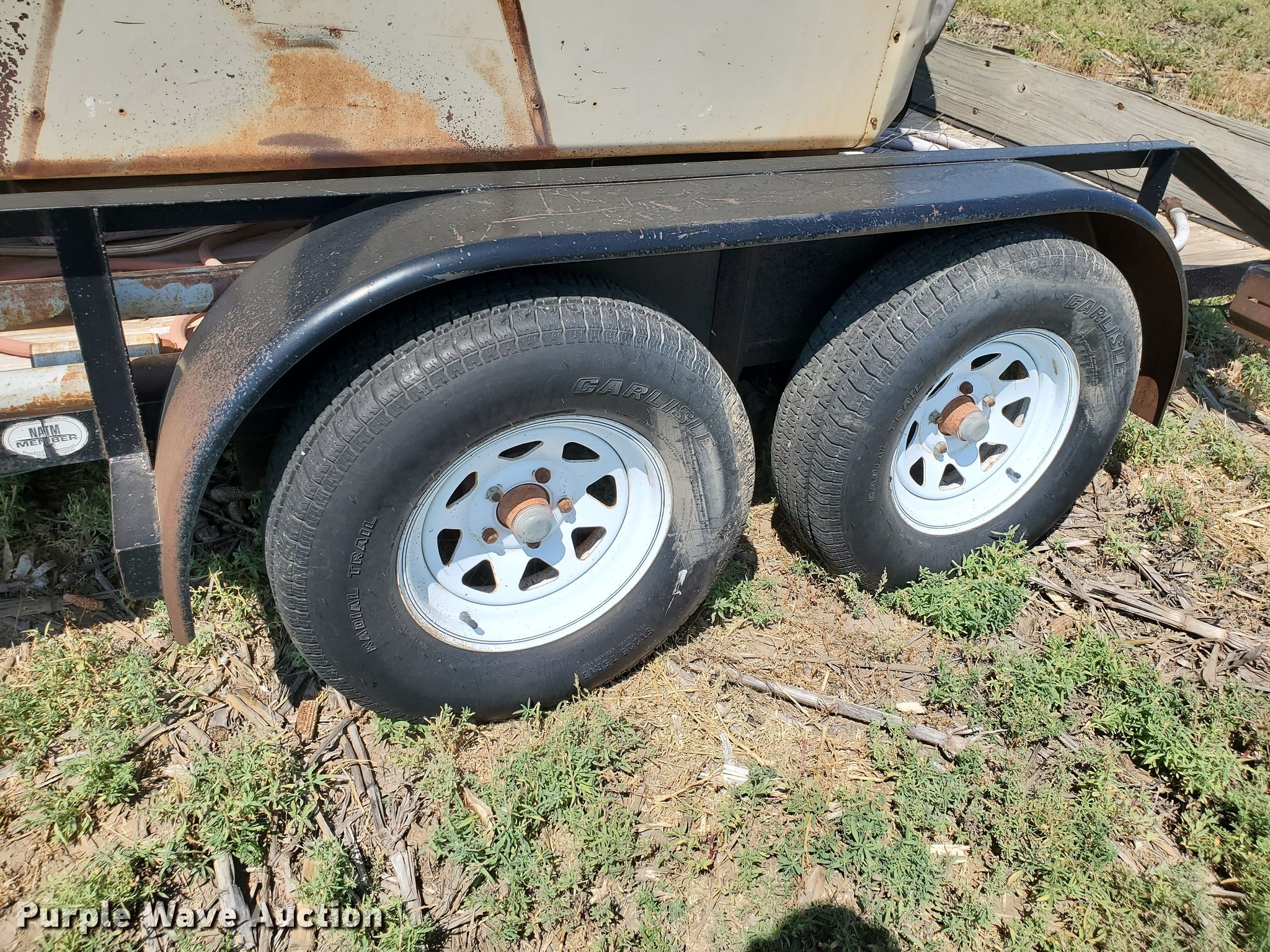 Purple Wave is selling a used Car or Utility Trailer in Kansas. This item is a 2000 Big Tex utility trailer with soda blast machine with the following: 17'L overall, 14'L x 78"W wood deck, Ingersoll Rand air compressor, Serial: 129465U82957, John Deere four cylinder diesel engine, Soda blast machine, Model SB200, Hose, Nozzle, Single leg landing gear, Spring suspension, Electric brakes, Tandem axle, Steel wheels, 225/75R15 tires, Unknown operating condition