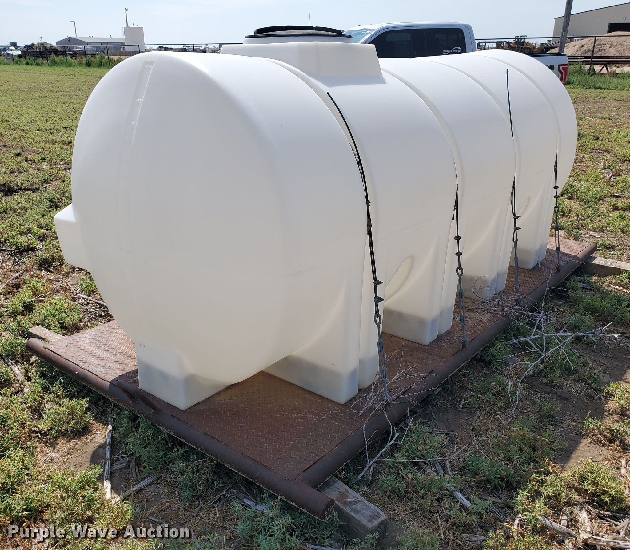 Purple Wave is selling a used Tanks in Kansas. This item is a 1,000 gallon poly tank with the following: Skid mounted