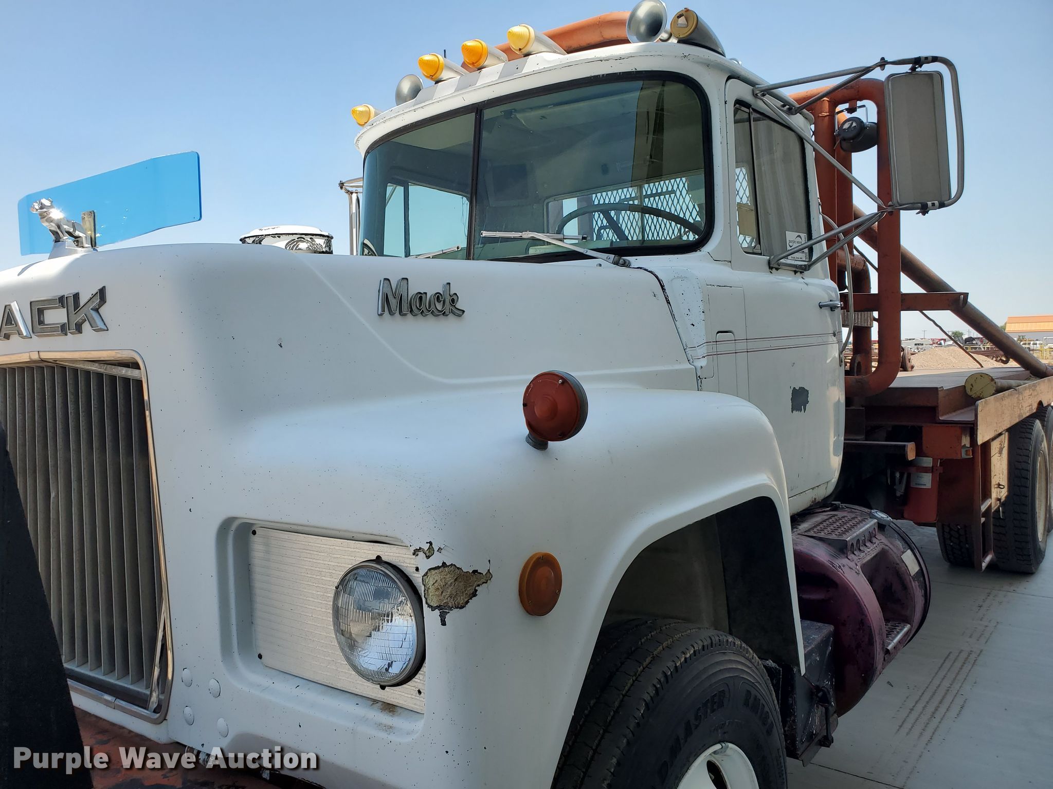 1981 Mack winch truck. 171,391 miles on odometer, Engine hours: 3,665. Engine Mack, Cylinders: 6, Fuel type: Diesel. Transmission Mack Quadraplex, Manual, Speed: 20. Chassis Axles: Tandem, Suspension: Camelback, Brakes: Air, PTO. Interior AC, Heat. Operational Flatbed Length: 16', Width: 96", Rolling tailboard, (2) Winches Braden, Capacity: 20,000 lbs, Gin pole length: 17'. Tires Front: 11r24.5. Kansas title. 1M2P137Y5BA009696. Smyth Oil and Gas Services. 2398 W. Road 10. Ulysses, KS 67880