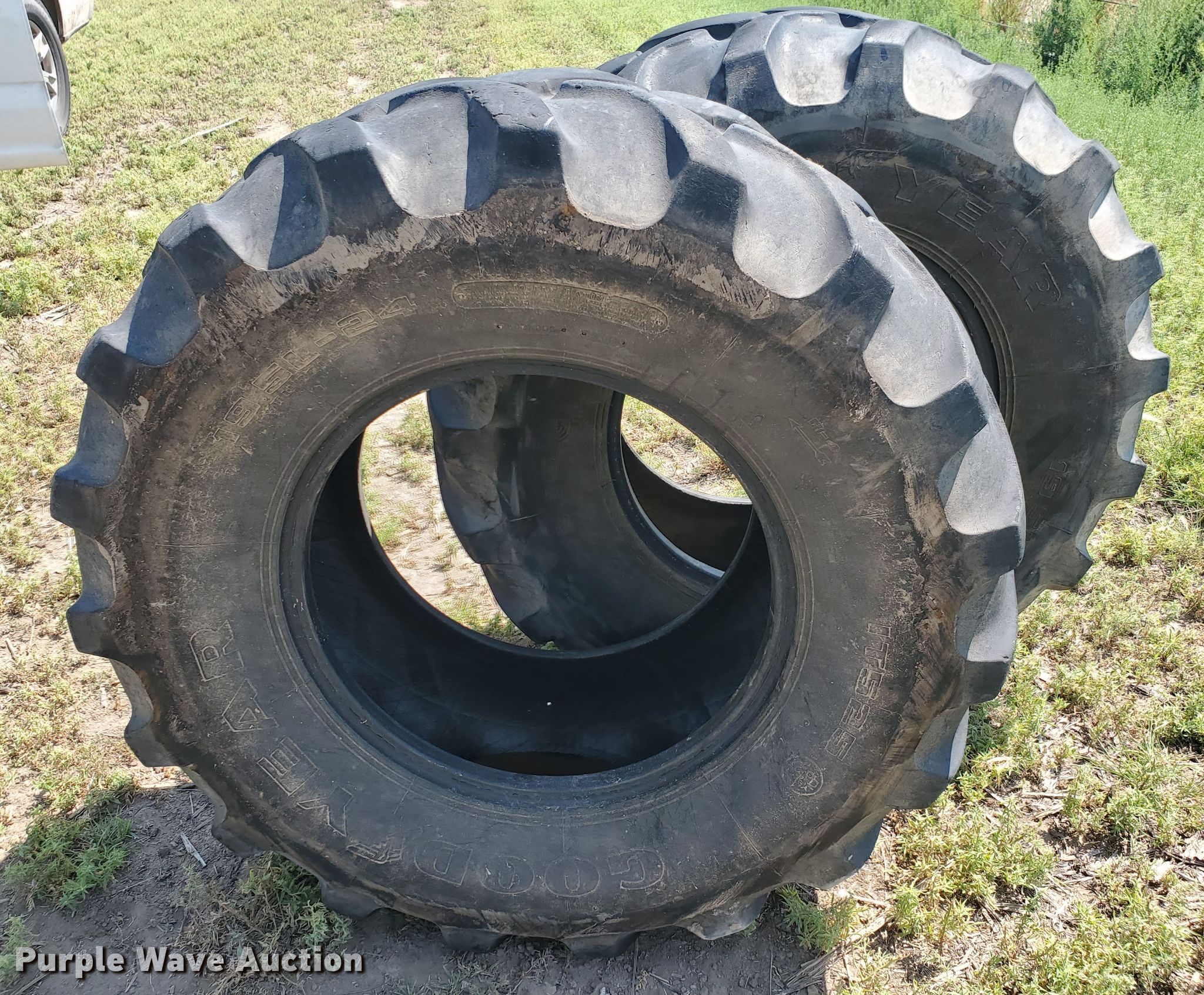 (2) Goodyear 19.5L-24 tires. Smyth Oil and Gas Services. 2398 W. Road 10. Ulysses, KS 67880