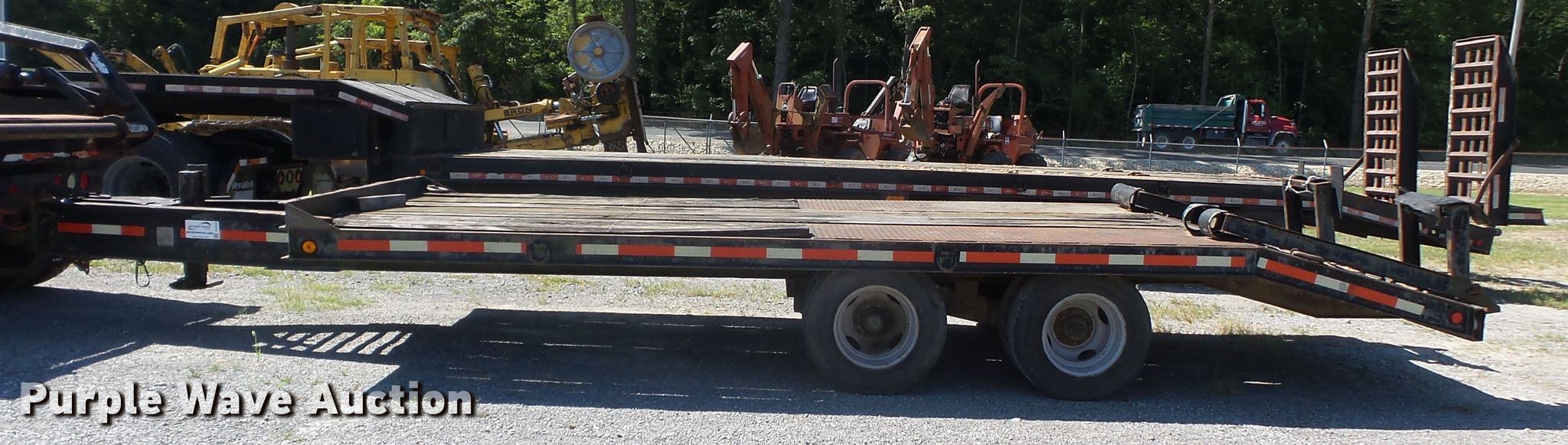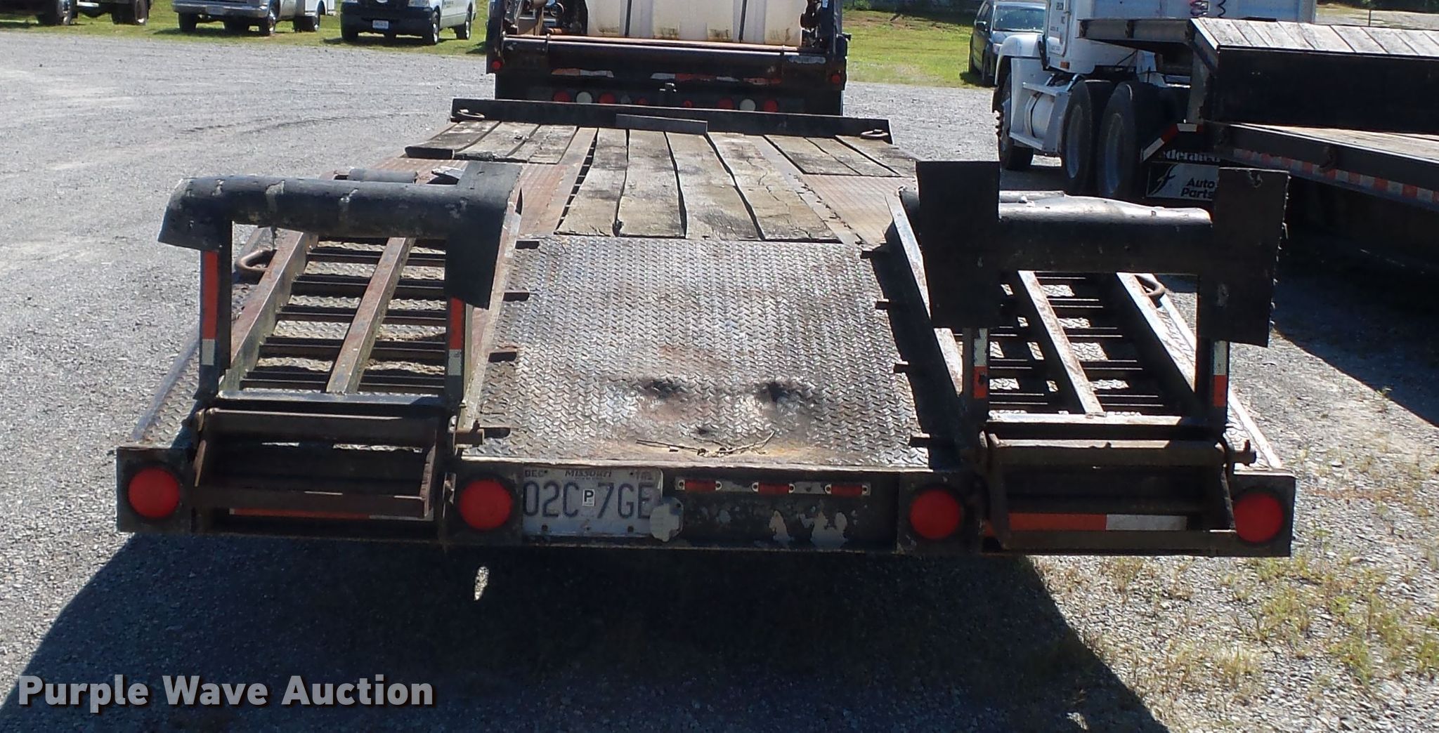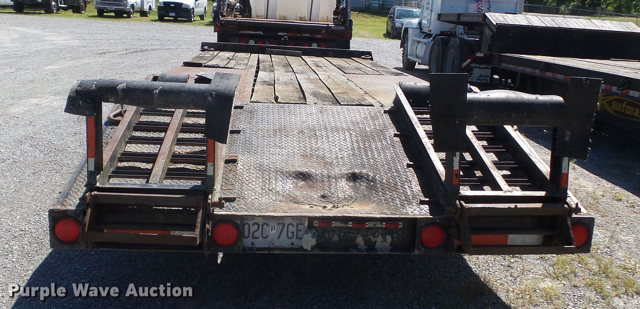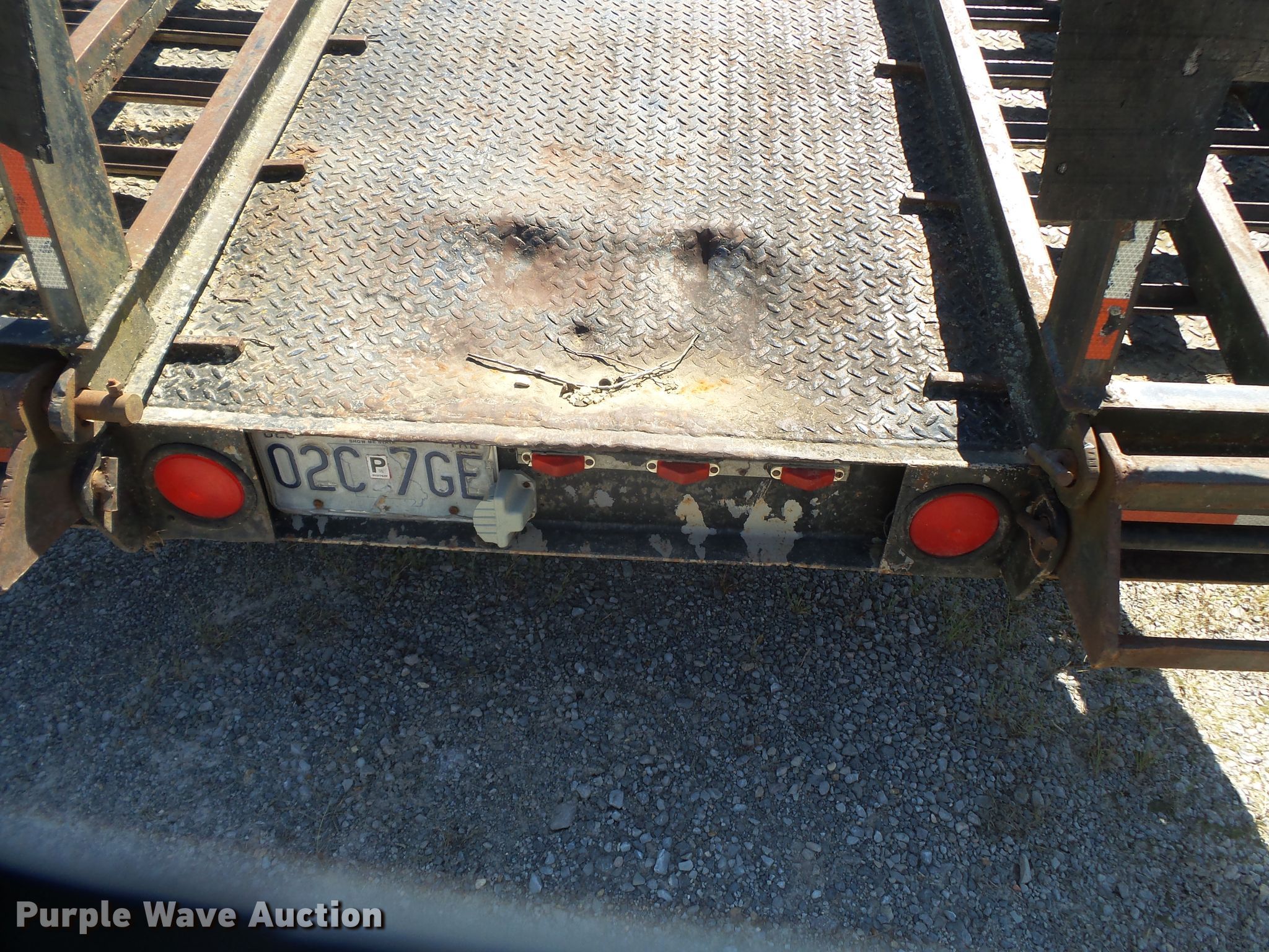 Purple Wave is selling a used Equip. Trailer in Missouri. This item is a 1991 Butler equipment trailer with the following: 26'L x 96"W overall, 16'L x 93"W wood deck, 32" floor height, 5' tail length, 5'L ramps, Single leg landing gear, Spring suspension, Electric brakes, Tandem axle, Steel wheels, 8.75R16.5 tires, GVWR 20,000 lbs, GAWR 18,880 lbs