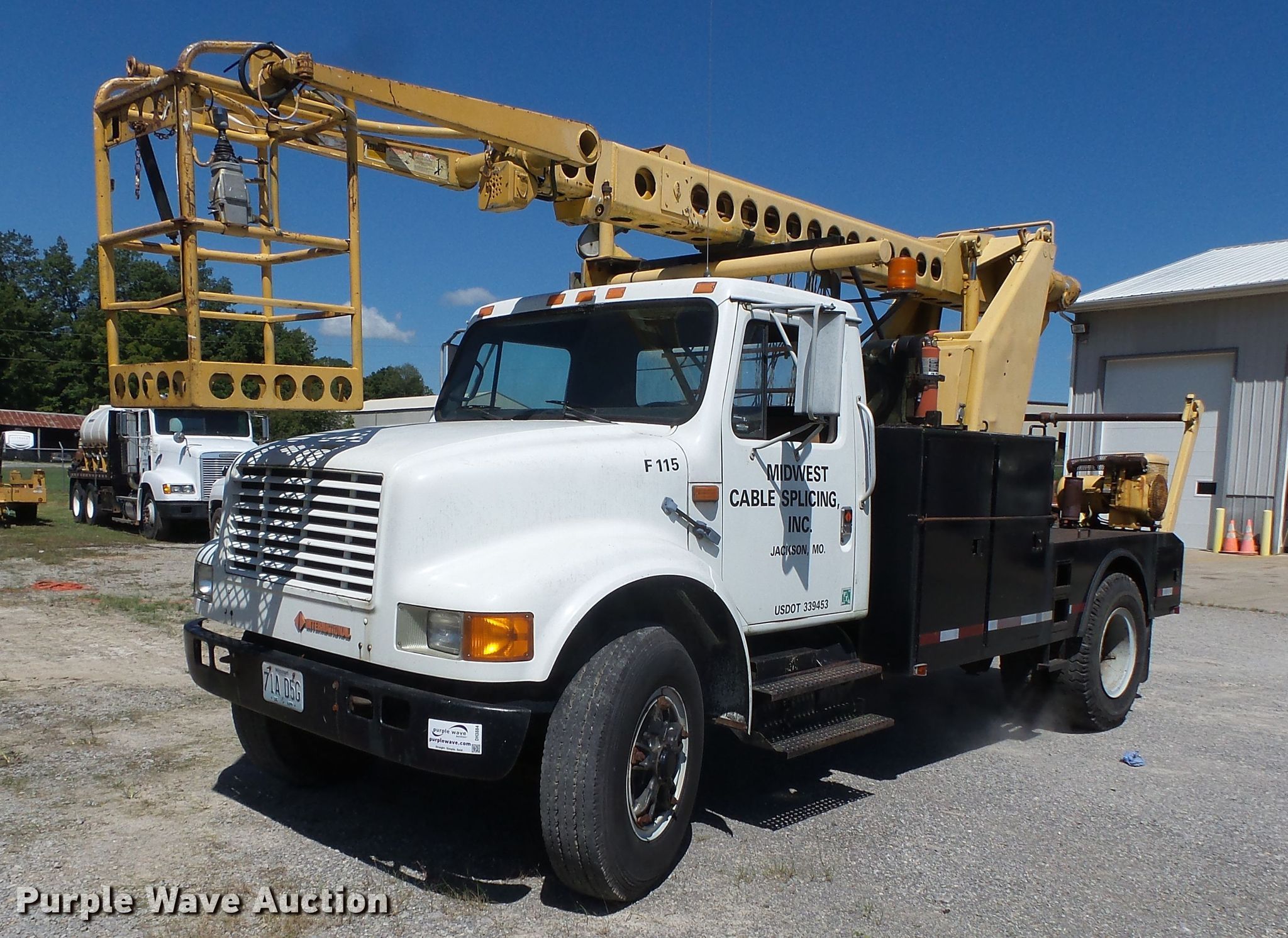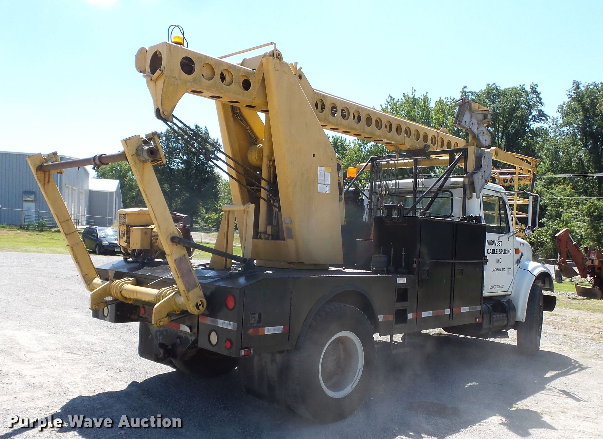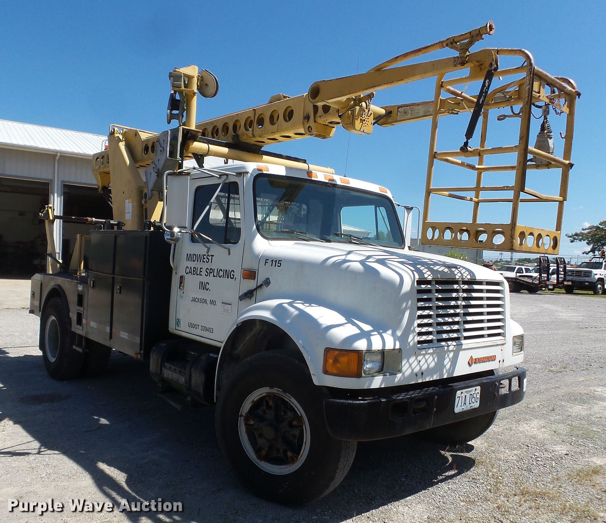 1991 International 4600 bucket truck. 117,662 miles on odometer, Unit #: F115. Engine International DT444, Displacement: 7.3L, Cylinders: 8, Fuel type: Diesel. Transmission Manual, Speed: 5. Chassis Axles: Single, Suspension: Spring, Brakes: Air, Wheelbase: 188". Interior Heat. Operational Utilitye bed Telsta, Length: 12' 3", Engine Onan 4.0CCK, Serial: J81059193, Cylinders: 2, Fuel: Gas, Reel carrier Capacity: 3,500 lbs, Winch, Boom Telsta T40B, Serial: 1340, Maximum lift capacity: 500 lbs, Maximum lift height: 40', Boom type: Telescopic, Man basket, Boom controls Ground, Platform/ basket.. Tires Size: 10.00R20. Missouri title. Title distribution may be delayed up to 14 days from verification of funds. 1HTSAZRN7MH342144. Midwest Cable Splicing. 1828 Co Rd 330. Jackson, MO 63755