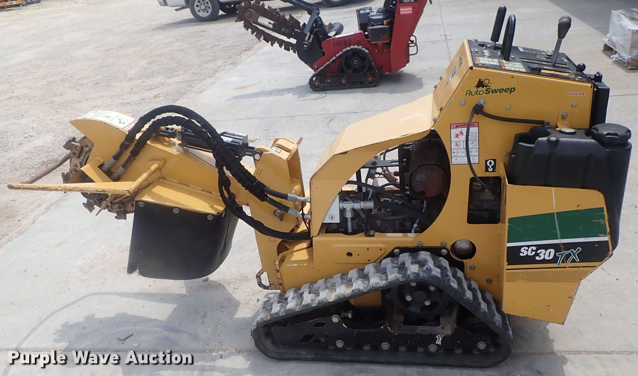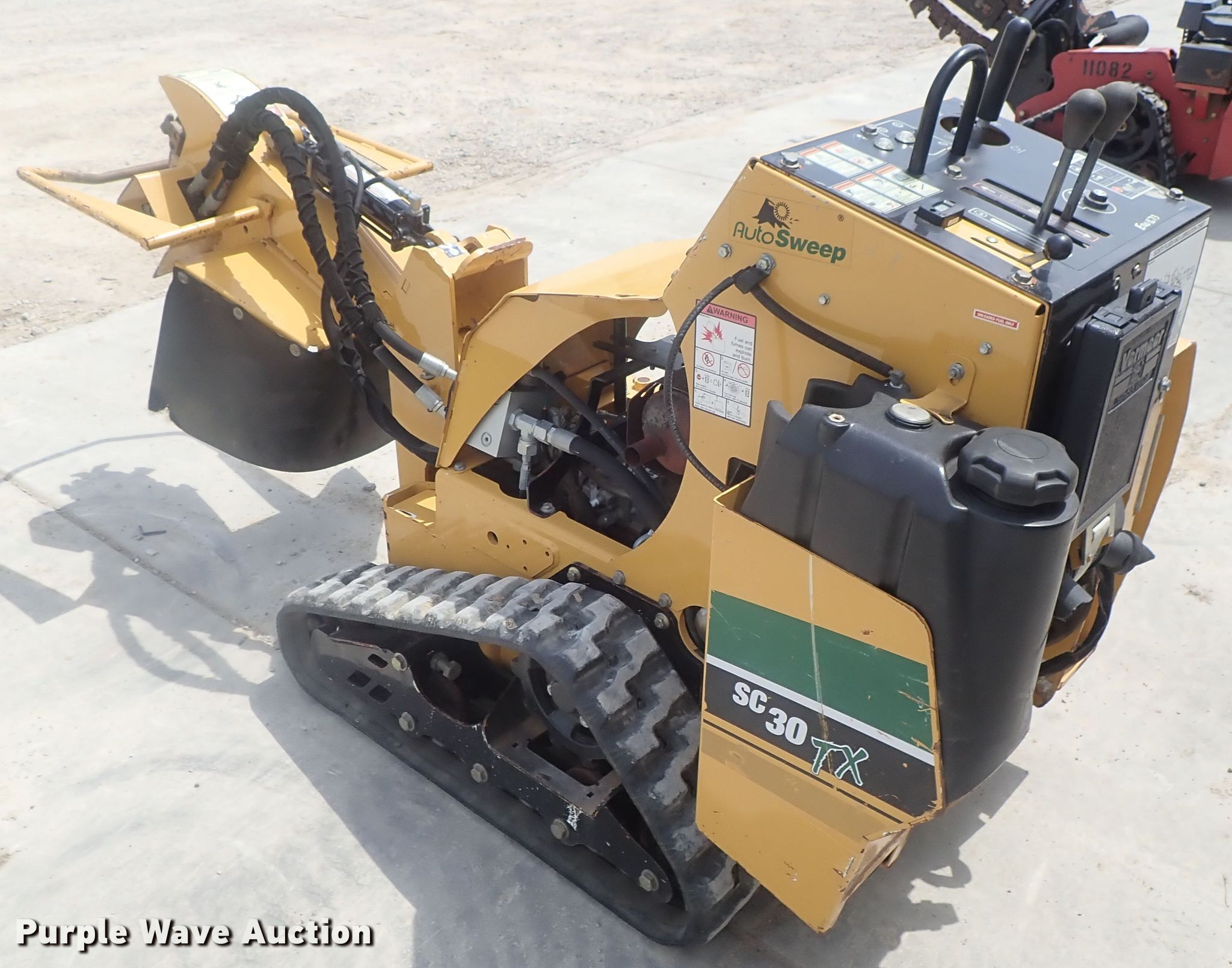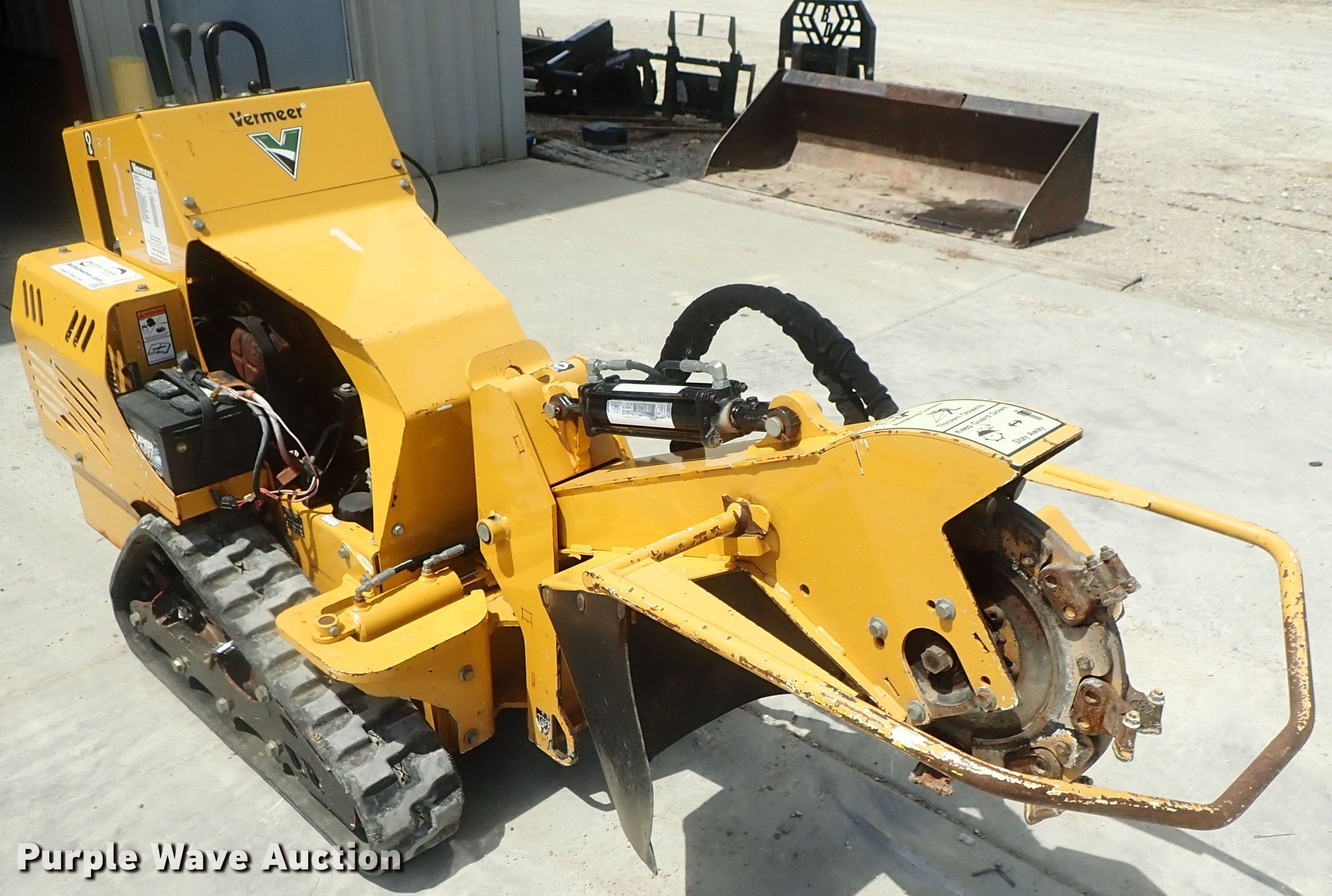 Purple Wave is selling a used Wood Chipper or Stump Grinder in Kansas. This item is a 2015 Vermeer SC30TX stump grinder with the following: 595 hours on meter, Kohler gas engine, Hydrostatic transmission, 16" cutting wheel, Hydraulic angle adjustment, 6.5"W rubber tracks, Serial 1VRC070N7F1001117