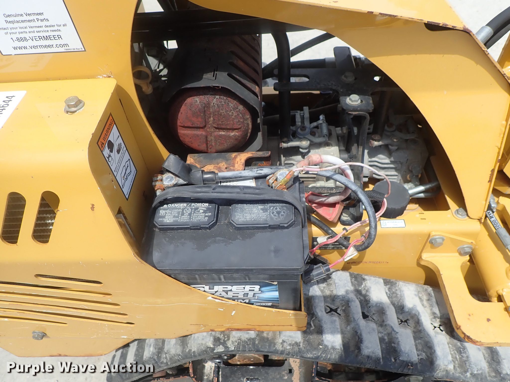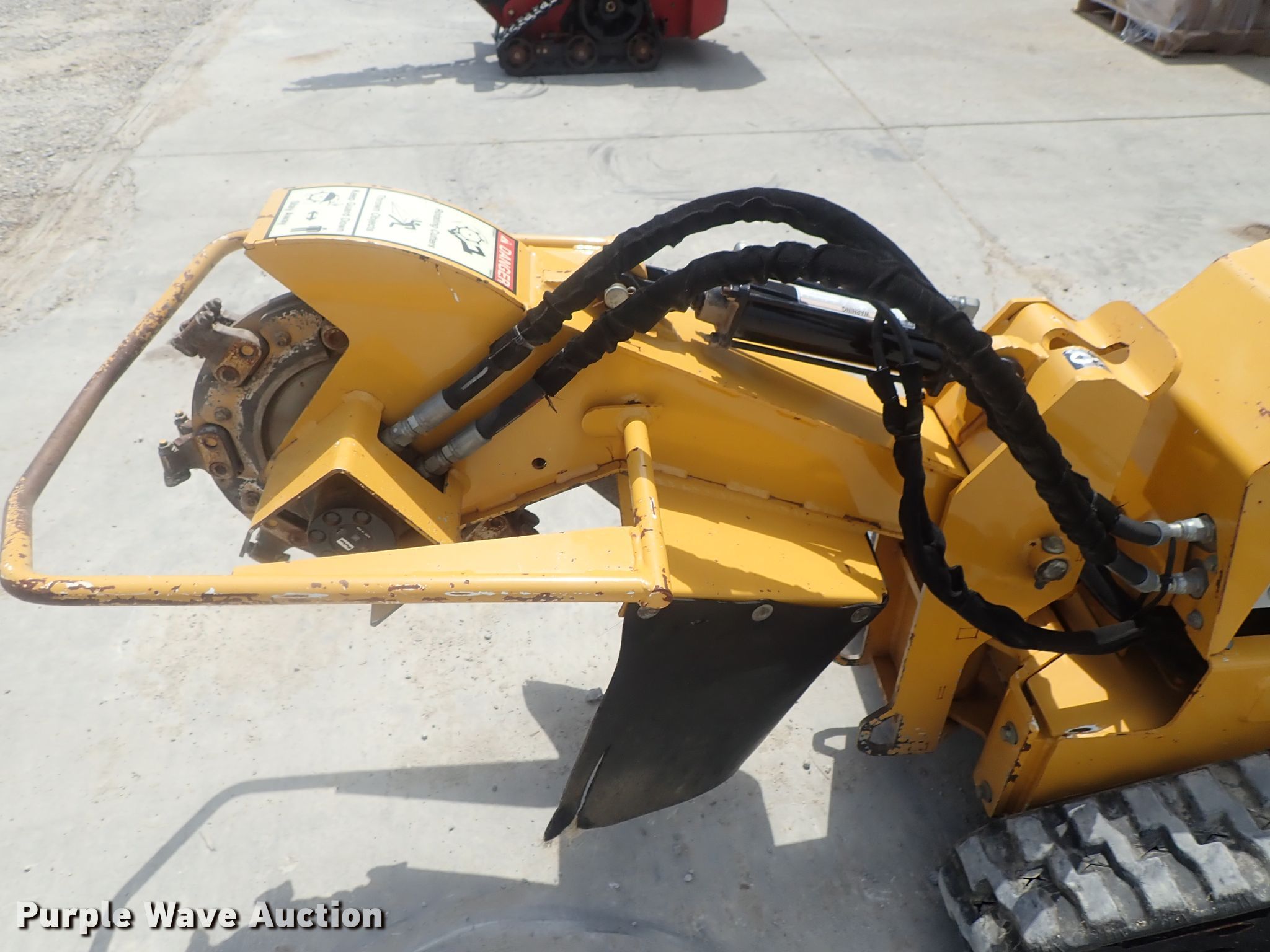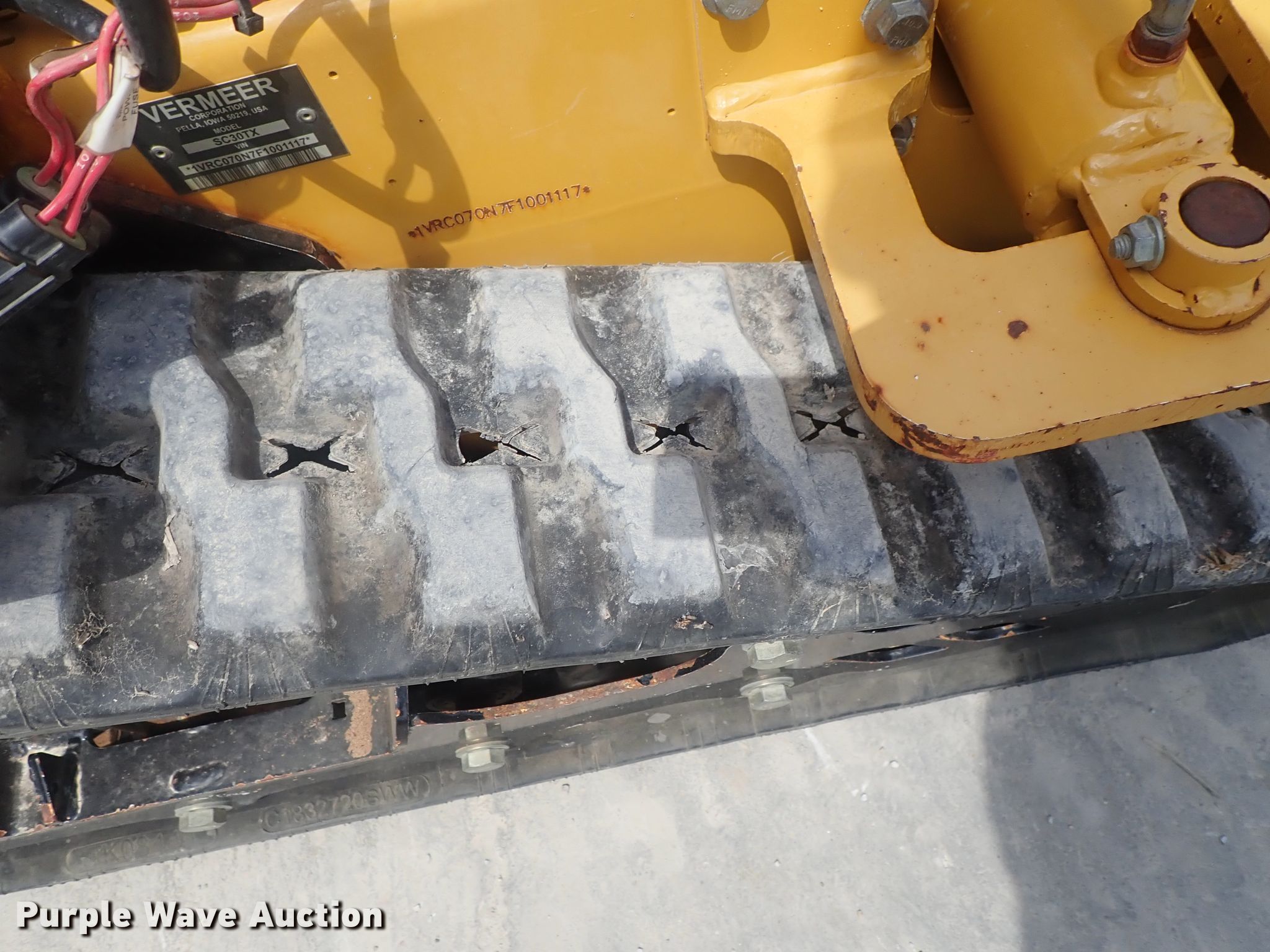 2015 Vermeer SC30TX stump grinder. 595 hours on meter, Kohler gas engine, Hydrostatic transmission, 16" cutting wheel, Hydraulic angle adjustment, 6.5"W rubber tracks, Serial 1VRC070N7F1001117. Vermeer Great Plains. 19812 W Kellogg Dr. Goddard, KS 67052