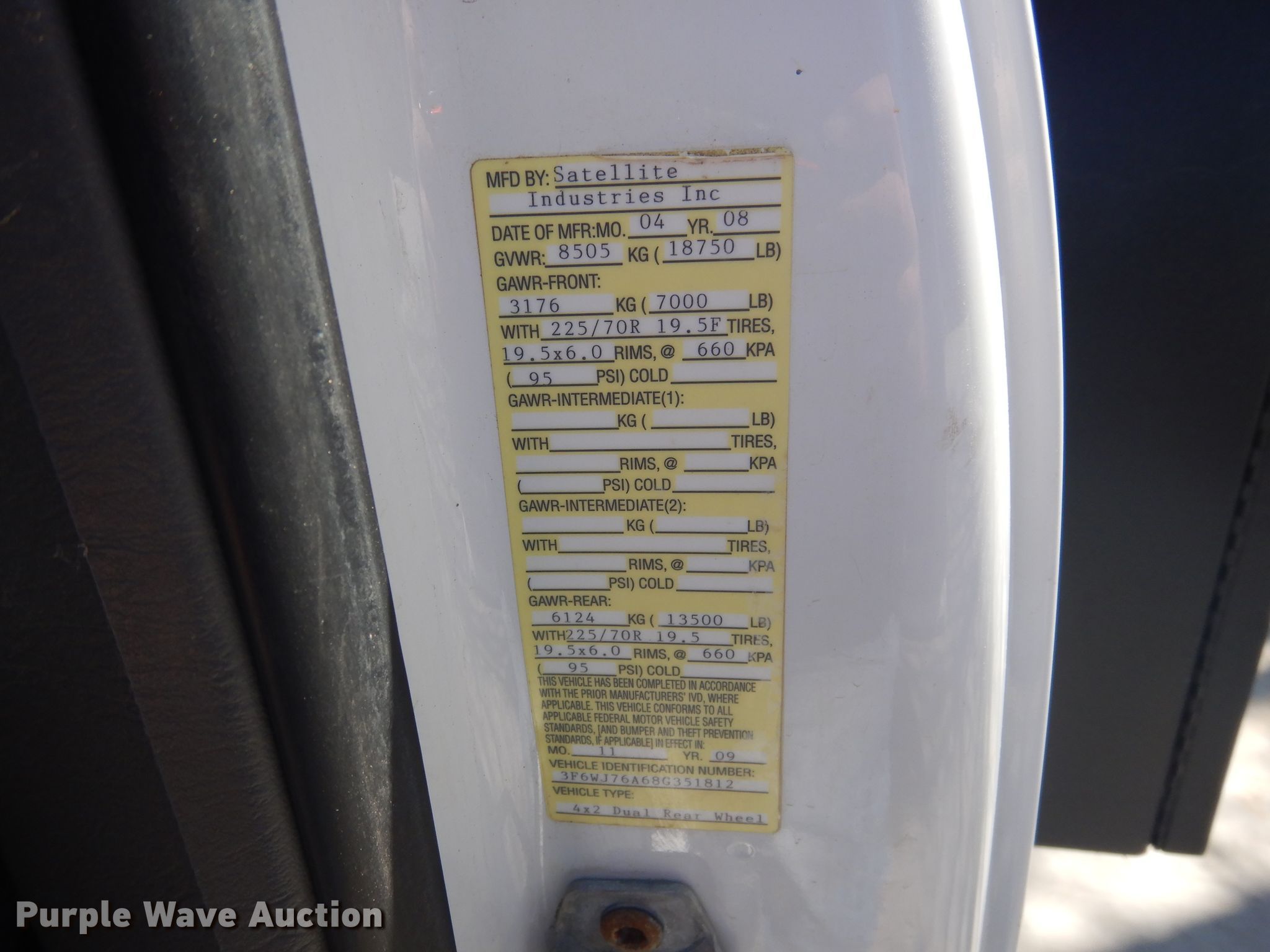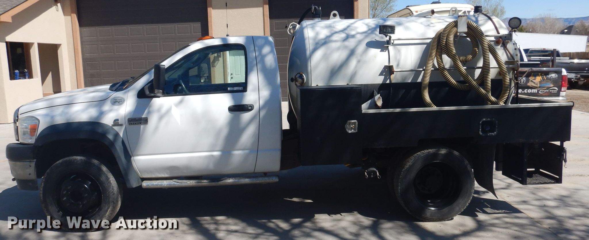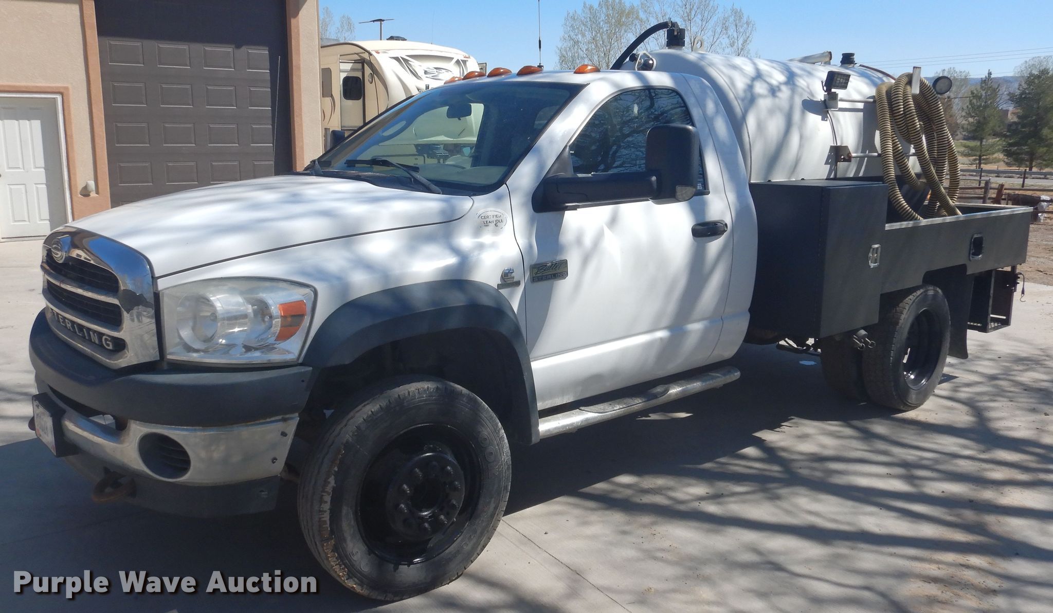 Purple Wave is selling a used Vacuum Truck in Colorado. This item is a 2008 Sterling Bullet vacuum truck with the following: 153,428 miles on odometer, Cummins 6.7L L6 diesel engine, Automatic transmission, Single axle, AC And heat, Cruise, Power windows, Wet kit, 500 gallon vacuum tank, Rear manway, 4" diameter rear outlet, Spring suspension, Hydraulic brakes, 225/70R19.5 tires