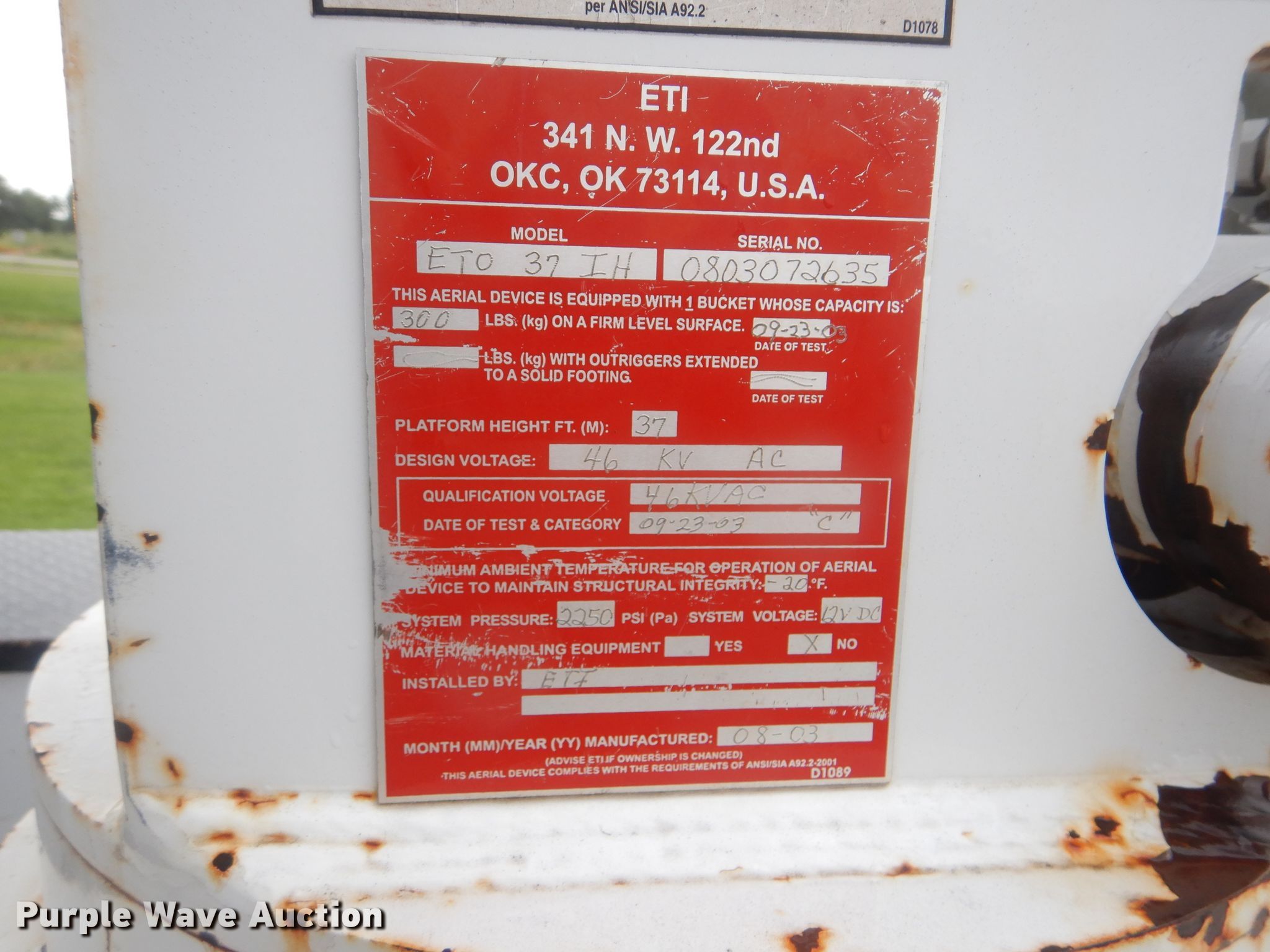 2004 Ford F550 Super Duty bucket truck. 191,238 miles on odometer. Engine Displacement: 6.0L V8 OHV 32V, Cylinders: 8, Fuel type: Diesel, HP: 325. Transmission Automatic. Chassis Four wheel drive, Axles: Single, Suspension: Spring, Brakes: Hydraulic, PTO, GVWR: 17,500 lbs, Wheelbase: 141". Interior AC, Heat. Operational Utility bed ETI, Length: 9', Boom ETI ETO 37 IH, Serial: 0803072635, Boom length: 10', Mast height: 40', Maximum lift capacity: 300 lbs, Boom type: Articulating, Insulated, Telescopic, Man basket, Boom controls Platform/ basket.. Tires Size: 245/70R19.5, Brand: Dynatrac. Oklahoma title. 1FDAF57P14EA24444. Flint Equipment LLC. 8108 E Eseco Rd. Cushing, OK 74023