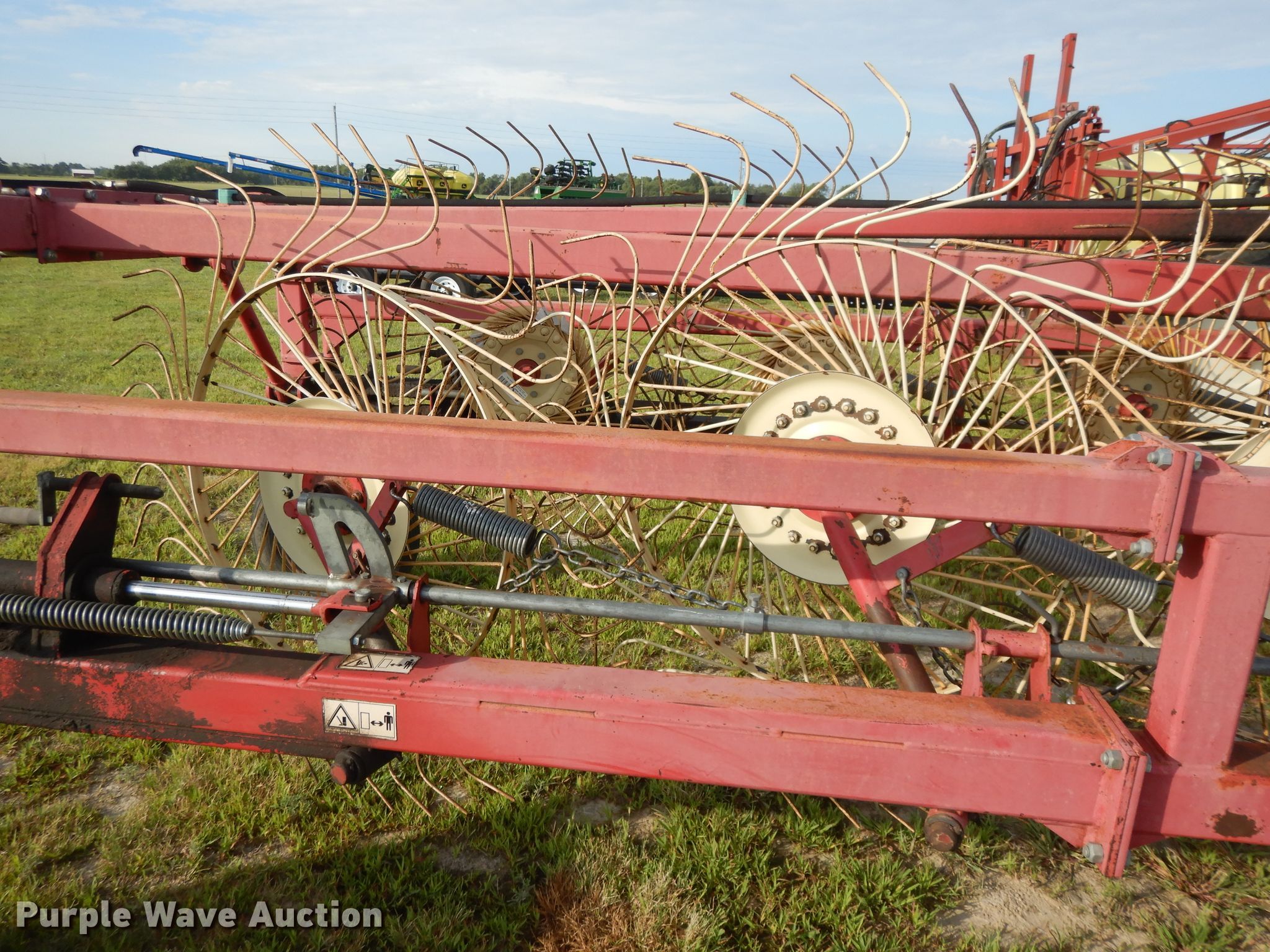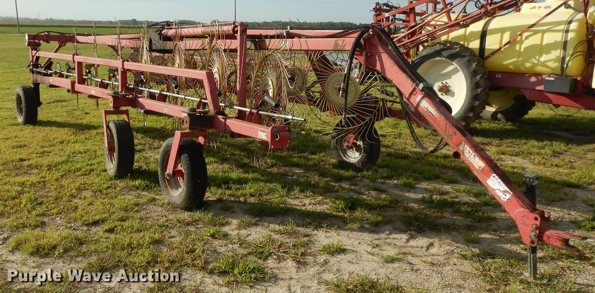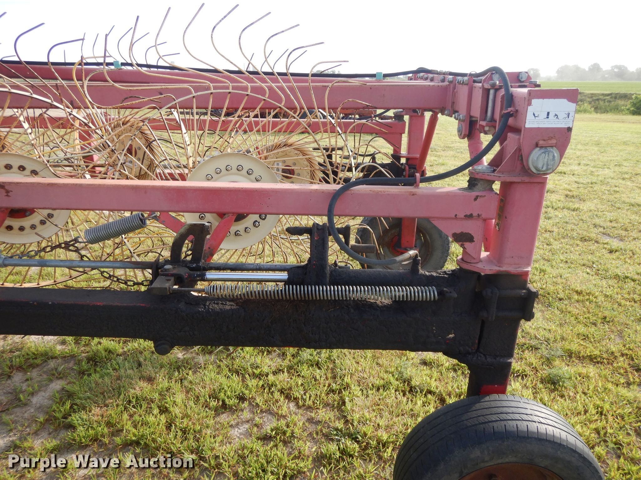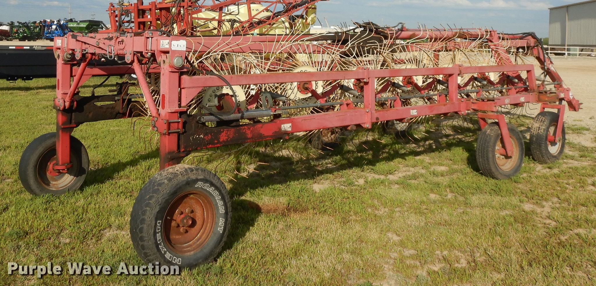 Purple Wave is selling a used Hay Rake in Kansas. This item is a Lely hay rake with the following: (14) 32" diameter wheels, Hydraulic lift and fold, 205/75R15 tires, Serial 101471, Unit# 167887