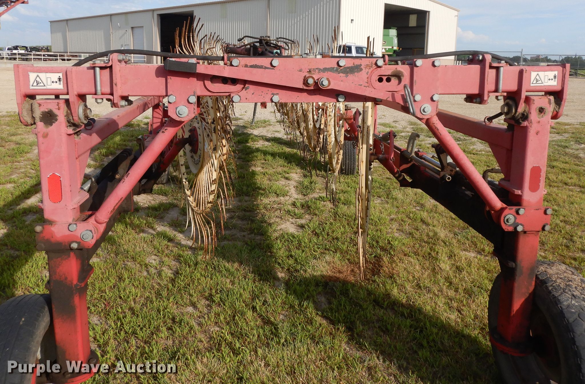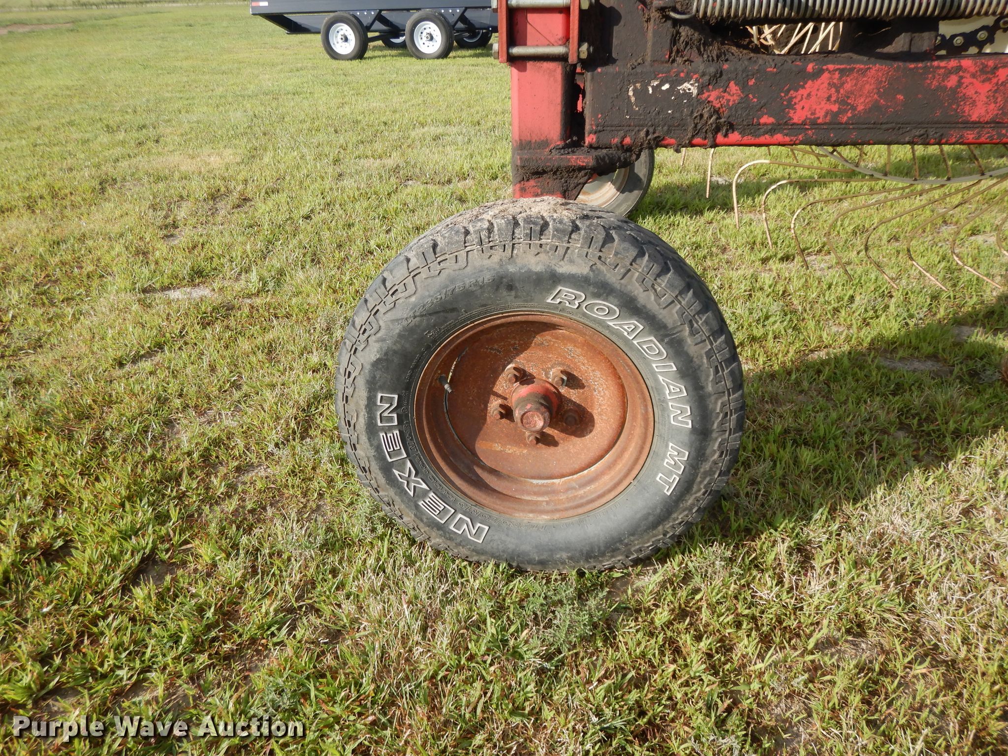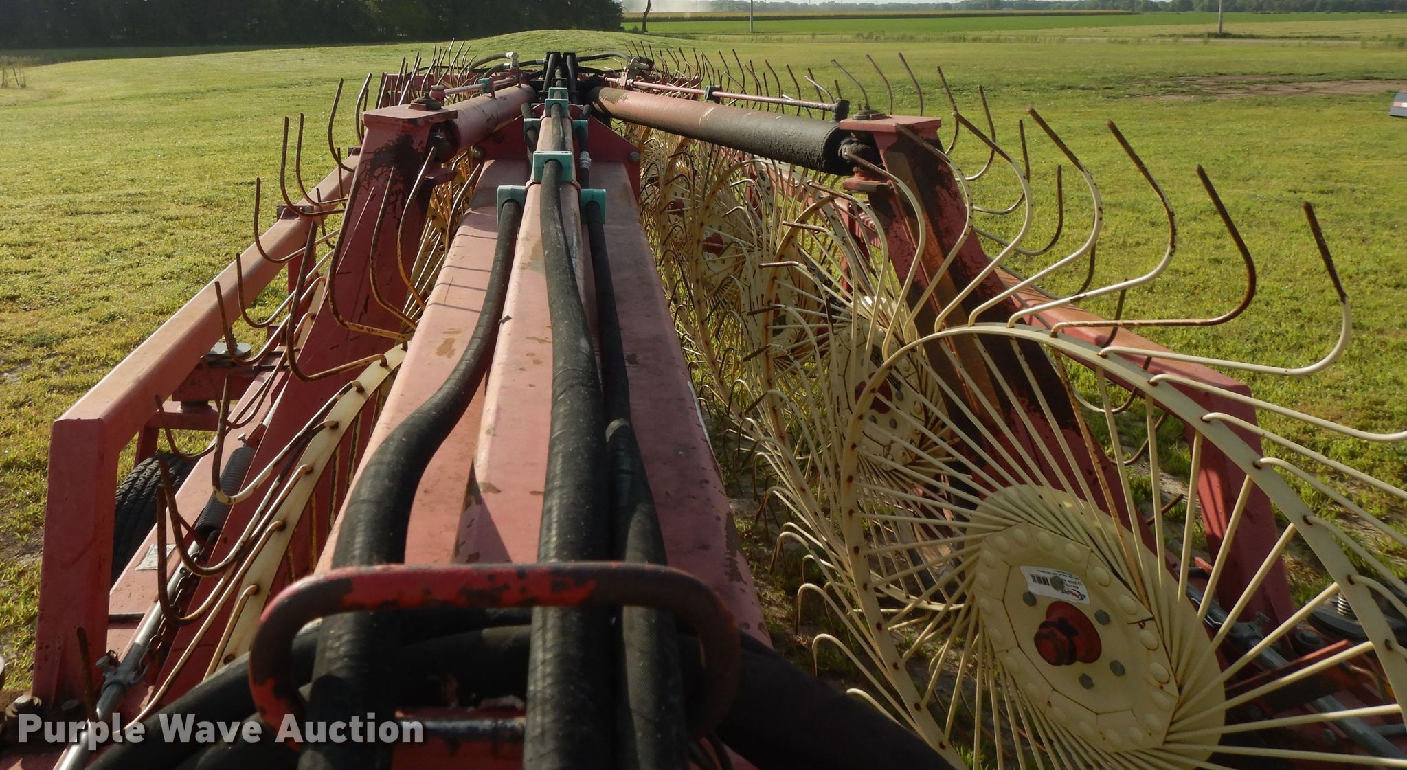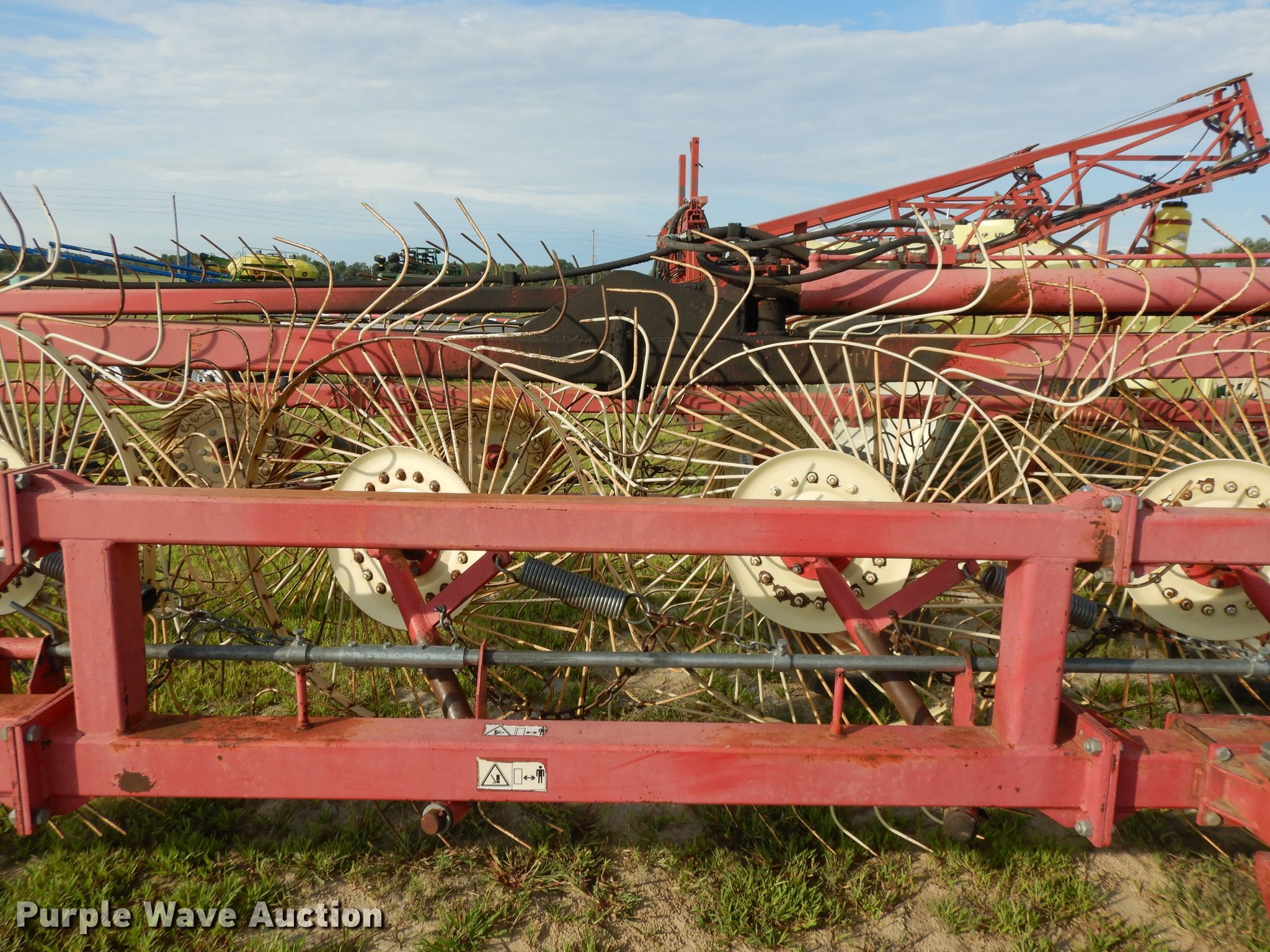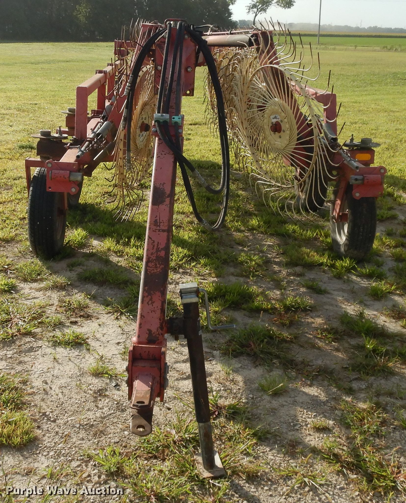 Purple Wave is selling a used Hay Rake in Kansas. This item is a Lely hay rake with the following: (14) 32" diameter wheels, Hydraulic lift and fold, 205/75R15 tires, Serial 101471, Unit# 167887