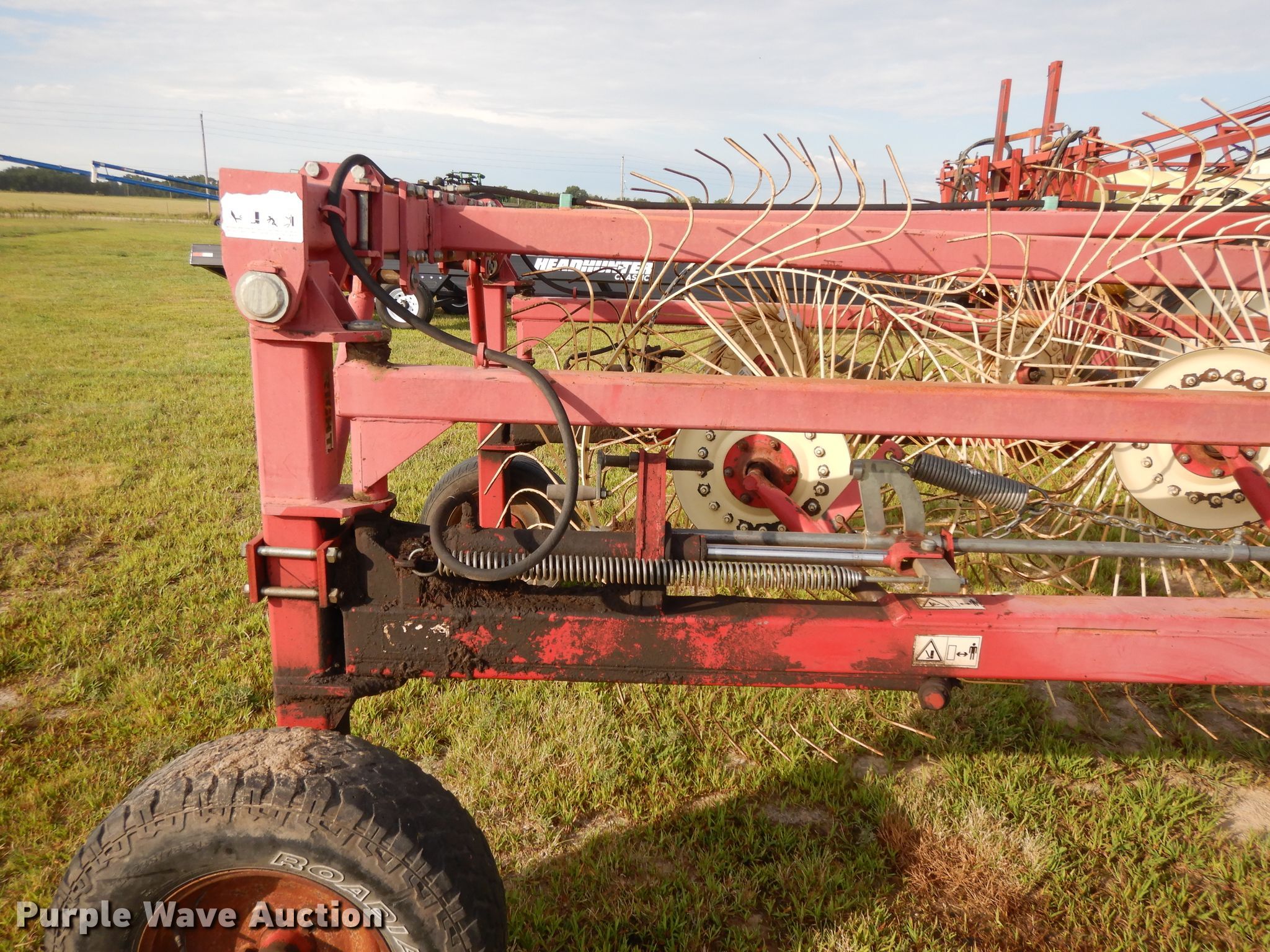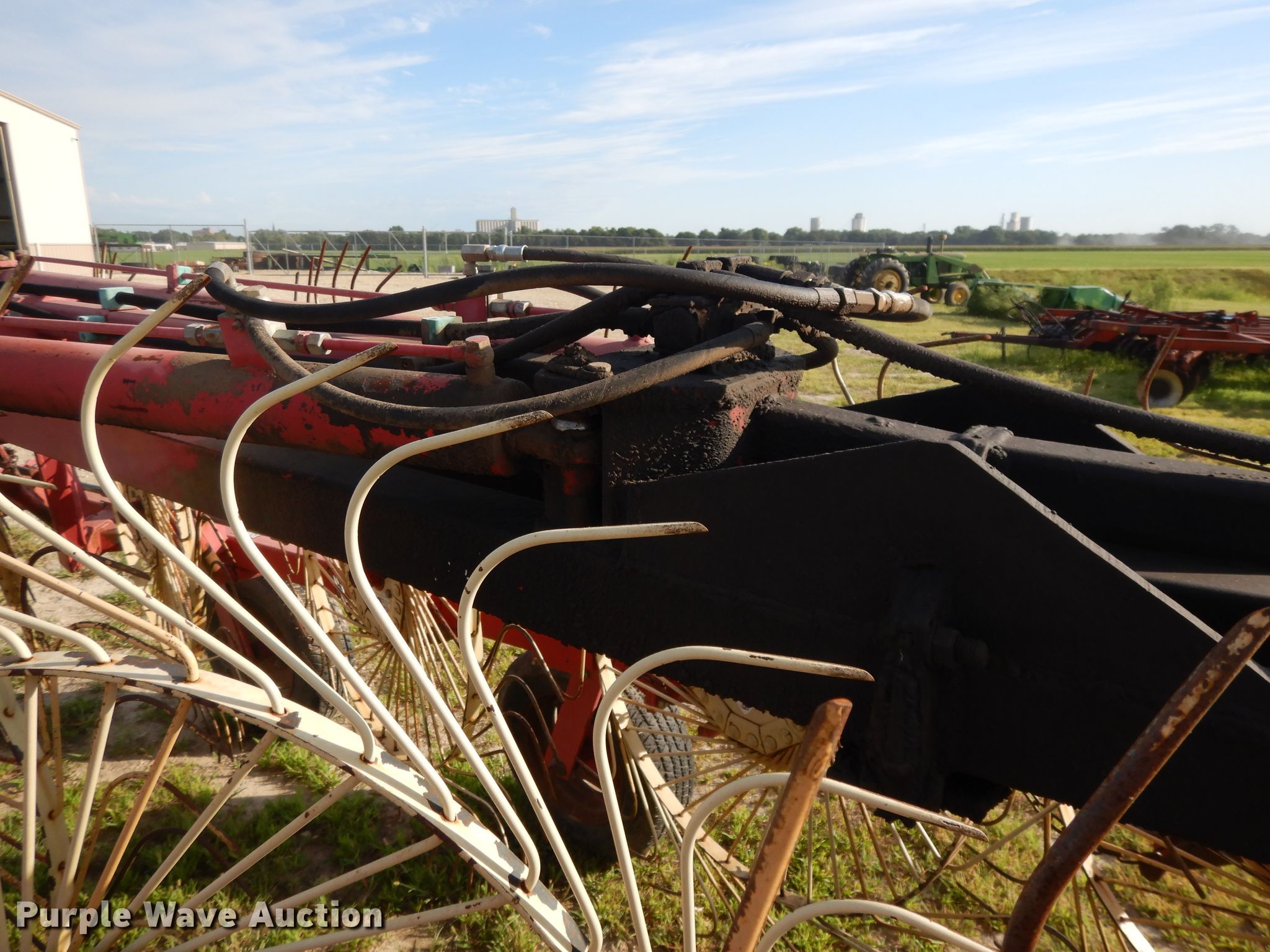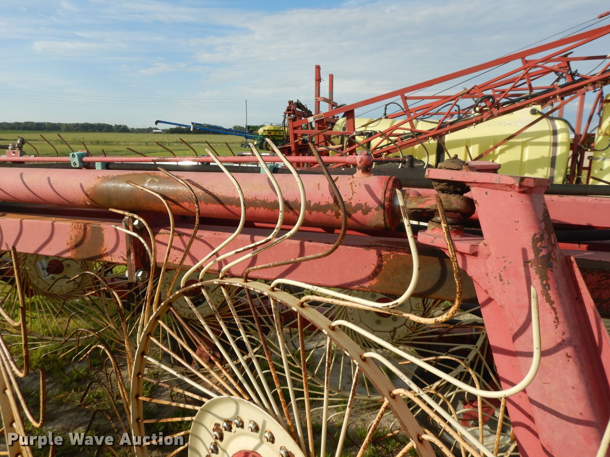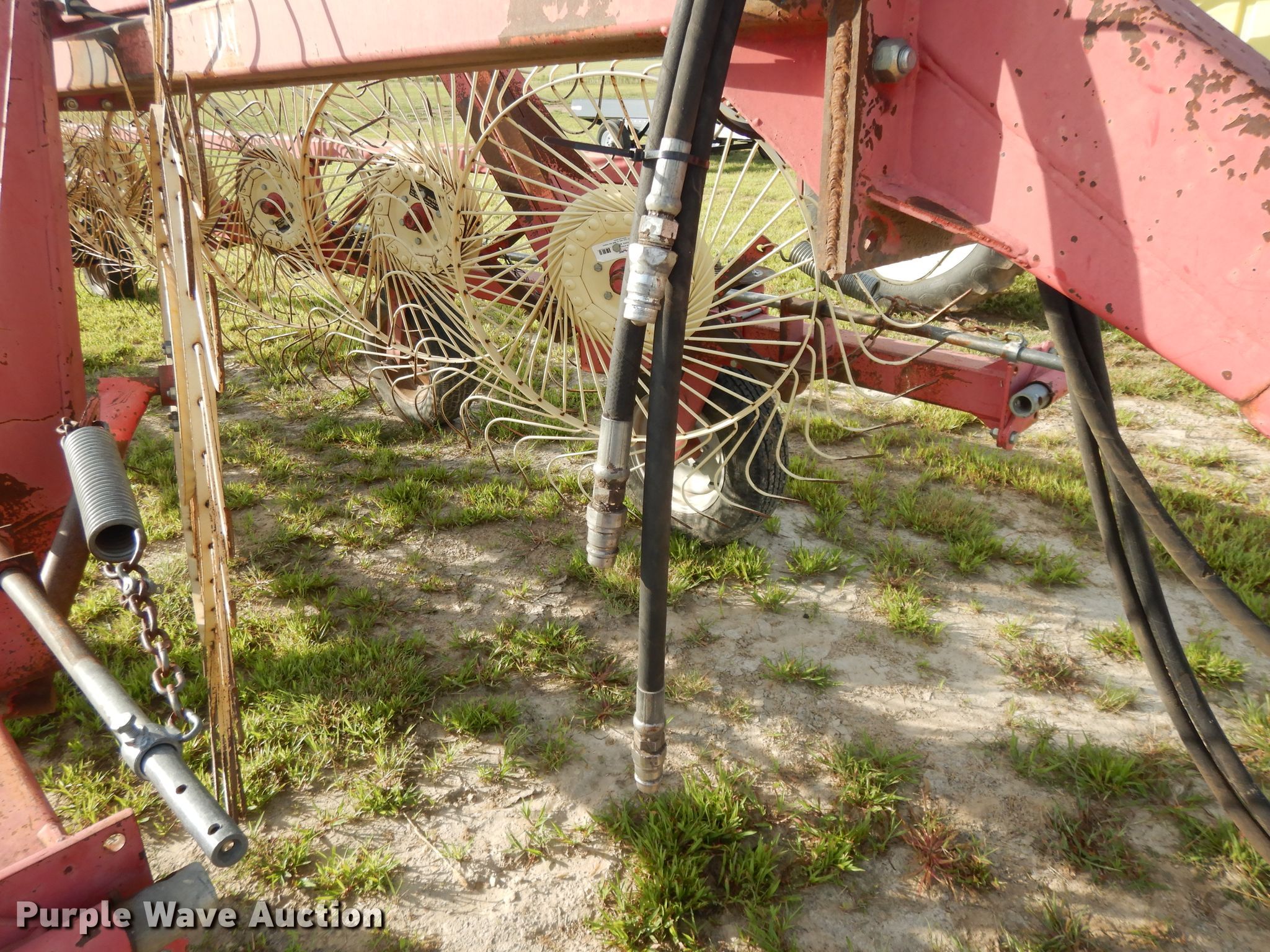 Purple Wave is selling a used Hay Rake in Kansas. This item is a Lely hay rake with the following: (14) 32" diameter wheels, Hydraulic lift and fold, 205/75R15 tires, Serial 101471, Unit# 167887
