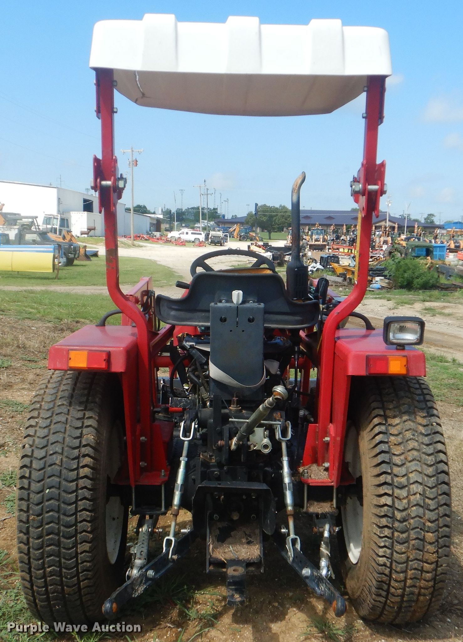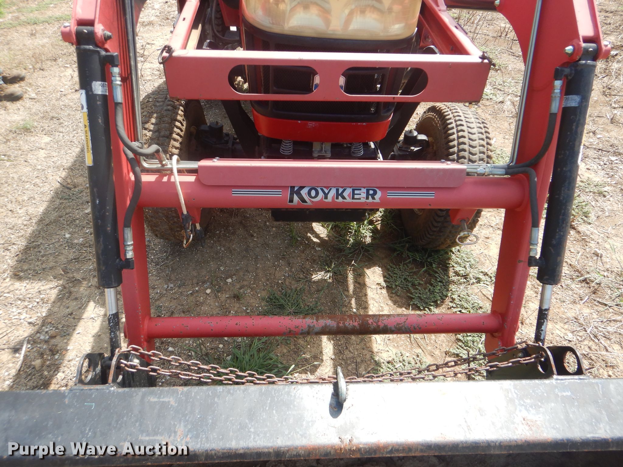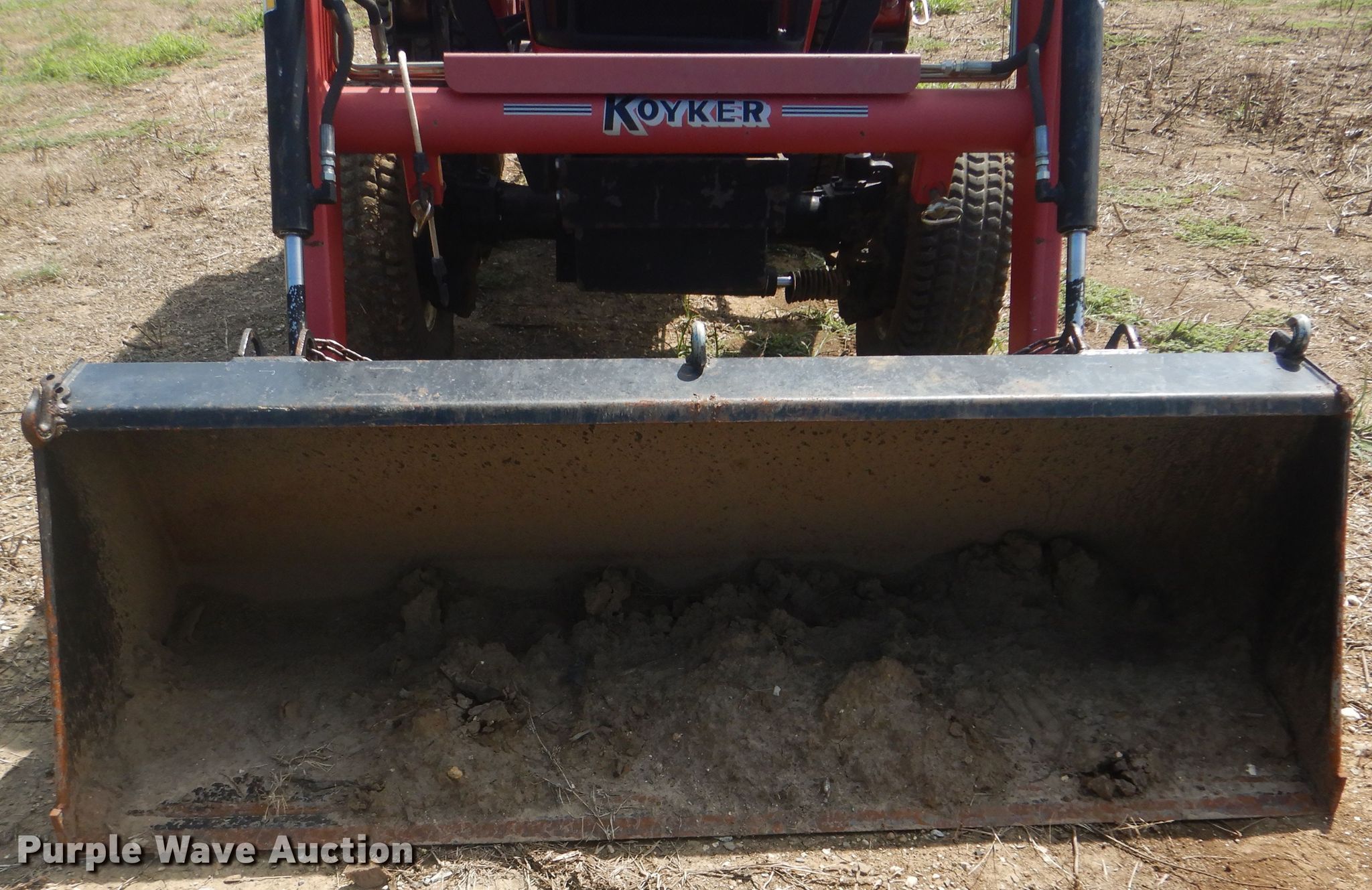 2004 Ag King AK-2840 MFWD tractor. 378 hours on meter, Serial: 21030702. Engine Yangdong Y385T, Serial: Y40910900A, Displacement: 1.5L, Cylinders: 3, Fuel type: Diesel, HP: 24. Transmission Manual, 6F - 2R. Operational PTO: 540, 1000, Three point Top link, Loader Koyker 140, Controls: Joystick, Bucket Width: 60".. Tires Front: 26x7.50-12, Rear: 11.2-20. Hisle Brothers Inc.. 1914 N Broadway Ave. Ada, OK 74820