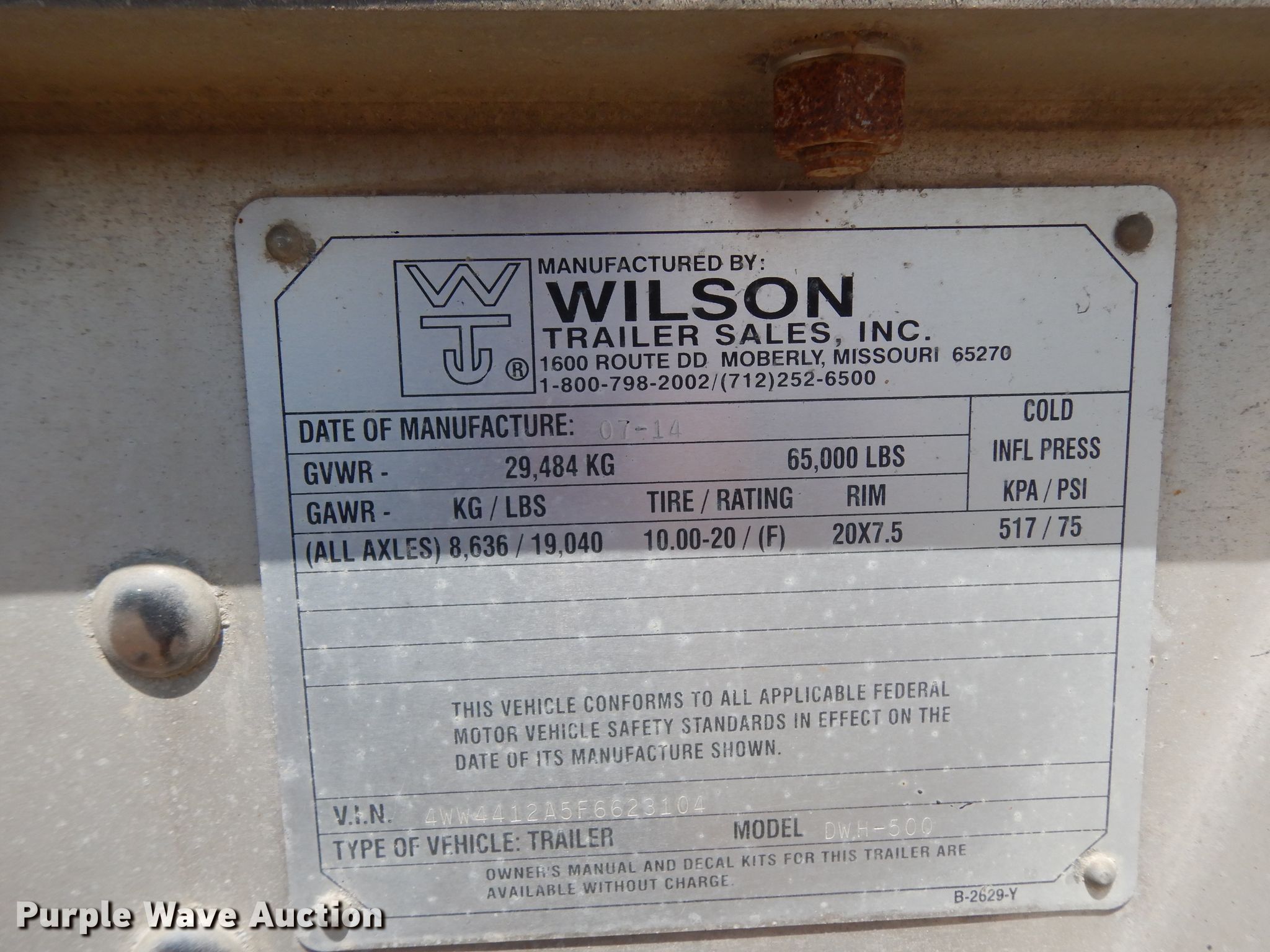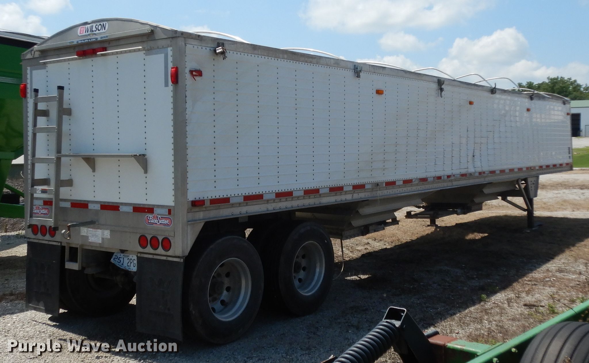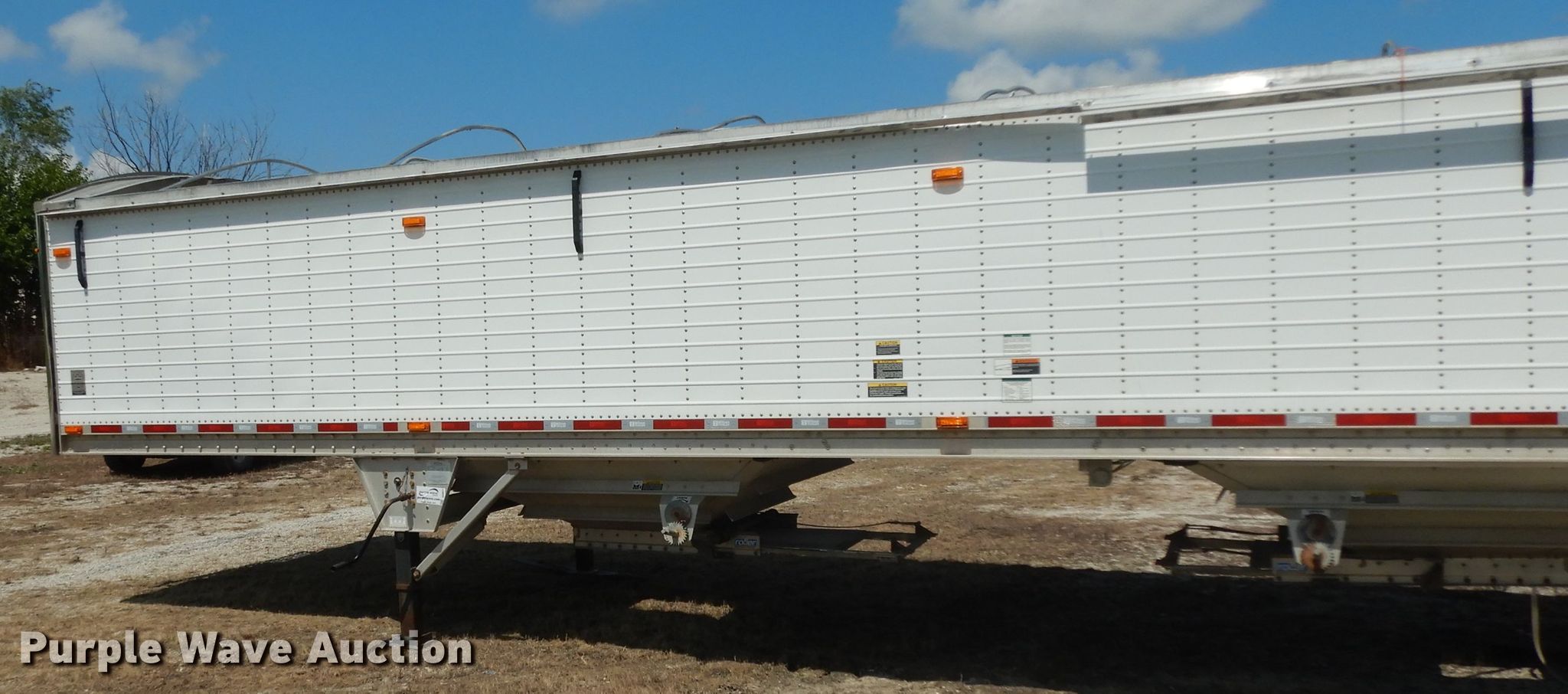 Purple Wave is selling a used Grain or Commodity Trailer in Missouri. This item is a 2015 Wilson DWH-500 double hopper bottom grain trailer with the following: 41'L x 8'W overall, Manual trap gates, Roll tarp, Aluminum construction, Dual leg landing gear, Air suspension, Air brakes, Aluminum wheels, 11R22.5 tires, GVWR 65,000 lbs, Unit has been laid on side, Unknown operating condition