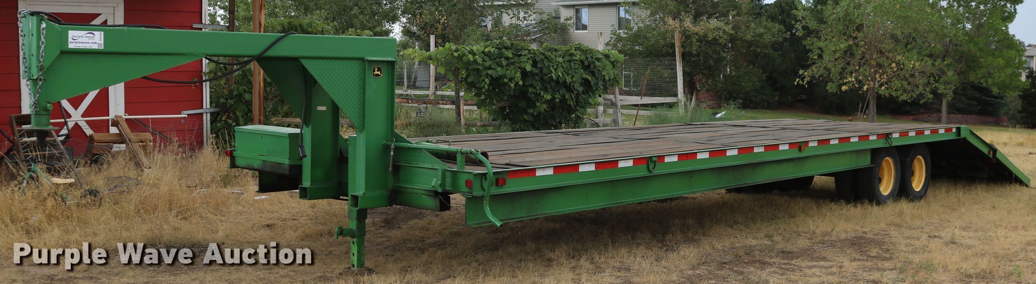 Purple Wave is selling a used Equip. Trailer in Colorado. This item is a 2016 shop built equipment trailer with the following: 47'L x 101"W overall, 39'L deck, 29'L main deck, 6'L Hydratail, 10'L beavertail, Steel deck, Self-contained hydraulics, Remote hydraulic controls, Single leg landing gear, Spring suspension, Electric brakes, Tandem axle, Steel wheels, 235/80R16 tires, GVWR 25,000 lbs, GAWR 12,500 lbs