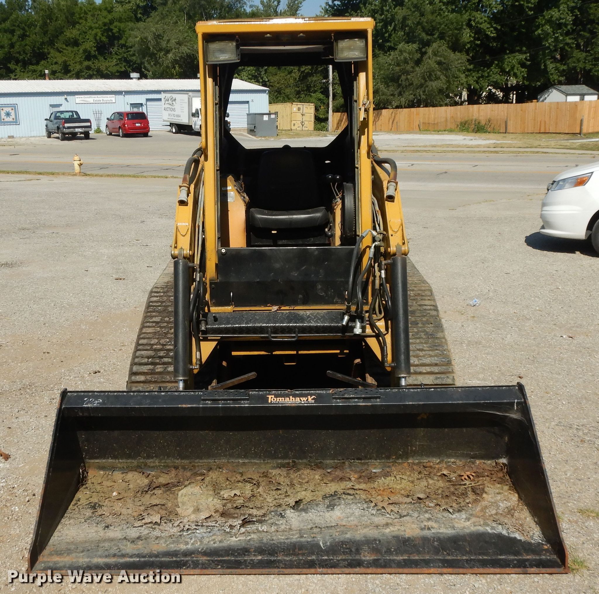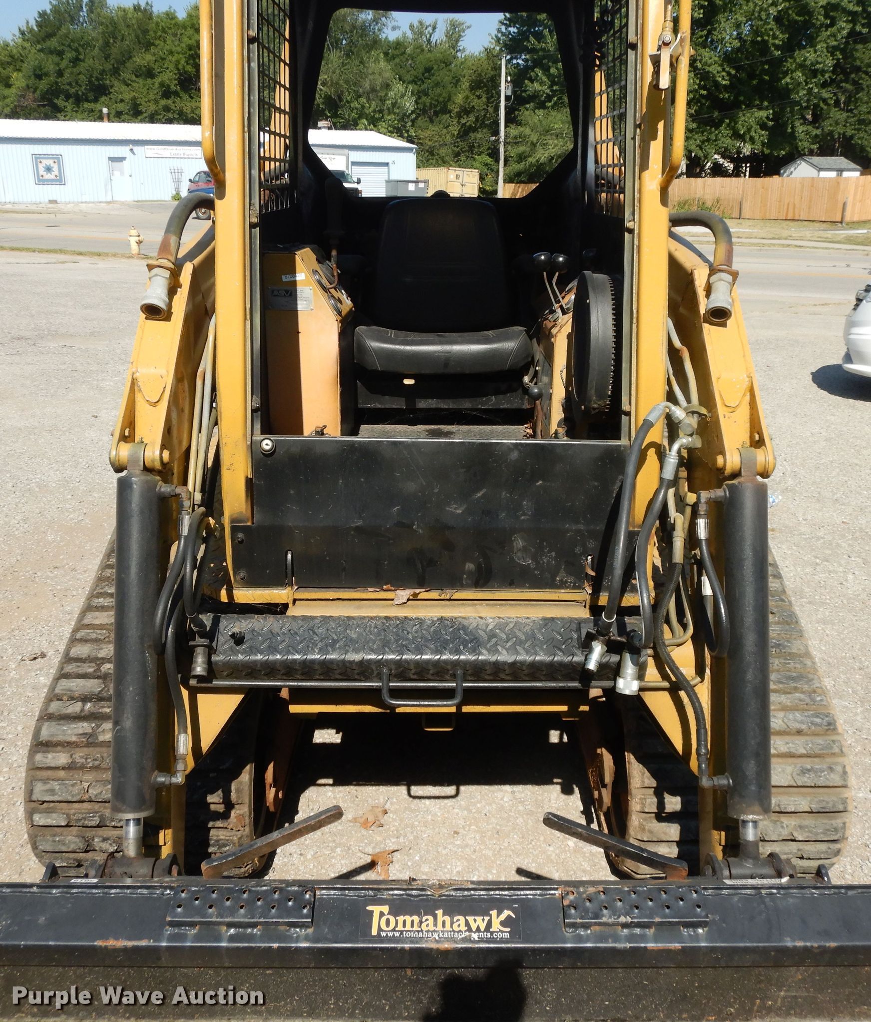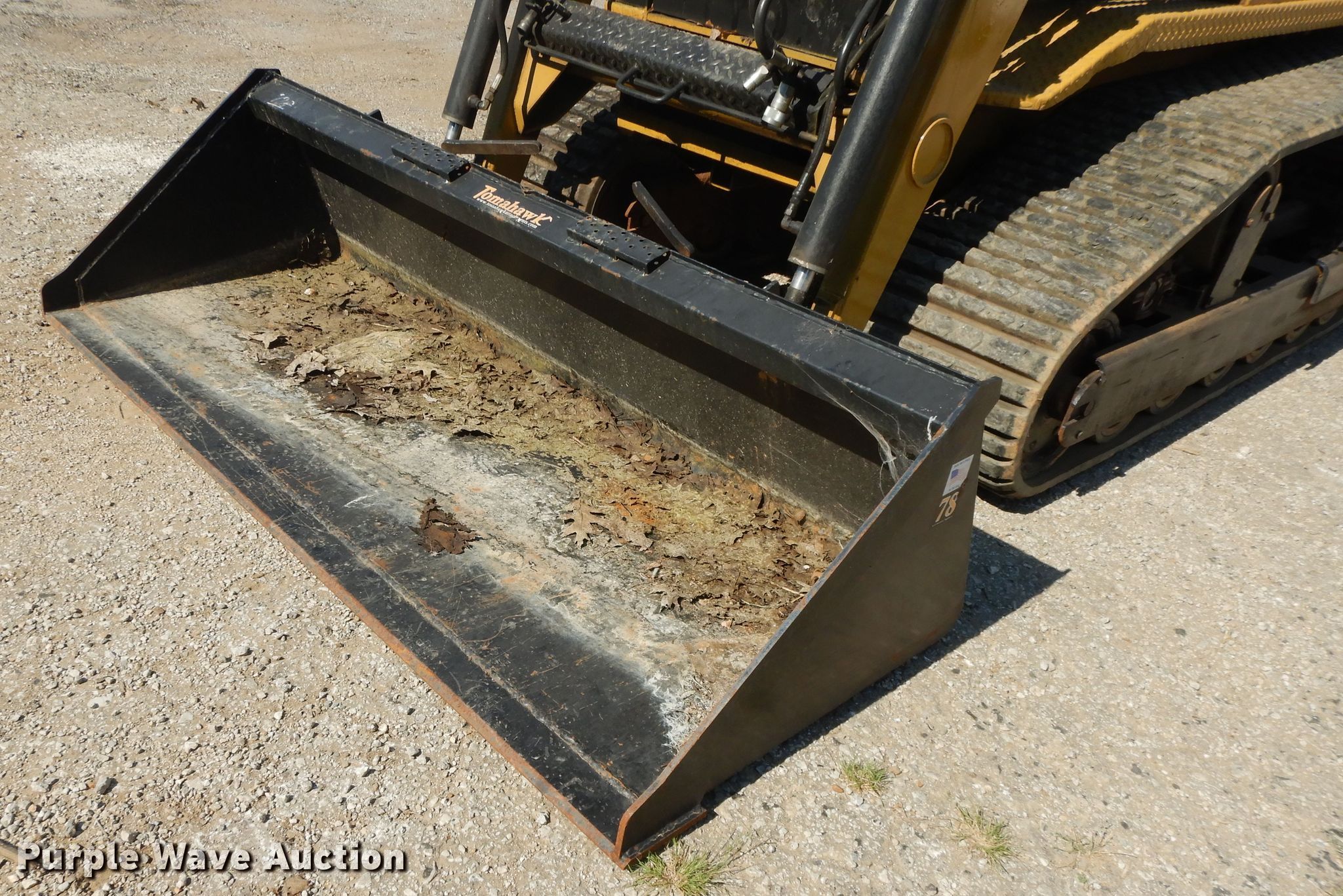 ASV 2810 tracked skid steer loader. 683 hours on meter, Serial: AMF00466. Engine Cylinders: 4, Fuel type: Diesel. Transmission Hydrostatic. Operators station OROPS, Bucket control: Hand. Operational Auxiliary hydraulics, Quick coupler: Manual, Bucket Make: Tomahawk, Width: 78", Cutting edge: Weld-on. Tracks Width: 18". RJJM Corporation. 509 E Kansas City Rd. Olathe, KS 66061