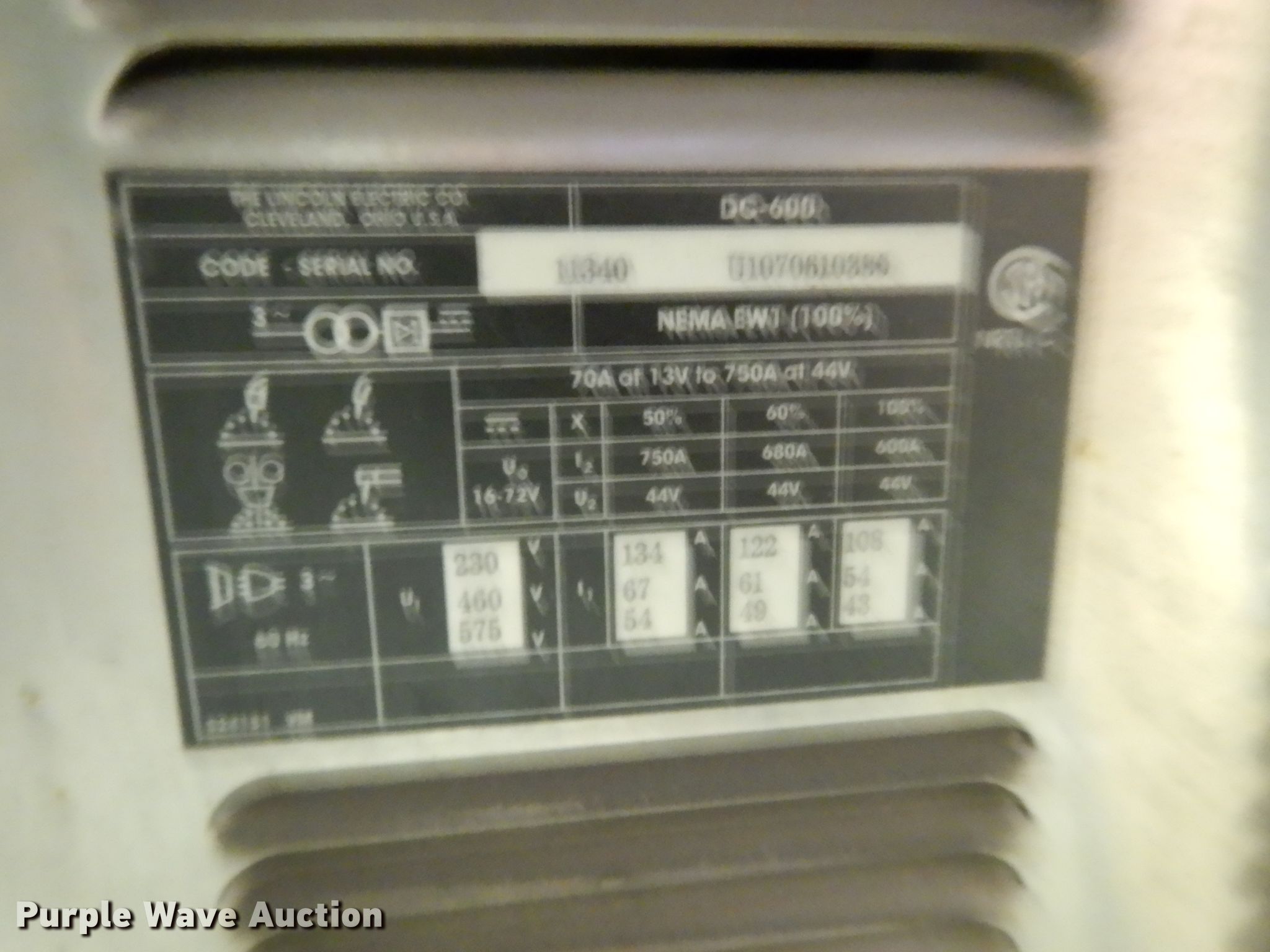 Purple Wave is selling a used Welder (Manual) in Kansas. This item is a Red-d-arc DC600 welder with the following: 42/115V auxiliary power, Serial U10706110386