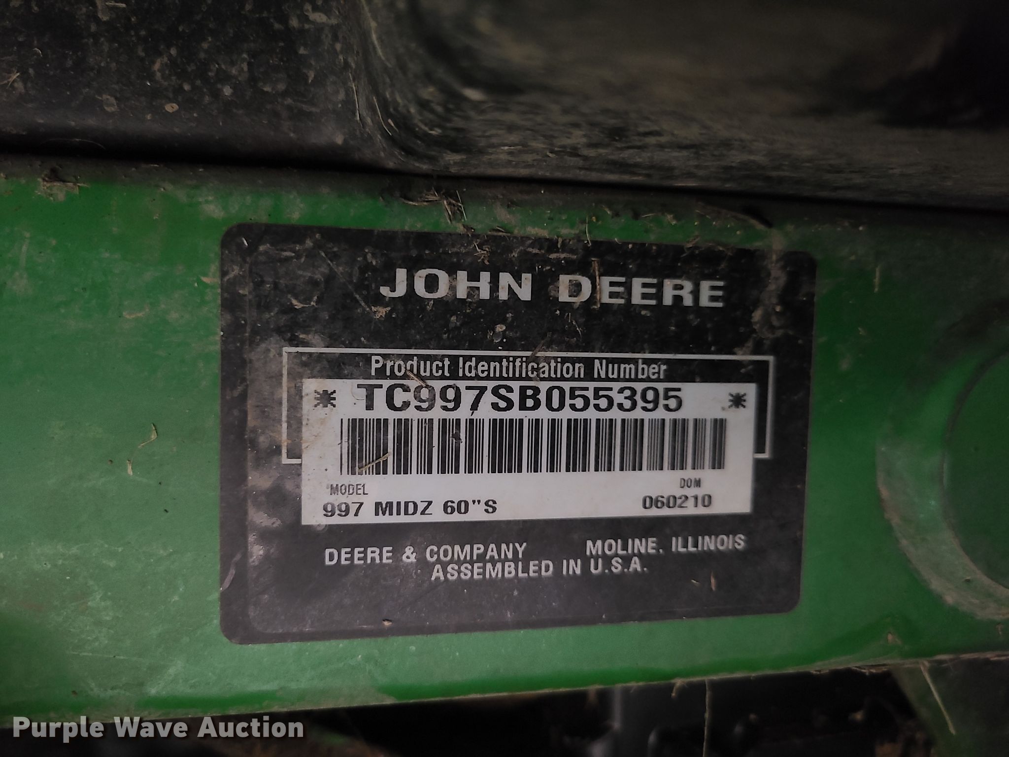 Purple Wave is selling a used Commercial Turf Mower in Missouri. This item is a John Deere 997 ZTR lawn mower with the following: 1,070 hours on meter, 60" cut, Three cylinder diesel engine, Hydrostatic transmission, 26x12x12 rear tires, Serial TC997SB055395