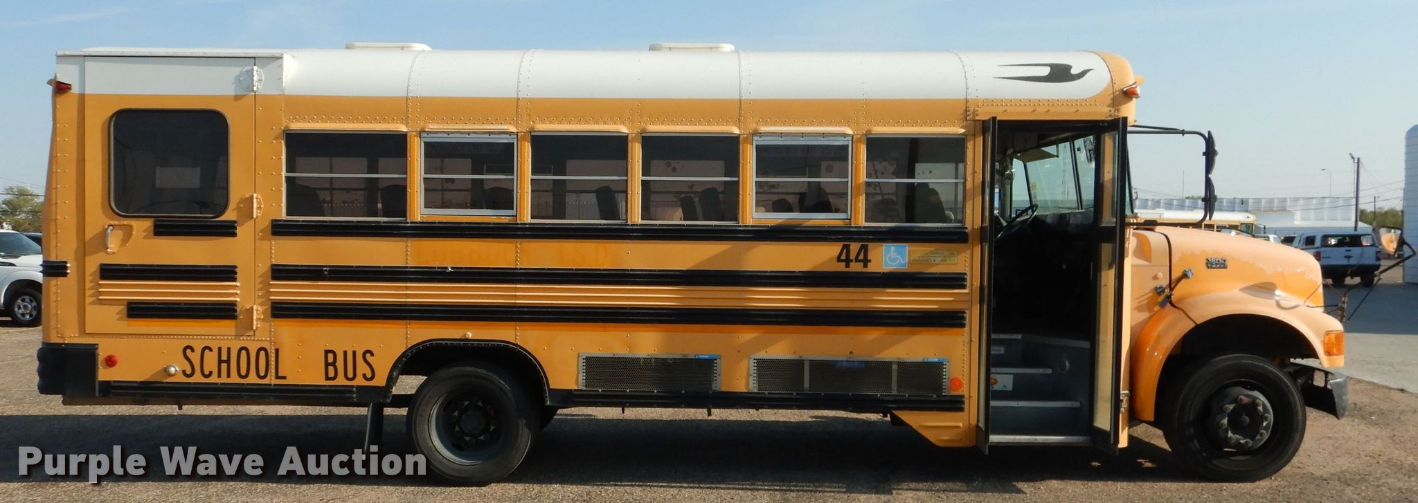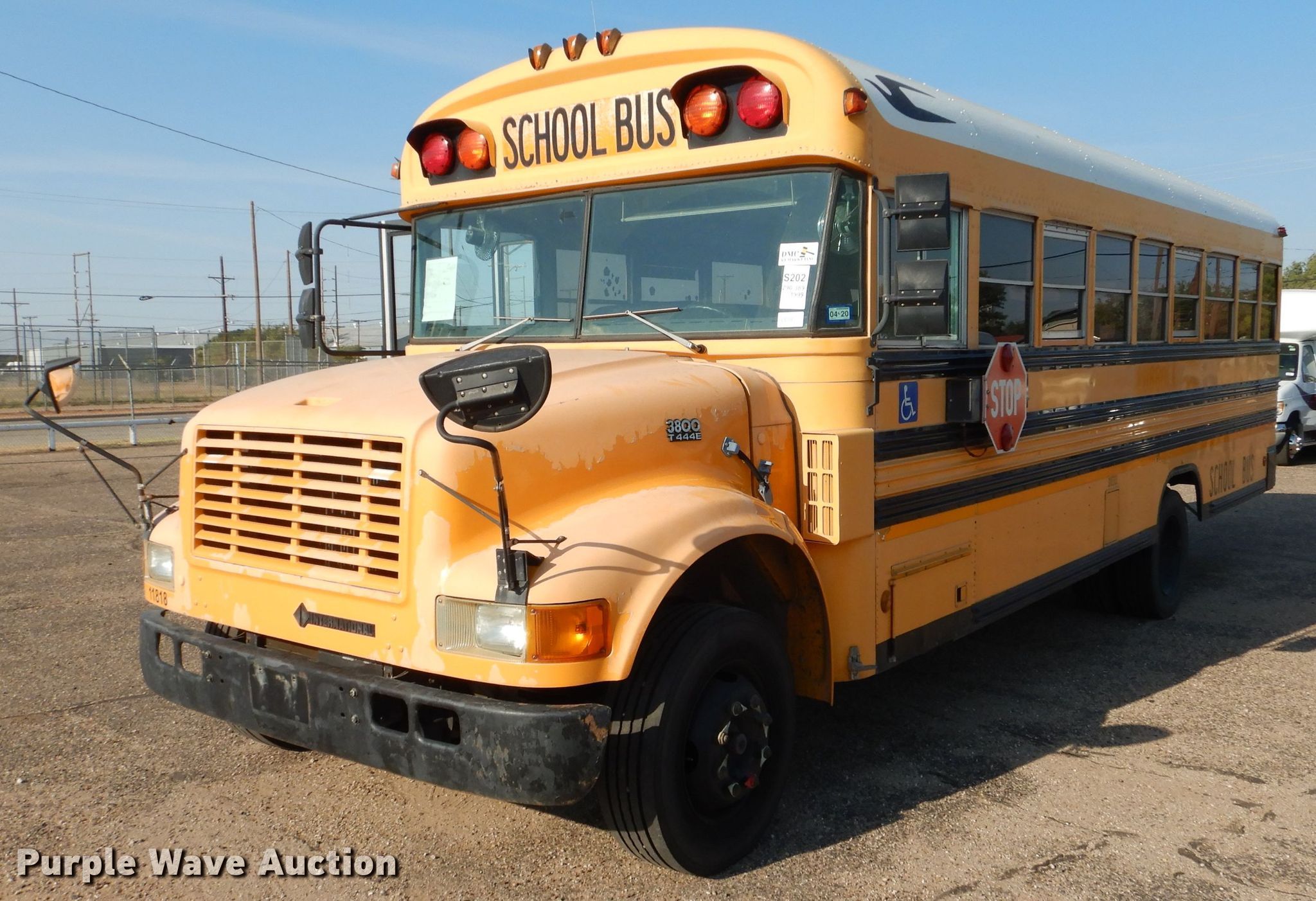 Purple Wave is selling a used Bus in Texas. This item is a 1999 International 3800 Blue Bird school bus with the following: 290,392 miles on odometer, Engine hours: 19,482