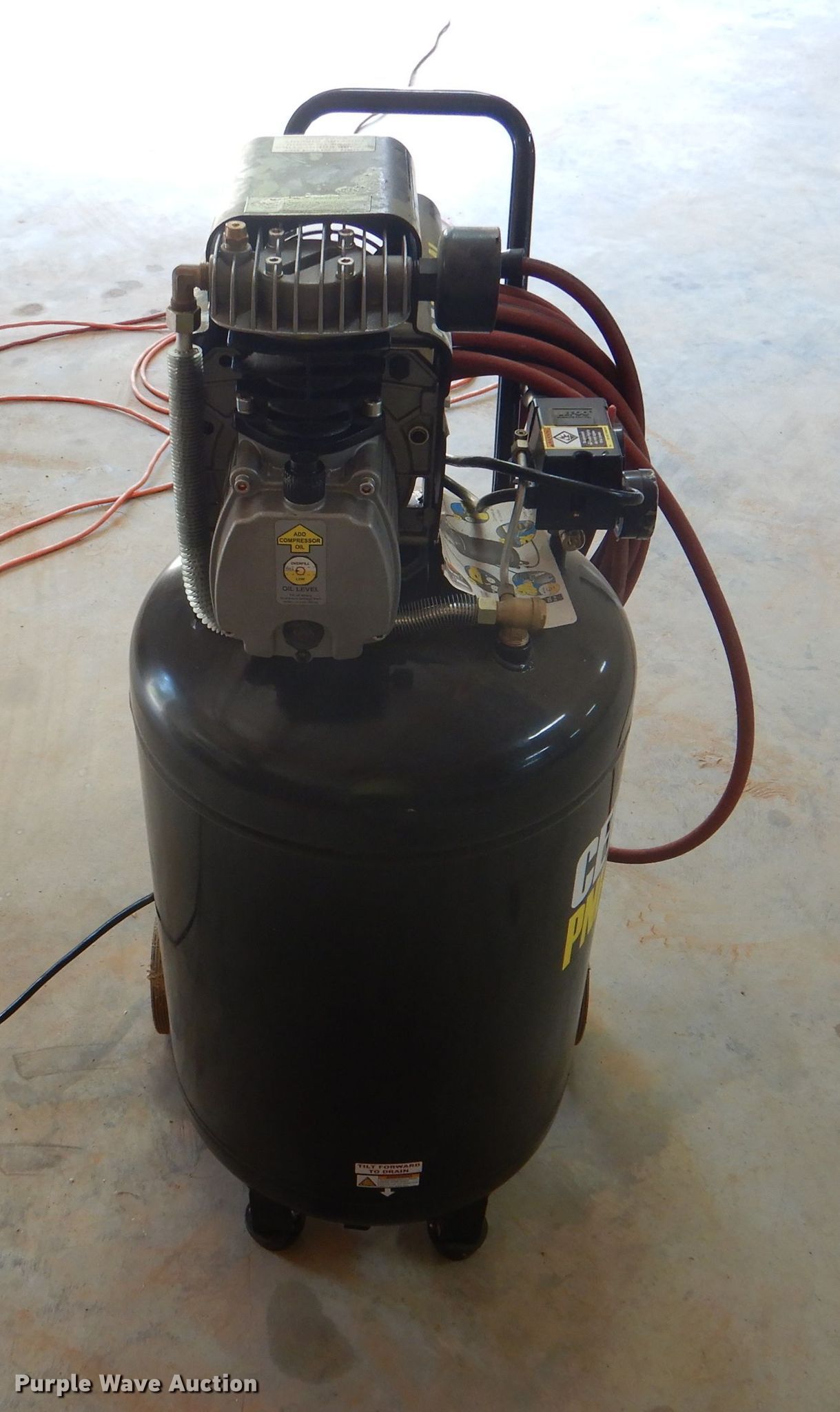 Purple Wave is selling a used Air Compressor in Texas. This item is a Central Pneumatic 61454 air compressor with the following: HP: 2.5