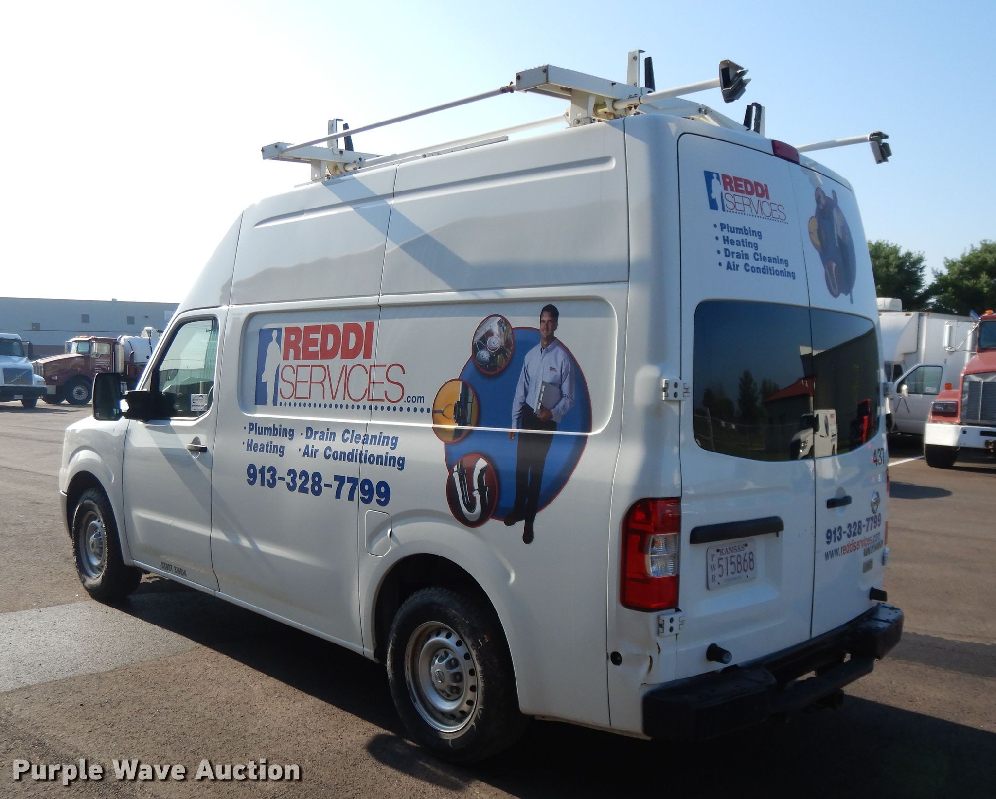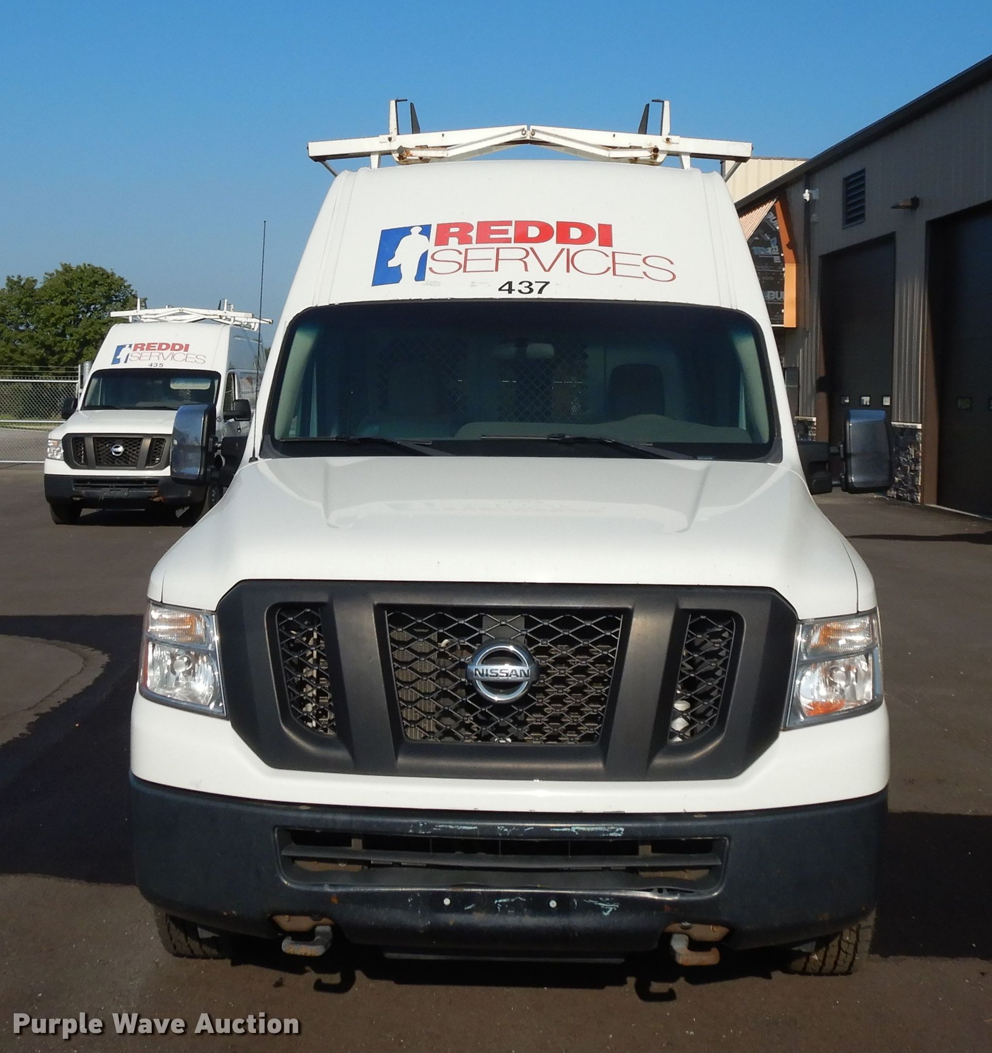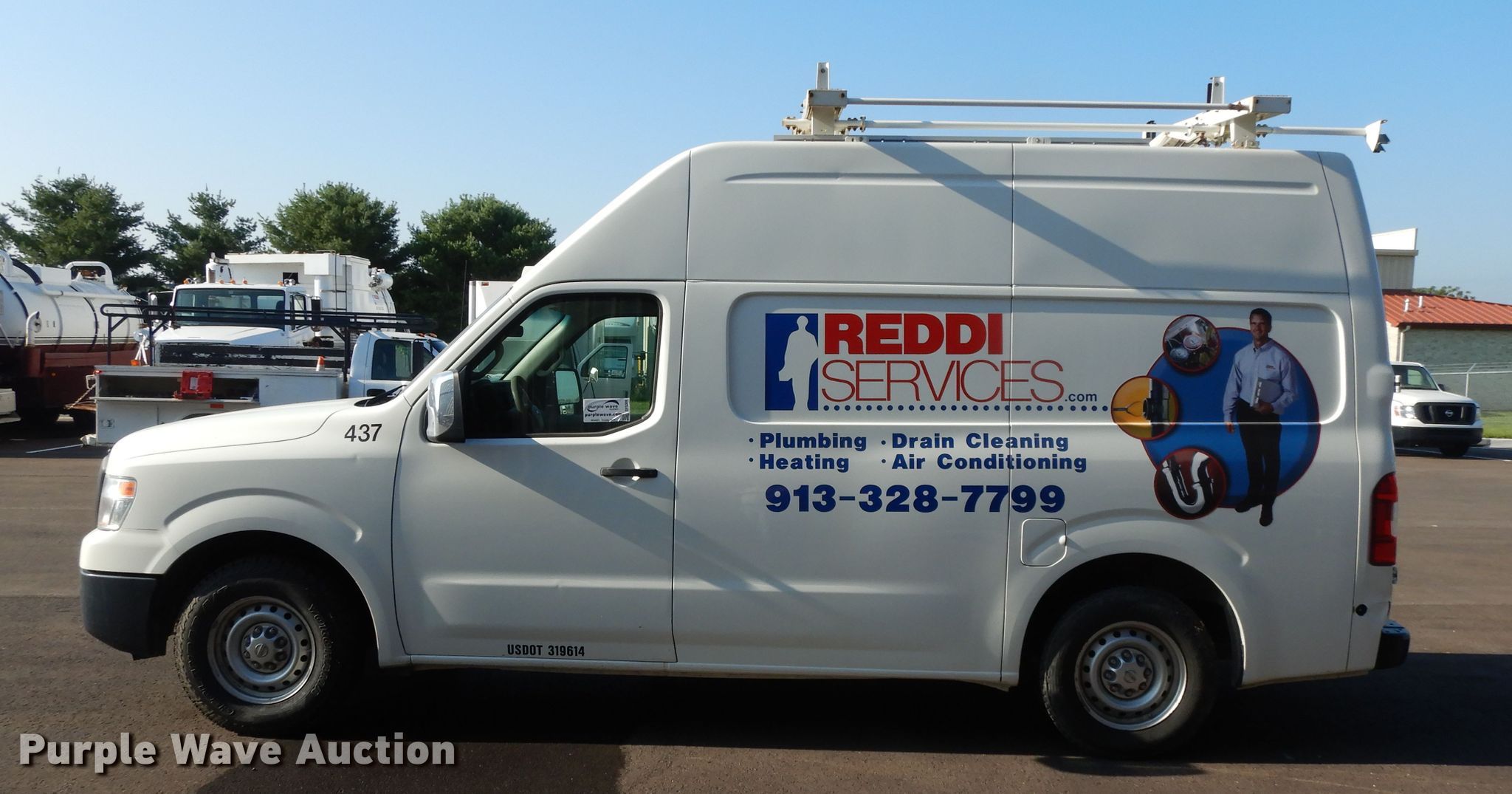 2014 Nissan NV2500 van. 166,069 miles on odometer, Unit #: 437. Engine Displacement: 5.6L V8 DOHC 32V, Cylinders: 8, Fuel type: Gas. Transmission Automatic. Interior AC, Heat. Tires Size: 245/70R17. Notes Dash warning indicator: TPMS. Kansas title. 1N6AF0LY4EN101683. Reddi Services. 4011 Bonner Industrial Dr. Shawnee Mission, KS 66226