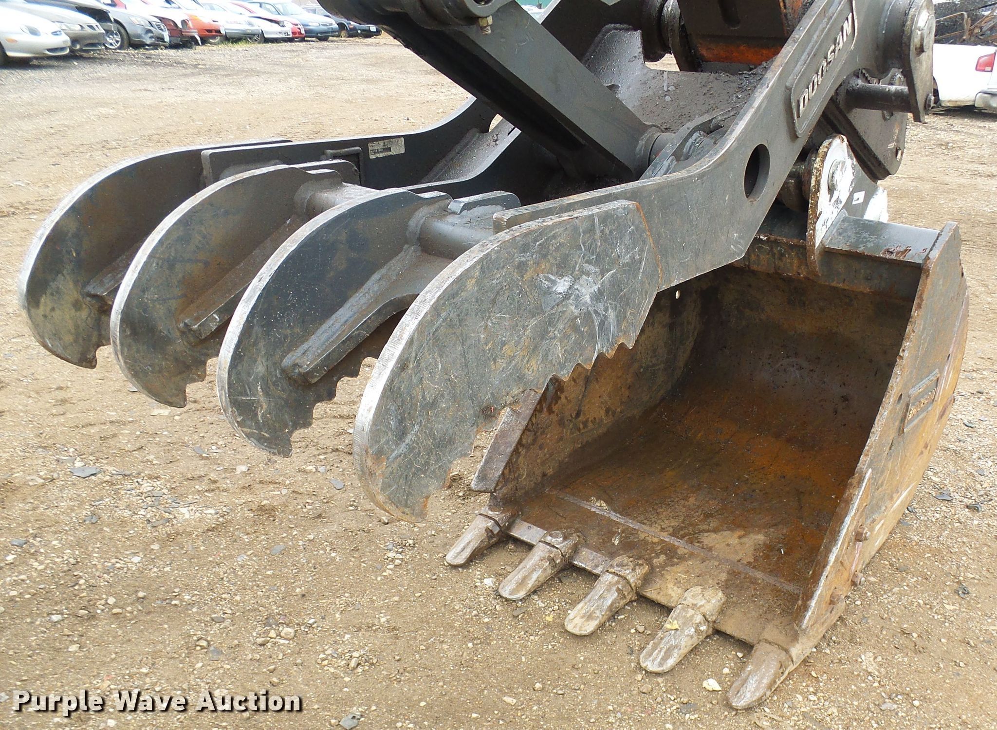 2018 Doosan DX140LCR-5 excavator. 1,228 hours on meter, Serial: DHKCEBBSEJ0002466. Engine Perkins 1204F, Displacement: 4.4L, Cylinders: 4, Fuel type: Diesel. Transmission Hydrostatic. Operators station Enclosed cab, AC, Heat. Operational Auxiliary hydraulics, Auto lube, Boom Standard, Quick coupler: Hydraulic Doosan, Thumb: Hydraulic Doosan DNDX140, Bucket Doosan, Width: 36", Cutting edge: Weld on Teeth: 5, Side cutters.. Tracks Width: 24", Steel, Grouser pads: Triple. Notes Sasforks Extreme auto processor bracket Serial: 5703. Reed's Automotive. 20 Twiggy Ln. Eldon, MO 65026