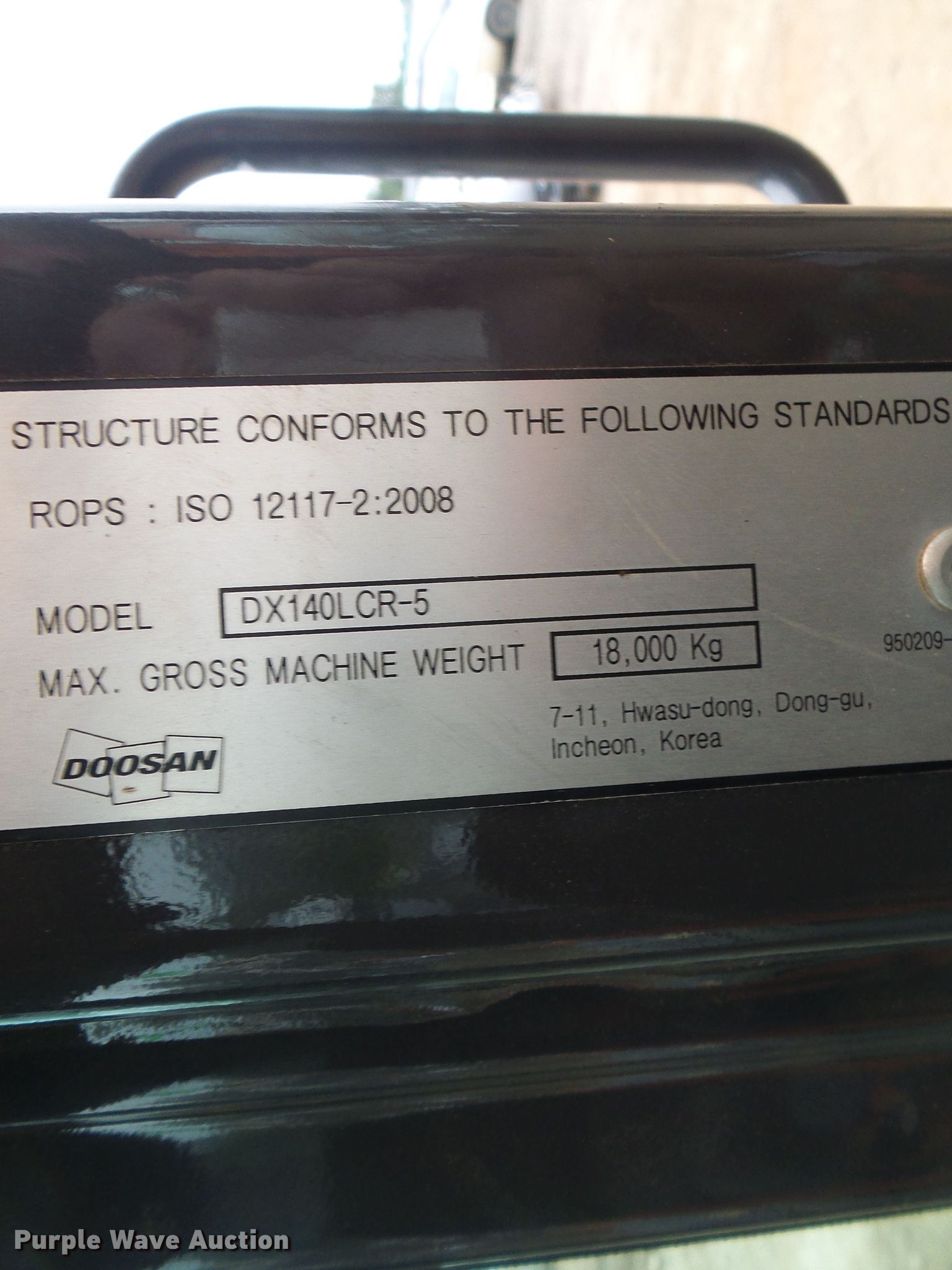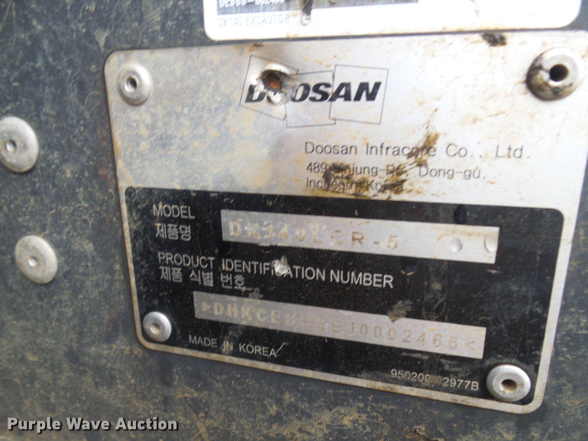 Purple Wave is selling a used Hydraulic Excavator in Missouri. This item is a 2018 Doosan DX140LCR-5 excavator with the following: 1,228 hours on meter, Serial: DHKCEBBSEJ0002466