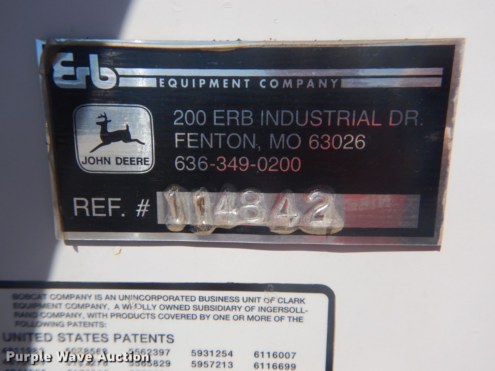 2004 Bobcat S250 skid steer loader. 5,994 hours on meter, Serial: 526011827, Unit #: 114842. Engine Kubota, Cylinders: 4, Fuel type: Diesel, HP: 75. Transmission Hydrostatic. Operators station OROPS, Bucket control: Foot, Electronic Monitoring System panel. Operational Auxiliary hydraulics, Quick coupler: Manual, Bucket Width: 78", Teeth: Bolt on. Tires Solid. Erb Equipment Co.. 200 Erb Industrial Dr. Fenton, MO 63026