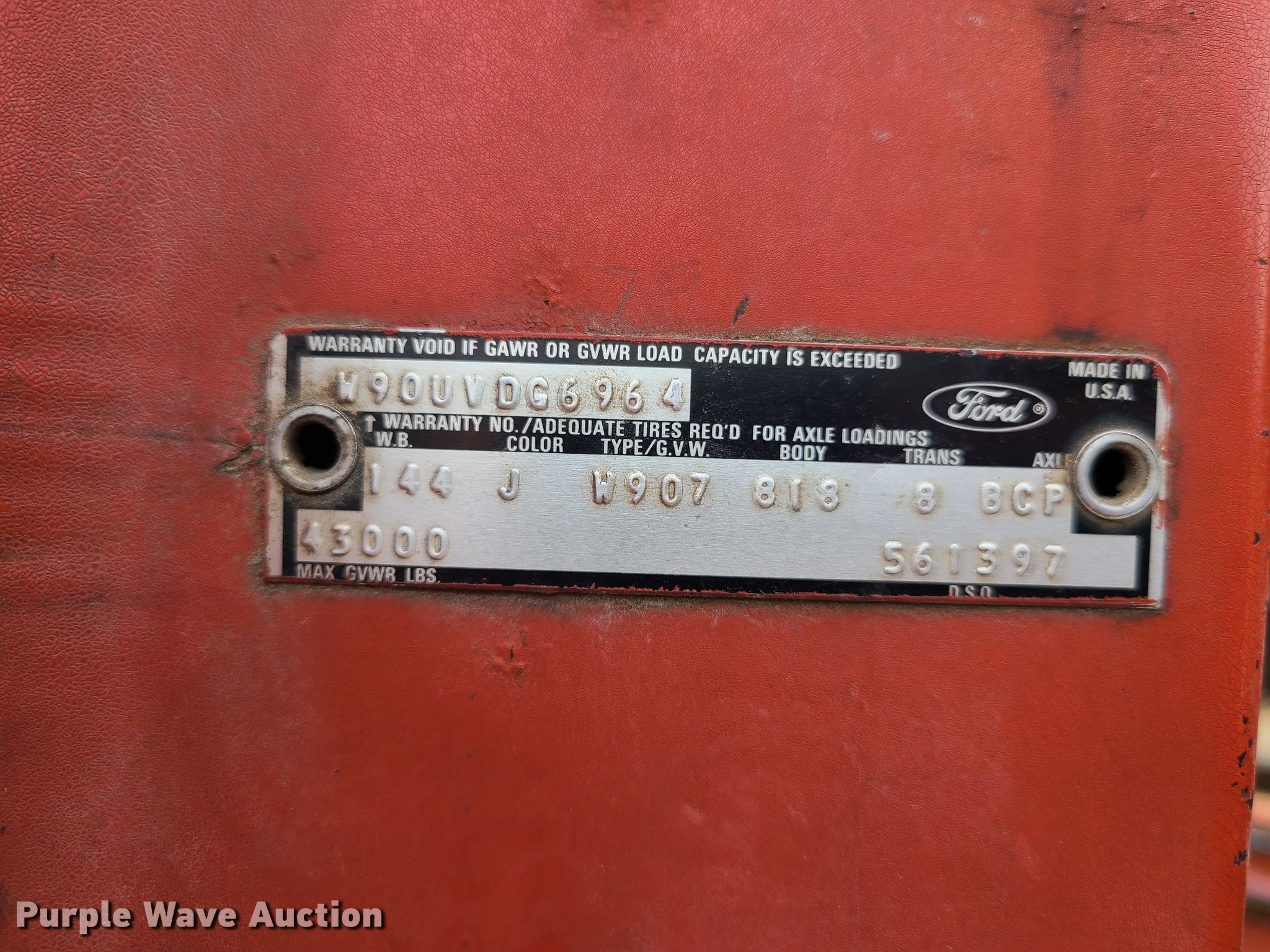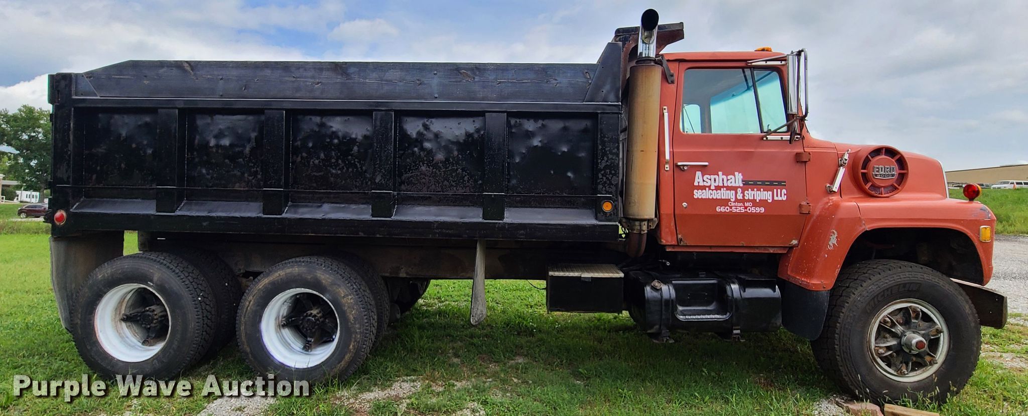 1979 Ford 9000 dump truck. 1,046 miles on odometer. Engine Cummins, Cylinders: 6, Fuel type: Diesel. Transmission Manual. Chassis Axles: Tandem, Suspension: Spring over walking beam, Brakes: Air, PTO. Interior Heat. Operational Dump bed 14' L x 96" W, Side height: 34", Side board height: 11", Bed type: Steel, Ram: Single , End gate: Air operated. Tires Front: 315/80R22.5, Rear: 11R22.5. Missouri title. Title distribution may be delayed up to 14 days from verification of funds. W9OUVDG6964. Ashworth Asphalt Seal Coating and Striping. 1653 N 2nd St. Clinton, MO 64735