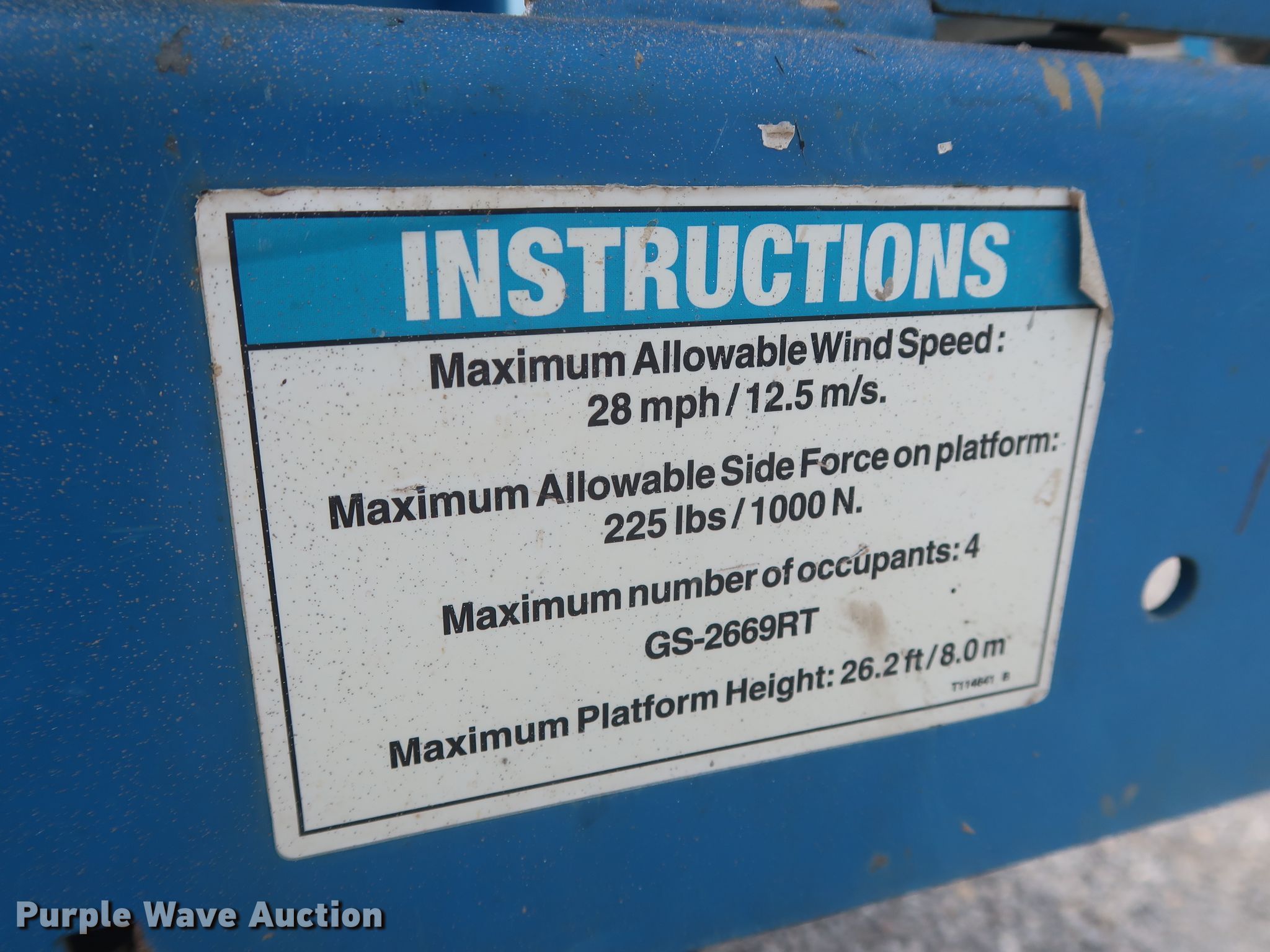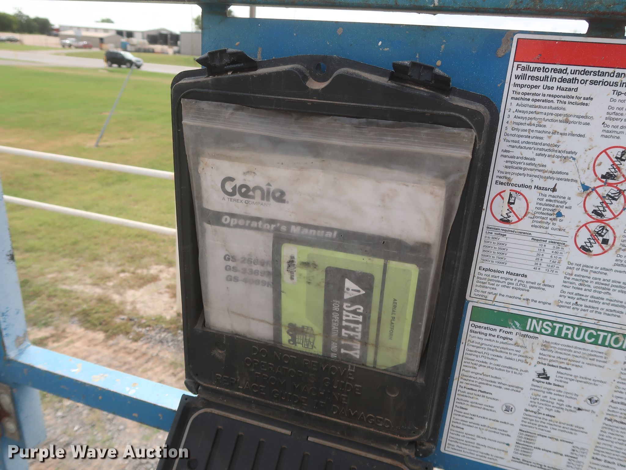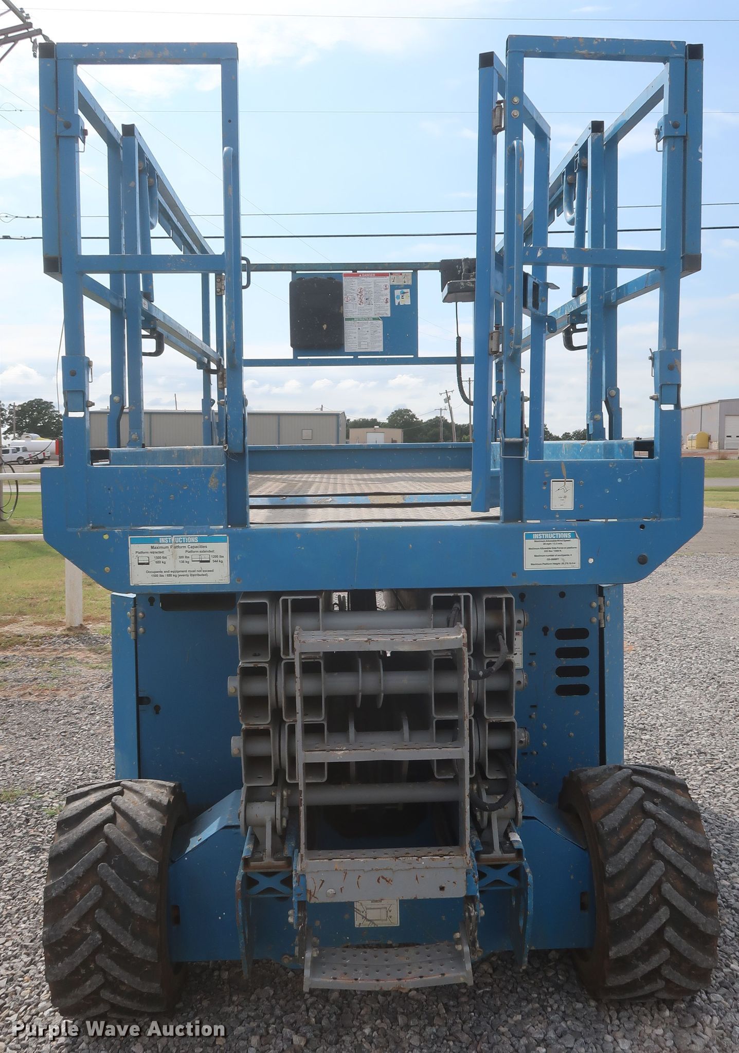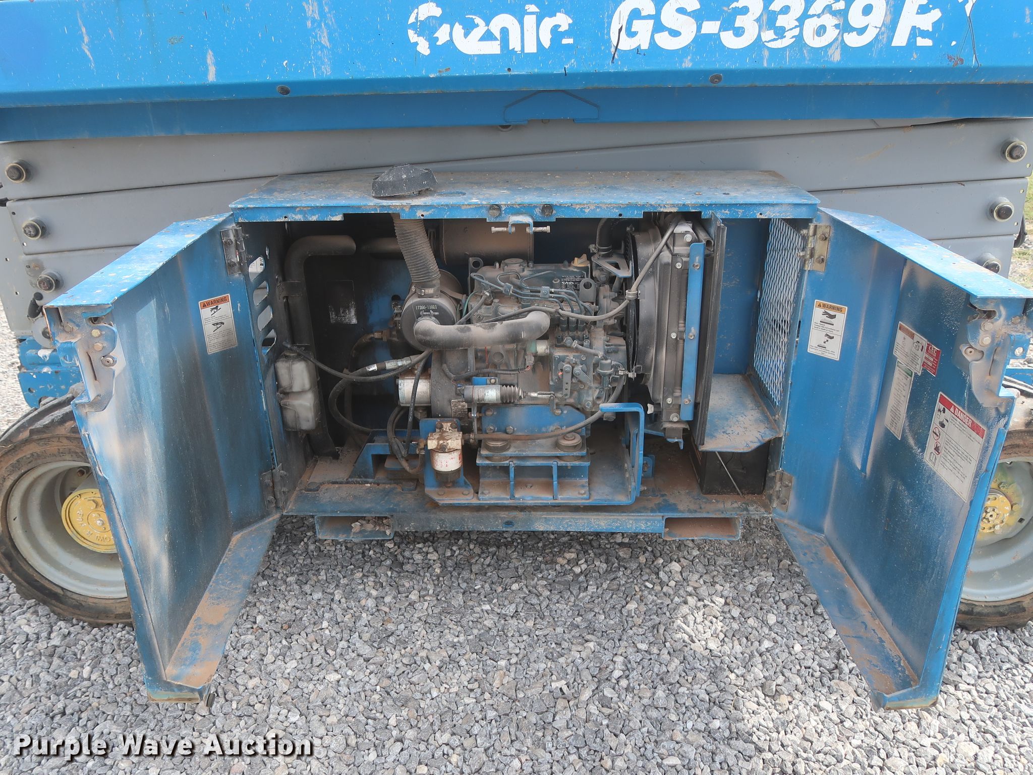 Purple Wave is selling a used Scissor or Vertical Lift in Oklahoma. This item is a 2012 Genie GS-3369RT scissor lift with the following: 1,728 hours on meter, Serial: GS6912-554